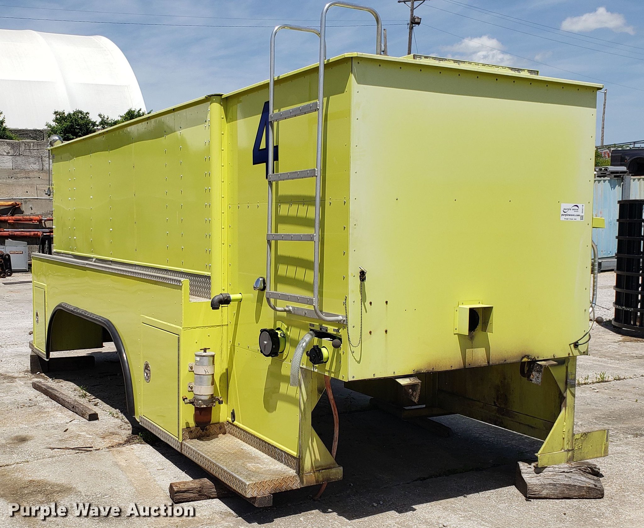 Purple Wave is selling a used Truck Part and Attach. in Missouri. This item is a Fire truck bed with the following: 20'L x 8'W, 2,000 gallon water tank, FRC auto foam sc system, Storage compartments