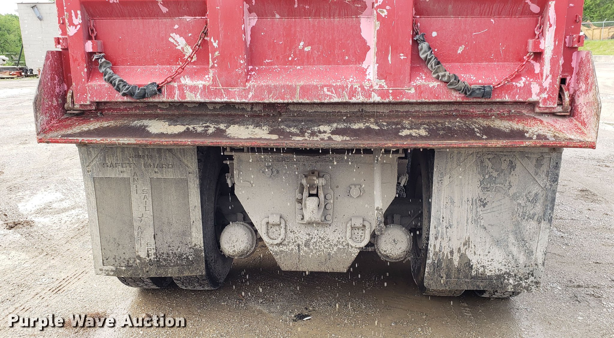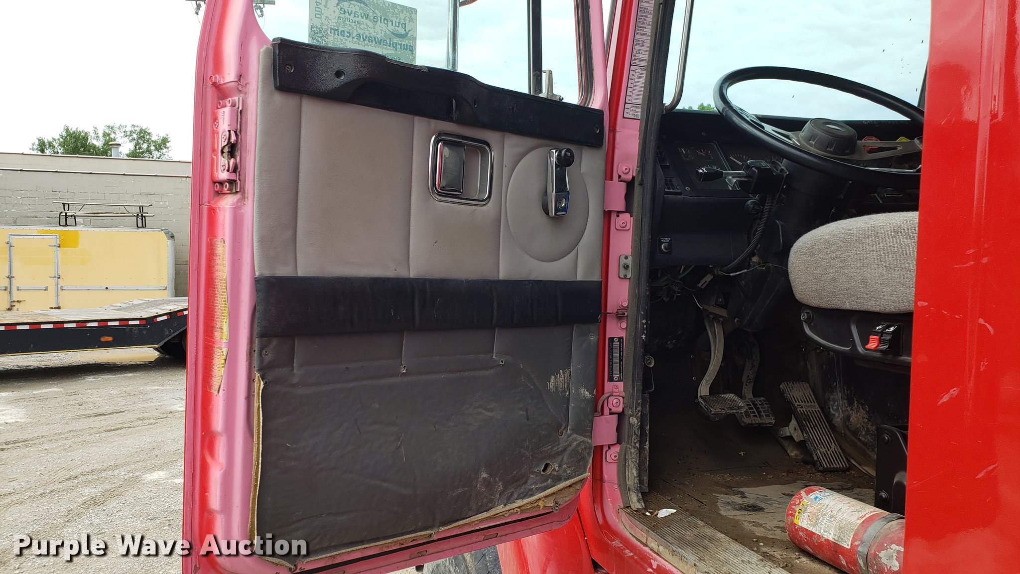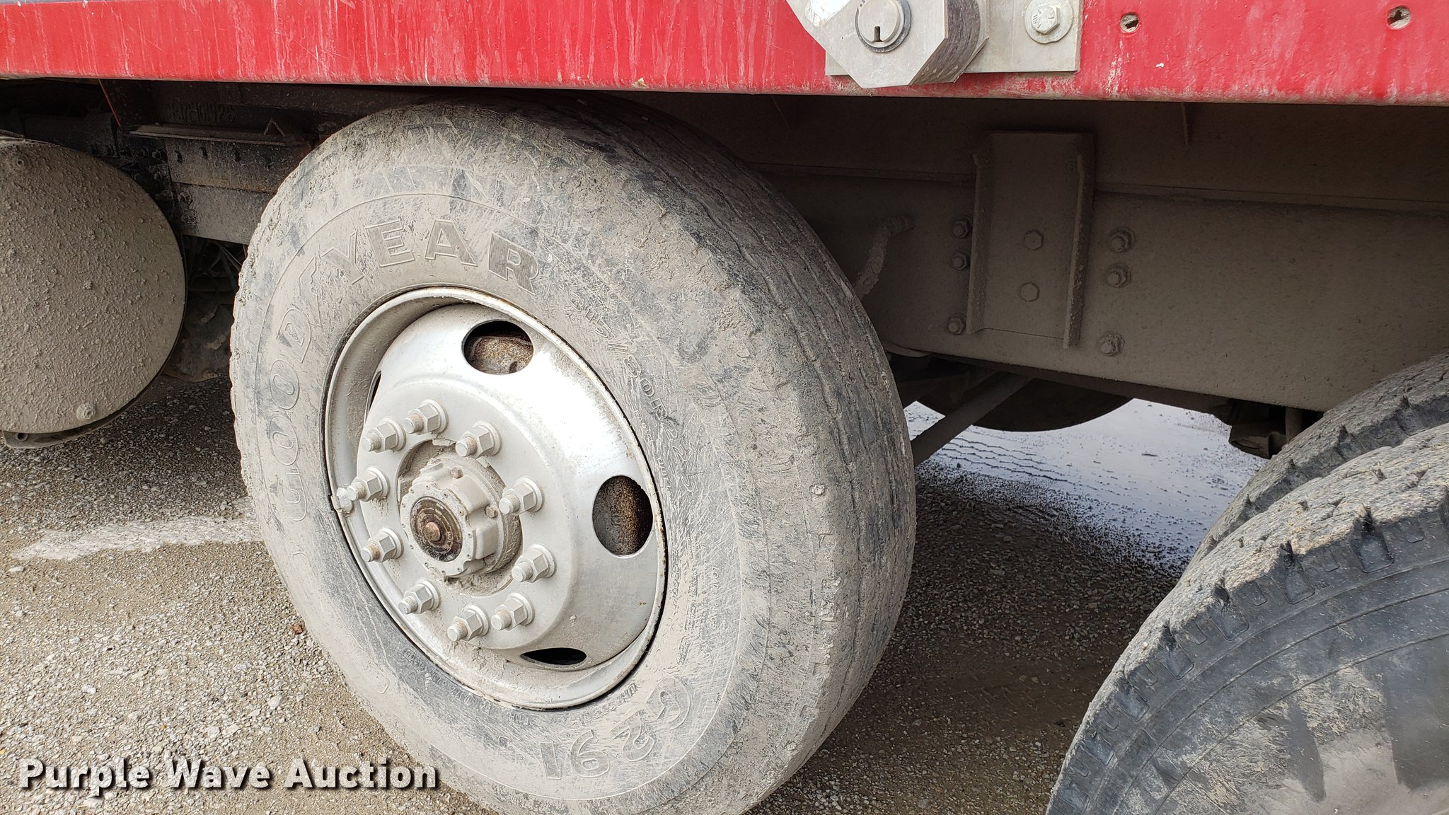 2000 Volvo WG dump truck. 9,556 miles on odometer, 257,301 miles verified by ECM, Cummins ISM 10.8L L6 diesel engine, Eaton Fuller eight speed manual transmission, Triple axle, AC and heat, Cruise, Heated mirrors, PTO, 17'L x 8'W steel dump bed 42" side height, 9" side board height, Single ram hoist, Air operated end gate, Roll tarp, Spring over walking beam suspension, Air brakes, 385/65R22.5 front tires, 315/80R22.5 lift axle tires, 11R22.5 rear tires. Missouri title. 4V5JC2UF7YN866668. Leath & Sons. 9301 E 63rd St. Raytown, MO 64133