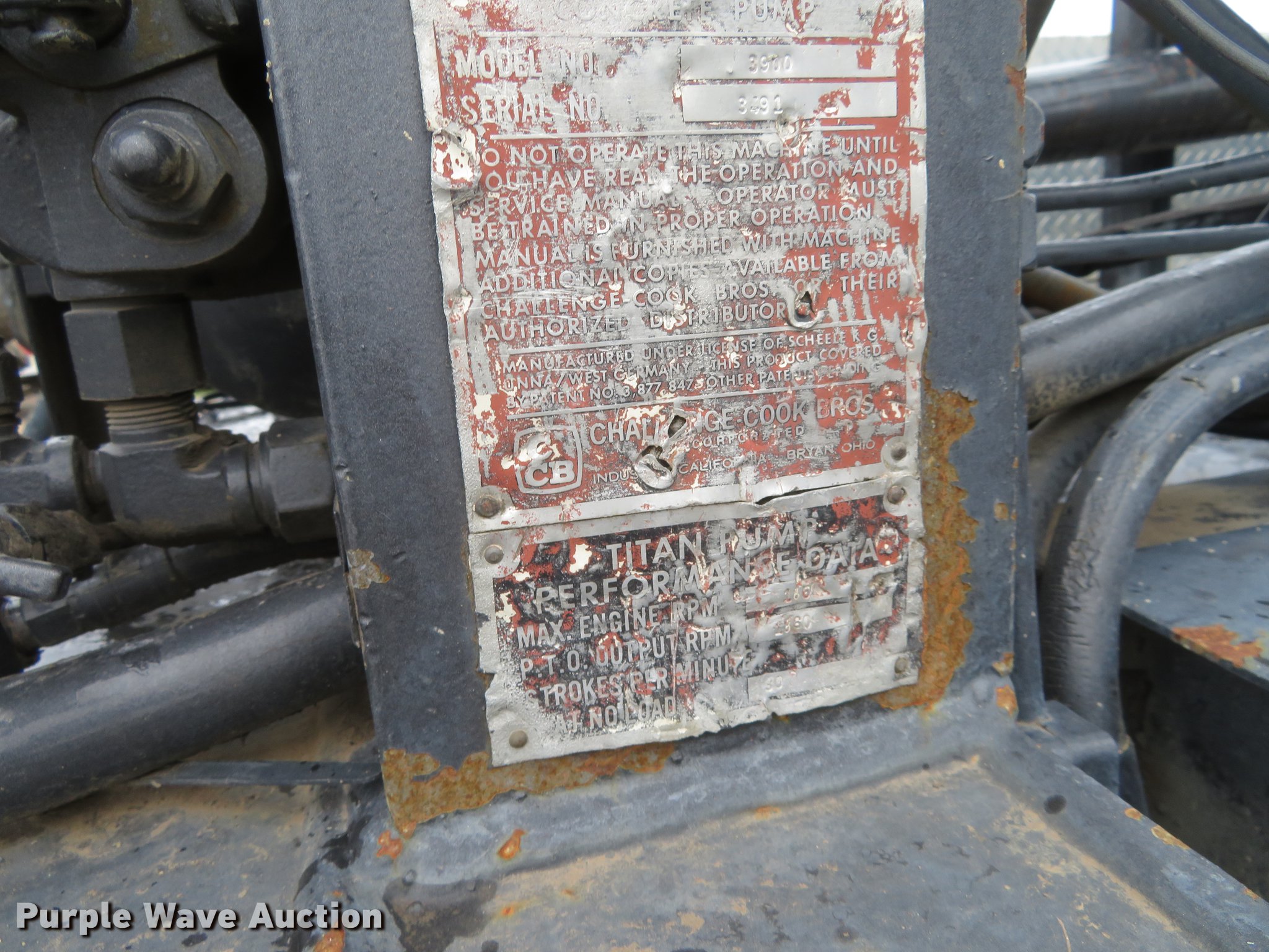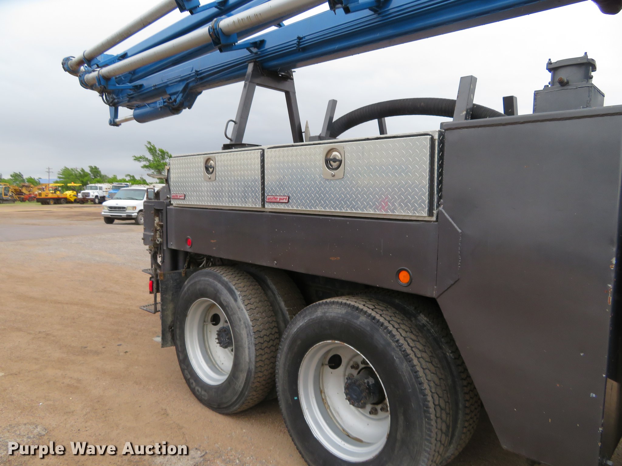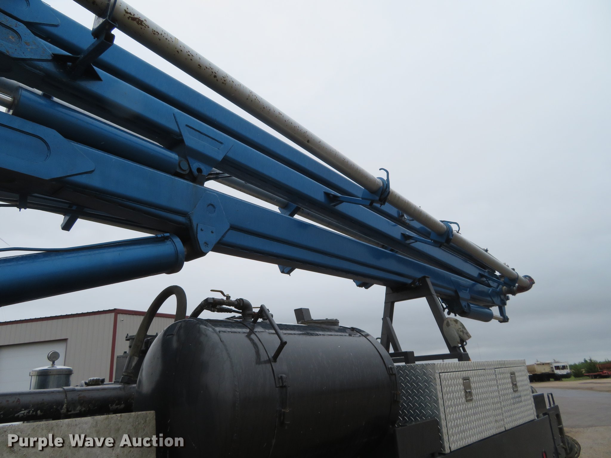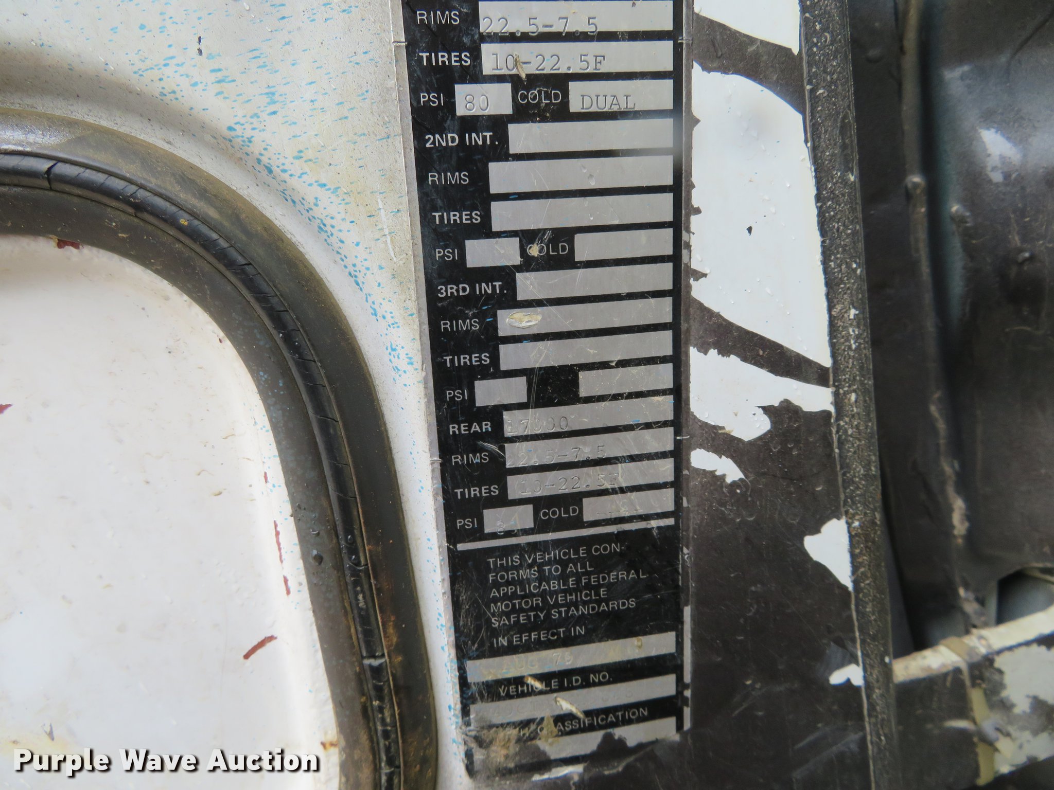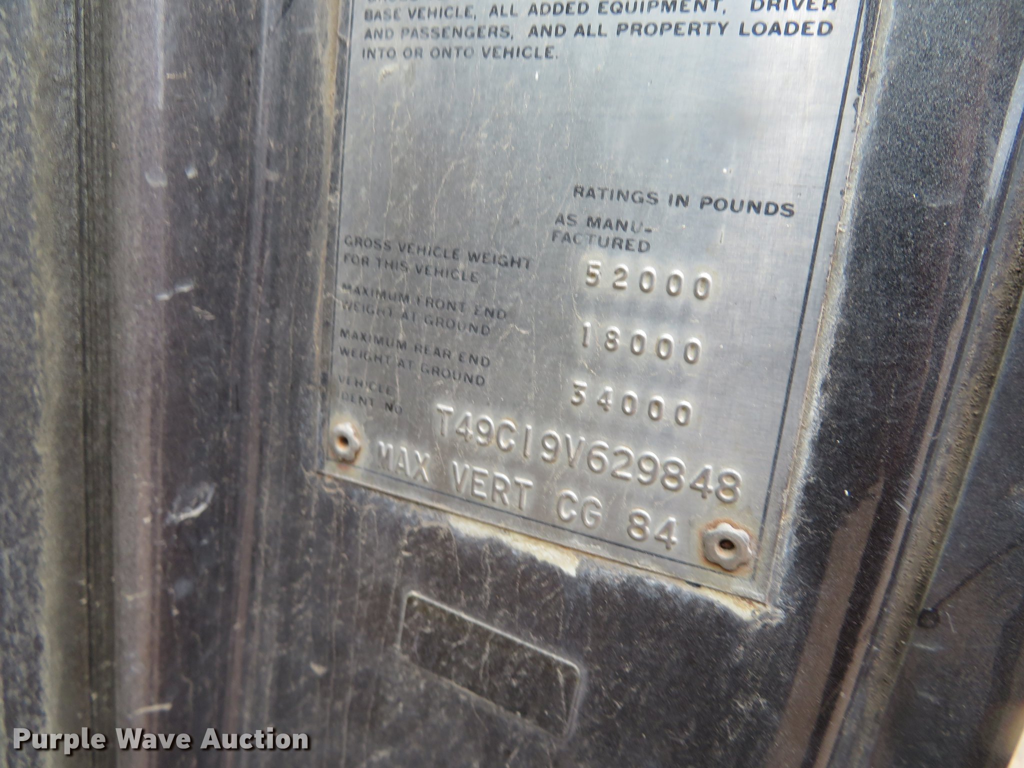 Purple Wave is selling a used Ready Mix or Pump Truck in Kansas. This item is a 1978 GMC Brigadier pump truck with the following: 438,437 miles on odometer, 4,532 hours on meter, Detroit Diesel 671 six cylinder diesel engine, 10 speed deep reduction manual transmission, Tandem axle, PTO, Titan Challenge 3900 concrete pump, 120 gallon water tank, Rear air pump operated water hose, 28 meter boom, 360 degree swing, Hydraulic operation, Three stage folding boom, Wired control, Approximately 50' cord, Wireless control, 6" end hose, Serial 3391, (4) hydraulic outriggers, Pads included, Putzmeister rear vibratory hopper, Dual fuel tanks, Walking beam suspension, Air brakes, 425/65R22.5 front tires, 11R22.5 rear tires, GVWR 52,000 lbs, FAWR 18,000 lbs, IAWR 17,000 lbs, RAWR 17,000 lbs, Windshield cracked