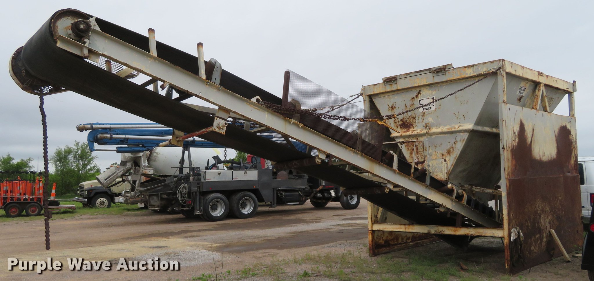 Purple Wave is selling a used Batch Plant or Surge Bin in Kansas. This item is a Aggregate surge box and conveyor with the following: 9.5' x 12' x 10' box, 30'L conveyor, 30"W belt
