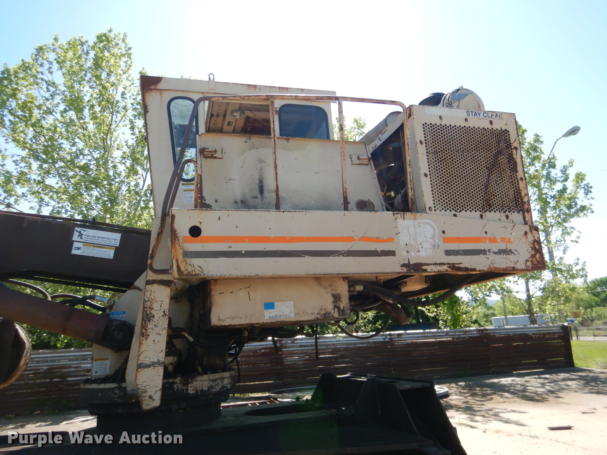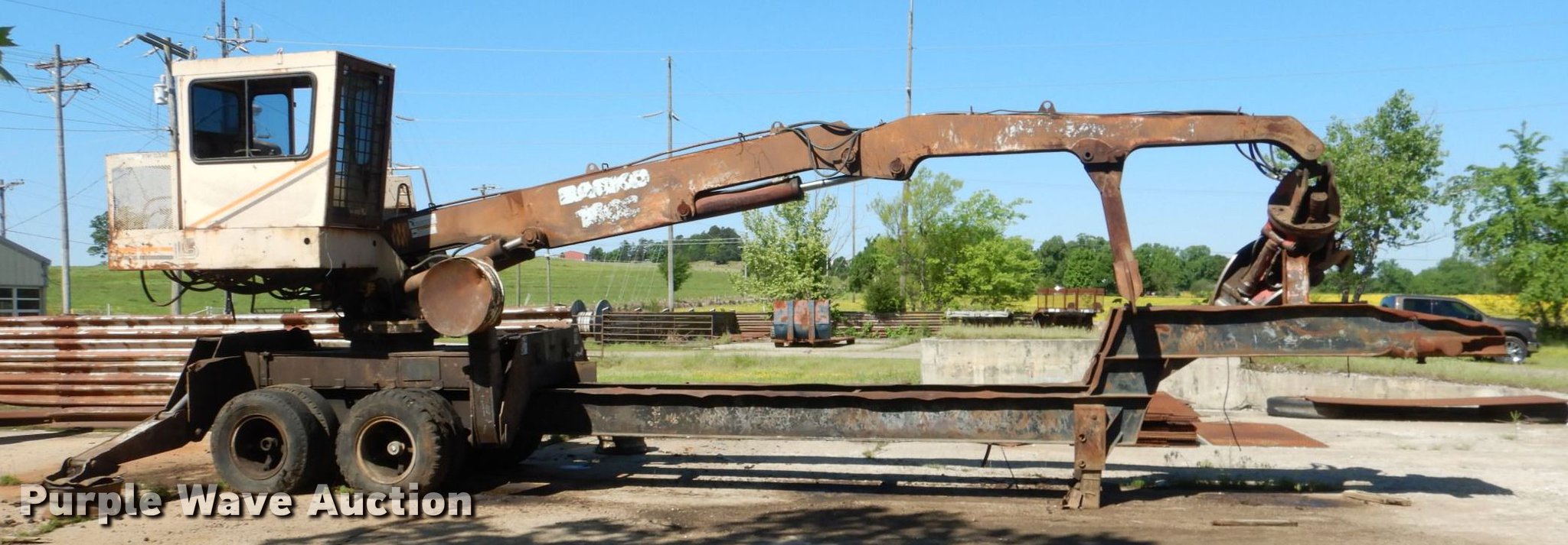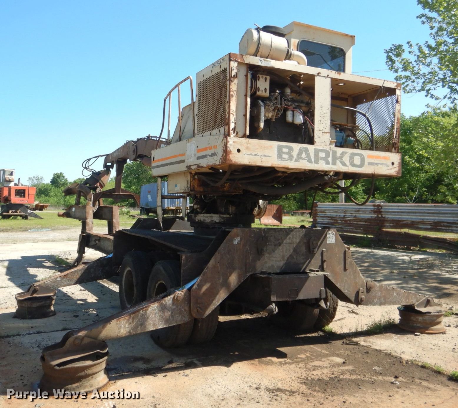 Purple Wave is selling a used Log Loader in Oklahoma. This item is a 1996 Barko 160TRK log loader with the following: 3,936 hours on meter, Cummins 5.9L six cylinder diesel engine, Enclosed cab, Joystick controls, Prentice grapple, Continuous swing, (4) outriggers, 37'L trailer, Serial 21465
