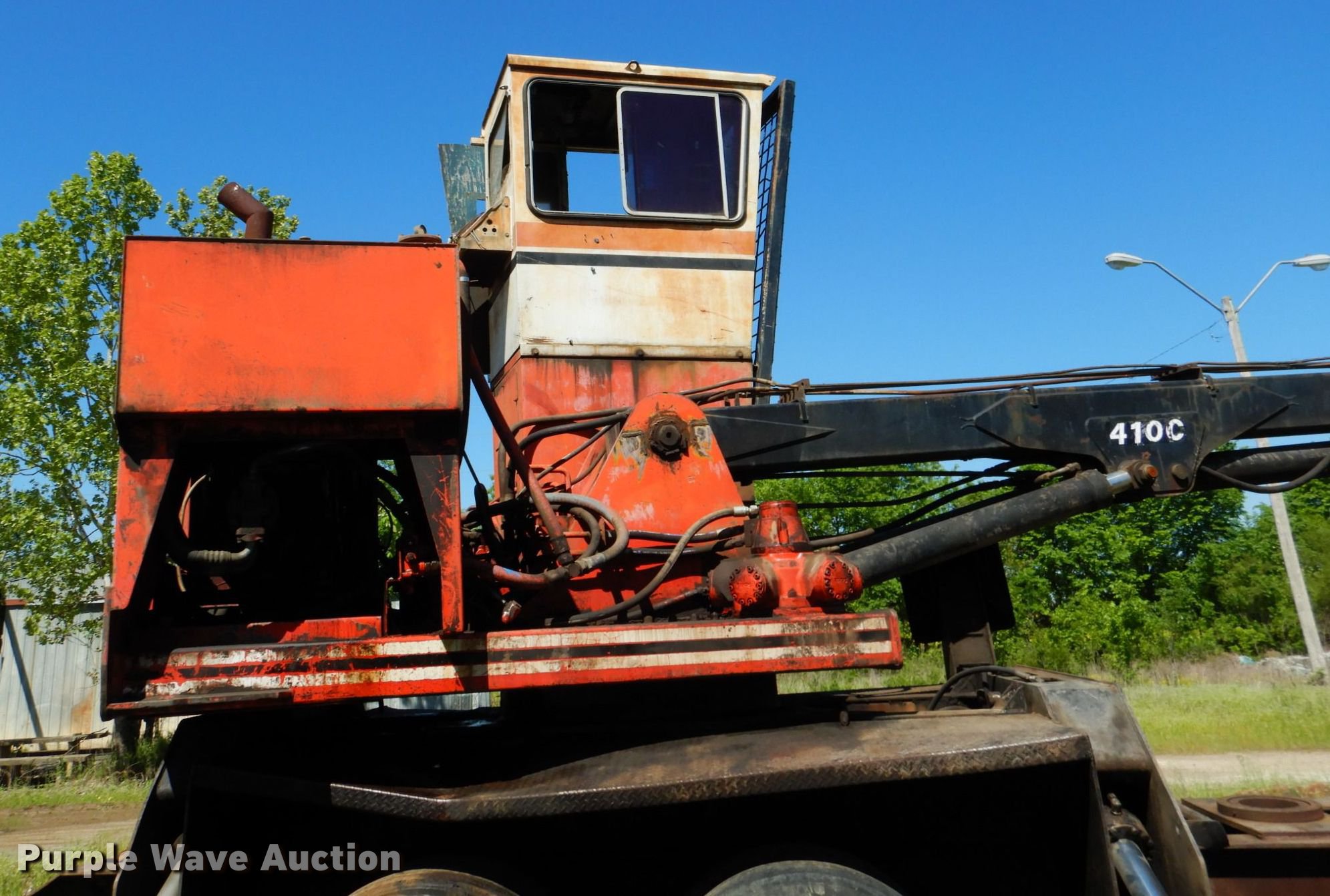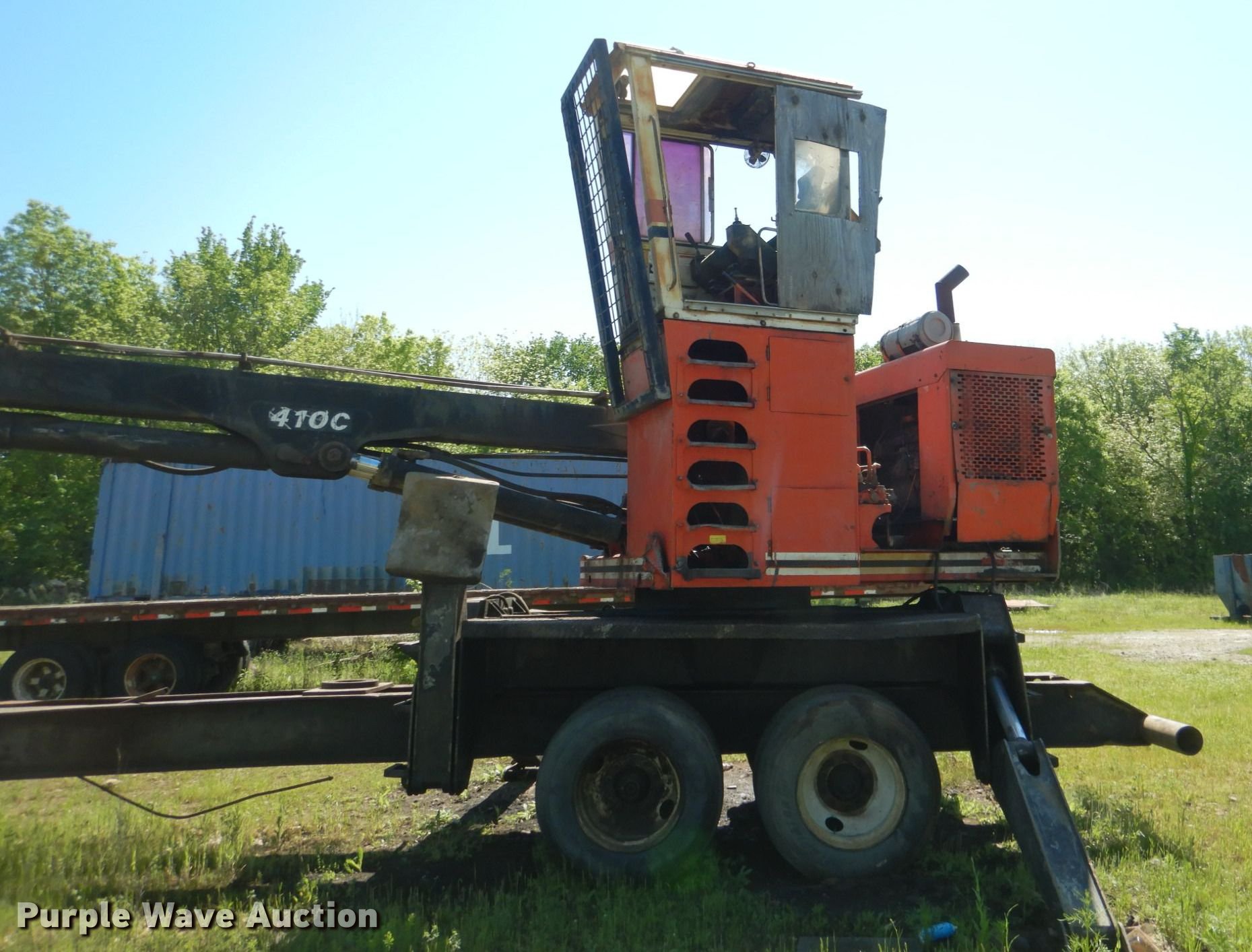 Purple Wave is selling a used Log Loader in Oklahoma. This item is a Prentice 410C log loader with the following: Six cylinder diesel engine, Enclosed cab, Joystick controls, Windshield screen, Continuous swing, (4) outriggers, 11R24.5 tires