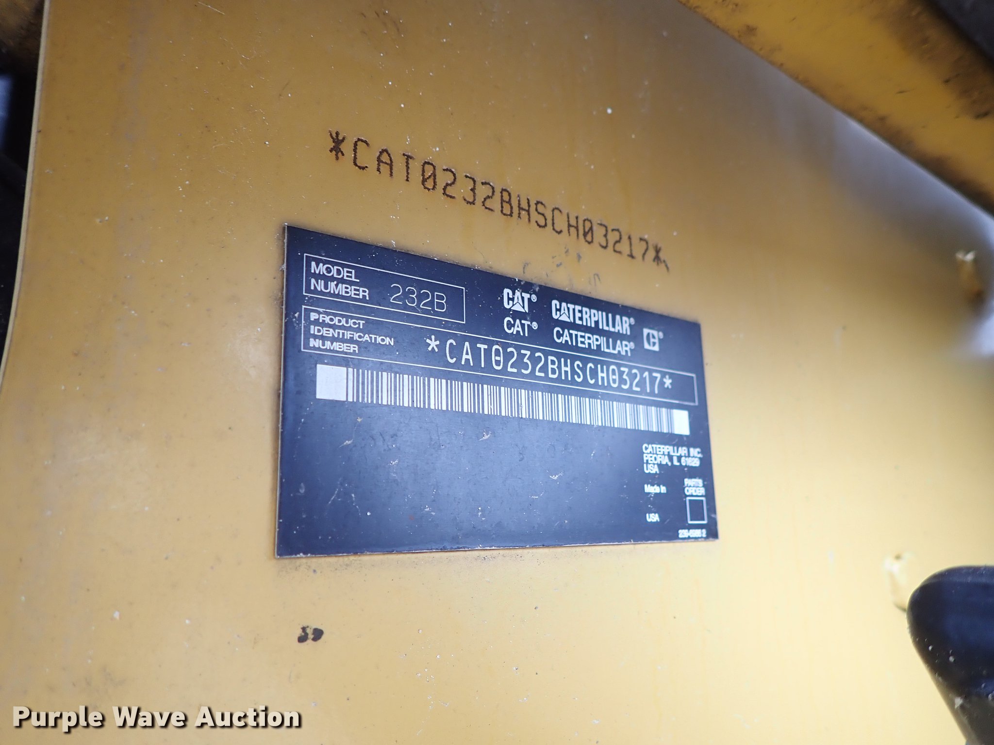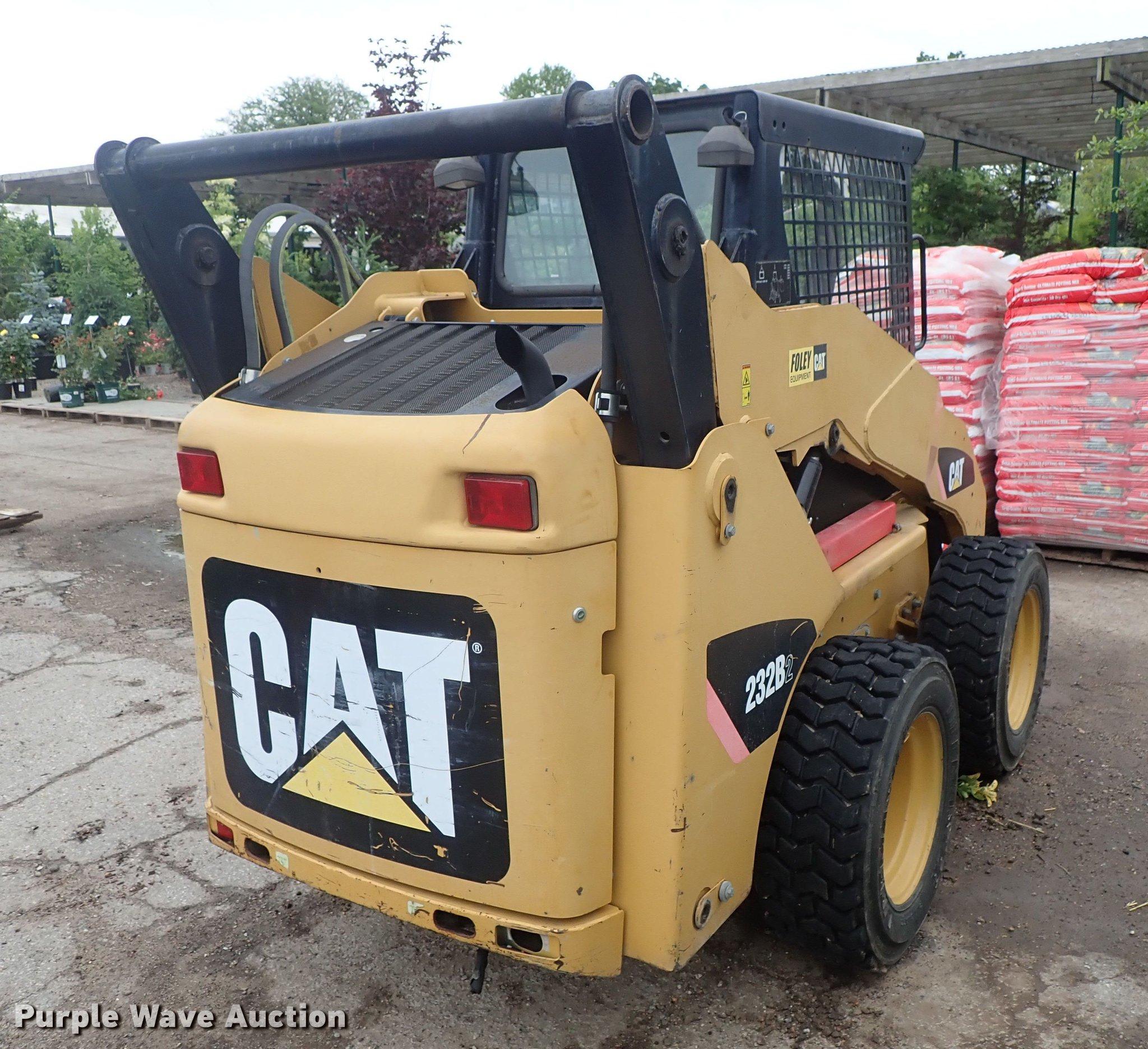 Purple Wave is selling a used Skid Steer Loader in Kansas. This item is a 2008 Caterpillar 232B2 skid steer with the following: 1,940 hours on meter, Caterpillar four cylinder diesel engine, Hydrostatic transmission, Open station/canopy, Hand bucket controls, Front and rear work lights, Manual quick coupler, Auxiliary hydraulics, 10-16.5 tires, Metal shavings in oil, Serial CAT0232BHSCH03217
