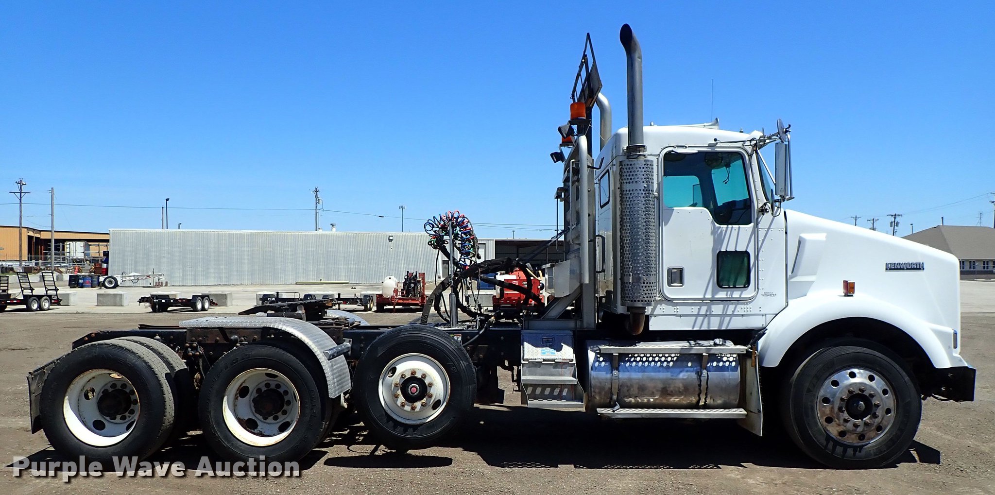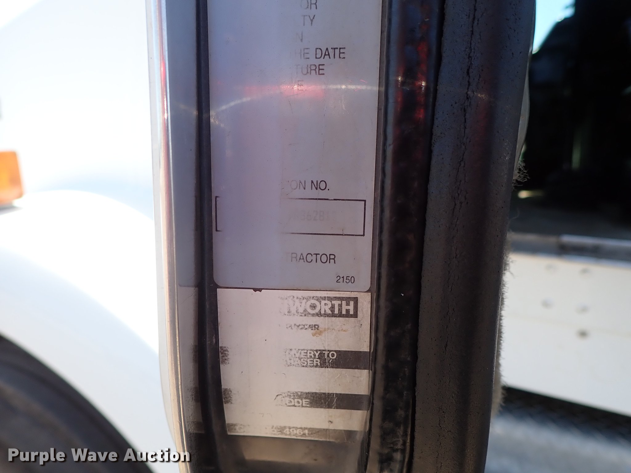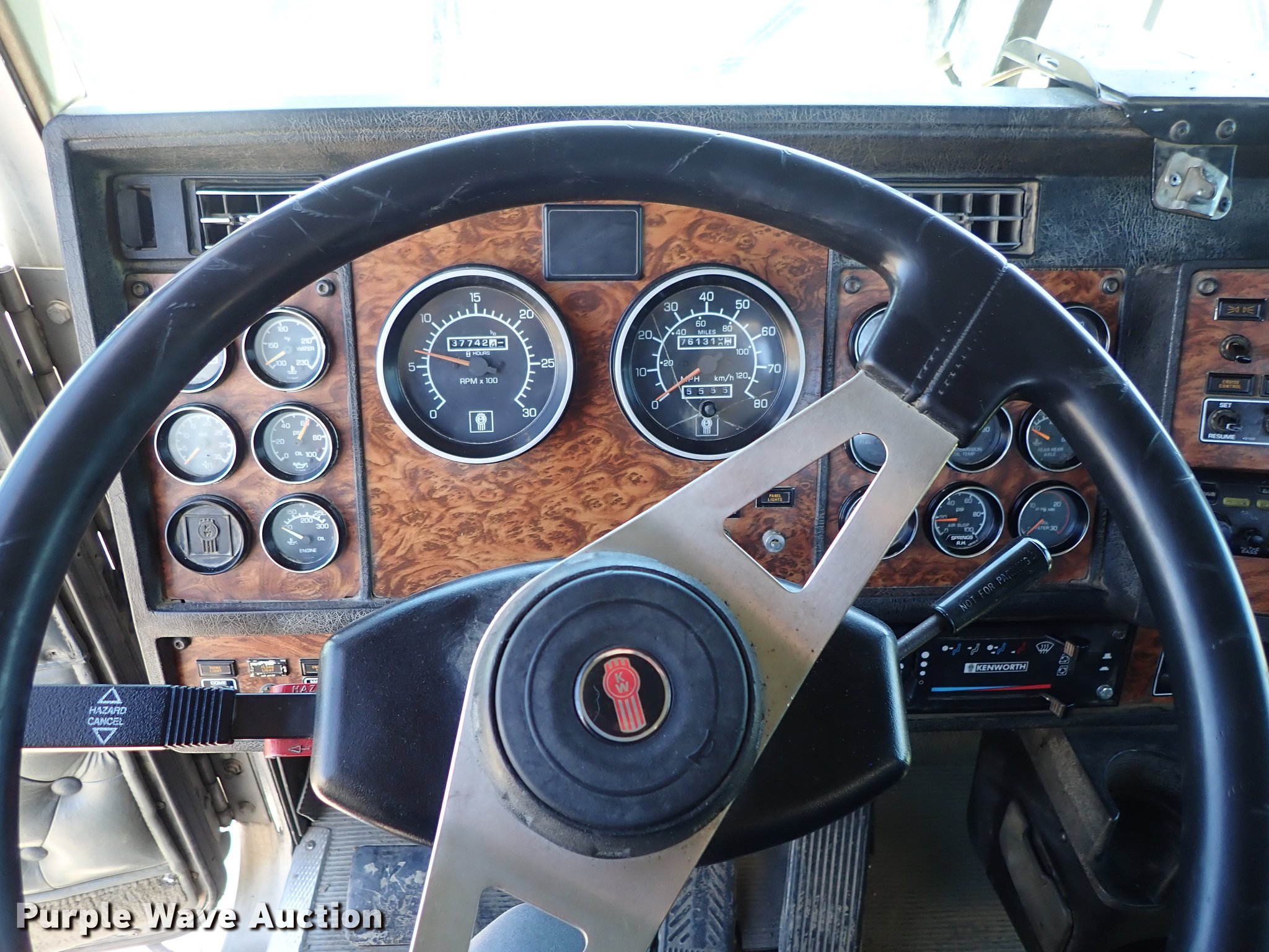 Purple Wave is selling a used Truck Tractor in Kansas. This item is a 2000 Kenworth T800 semi truck with the following: 761,319 miles on odometer, 37,742 hours on meter, Caterpillar C15 six cylinder diesel engine, Eaton Fuller eight speed manual transmission, Tandem axle, Full differential lock, AC and heat, Cruise, Heated mirrors, PTO, Wet kit, Air operated sliding fifth wheel plate, Single fuel tank, Air suspension, Air brakes, 11R24.5 tires