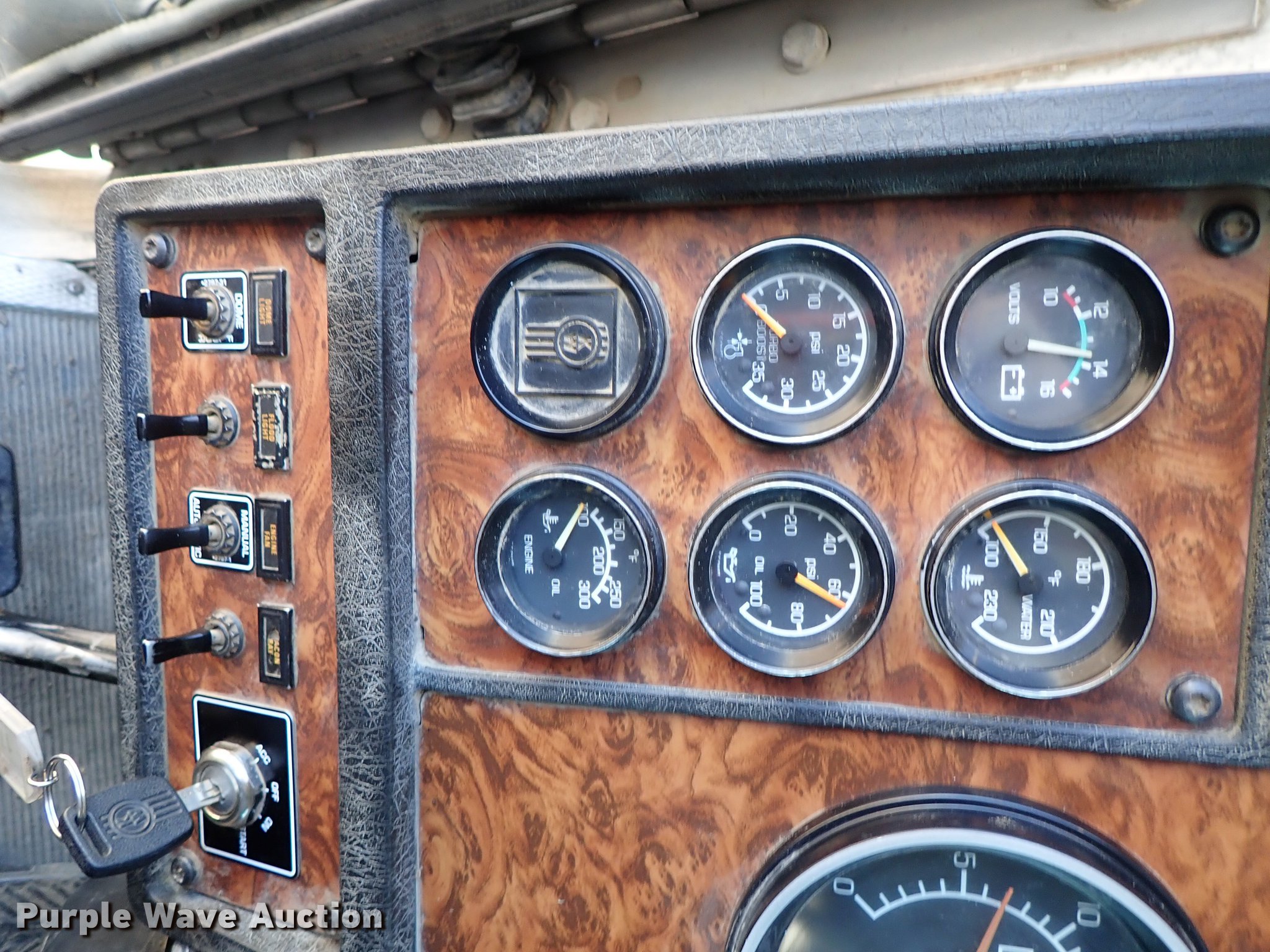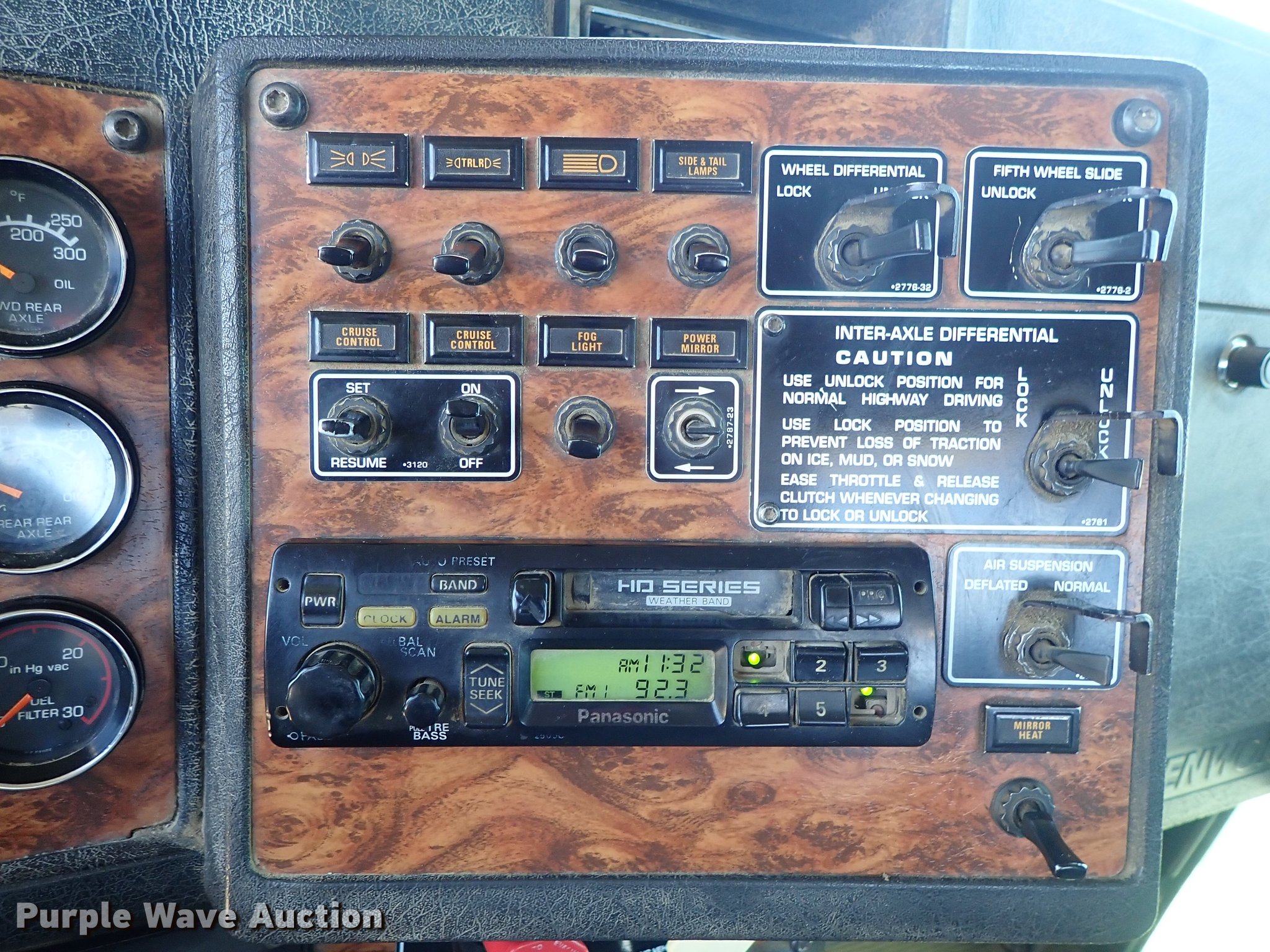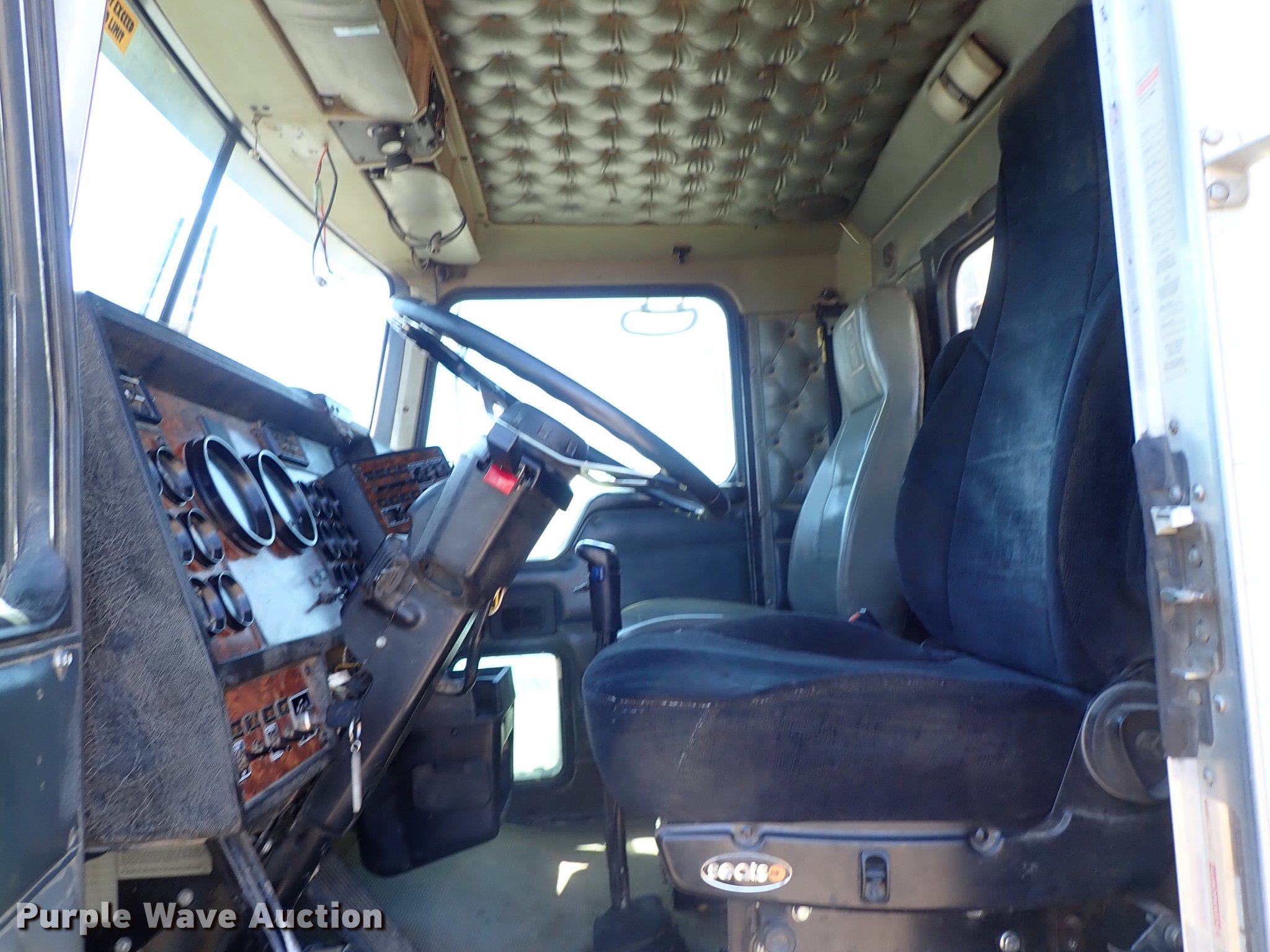 Purple Wave is selling a used Truck Tractor in Kansas. This item is a 2000 Kenworth T800 semi truck with the following: 761,319 miles on odometer, 37,742 hours on meter, Caterpillar C15 six cylinder diesel engine, Eaton Fuller eight speed manual transmission, Tandem axle, Full differential lock, AC and heat, Cruise, Heated mirrors, PTO, Wet kit, Air operated sliding fifth wheel plate, Single fuel tank, Air suspension, Air brakes, 11R24.5 tires