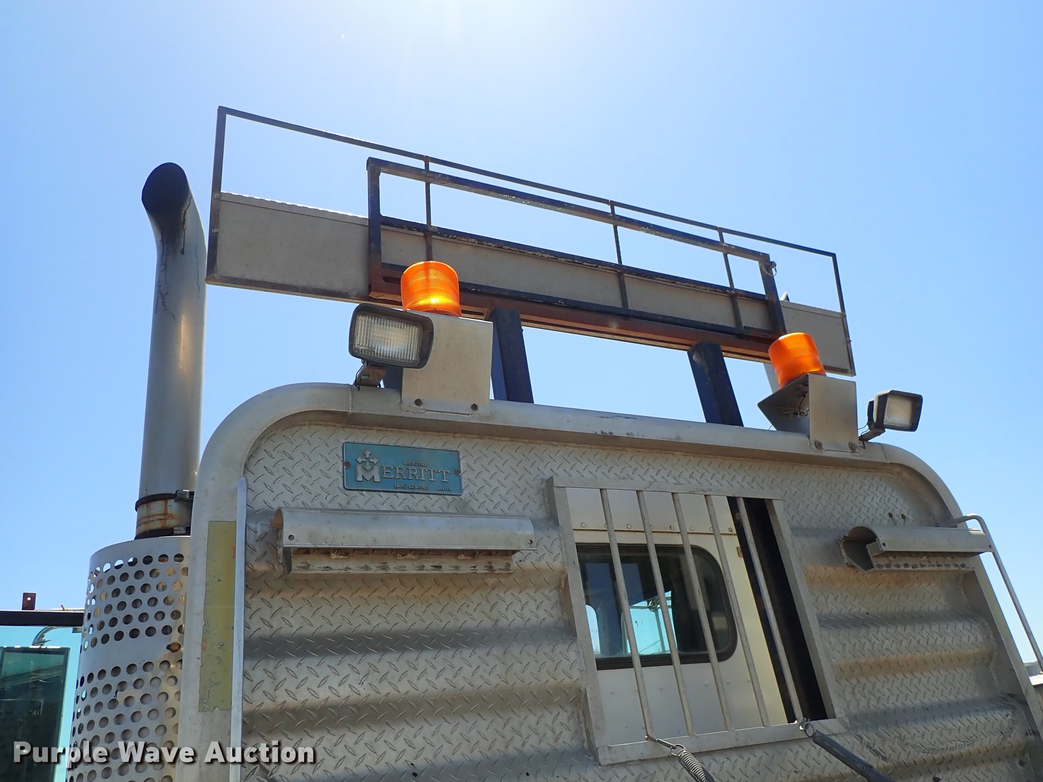2000 Kenworth T800 semi truck. 761,319 miles on odometer, 37,742 hours on meter, Caterpillar C15 six cylinder diesel engine, Eaton Fuller eight speed manual transmission, Tandem axle, Full differential lock, AC and heat, Cruise, Heated mirrors, PTO, Wet kit, Air operated sliding fifth wheel plate, Single fuel tank, Air suspension, Air brakes, 11R24.5 tires. Kansas title. 1XKDDB0X4YR862812. Mies Construction. 1919 Southwest Blvd. Wichita, KS 67213