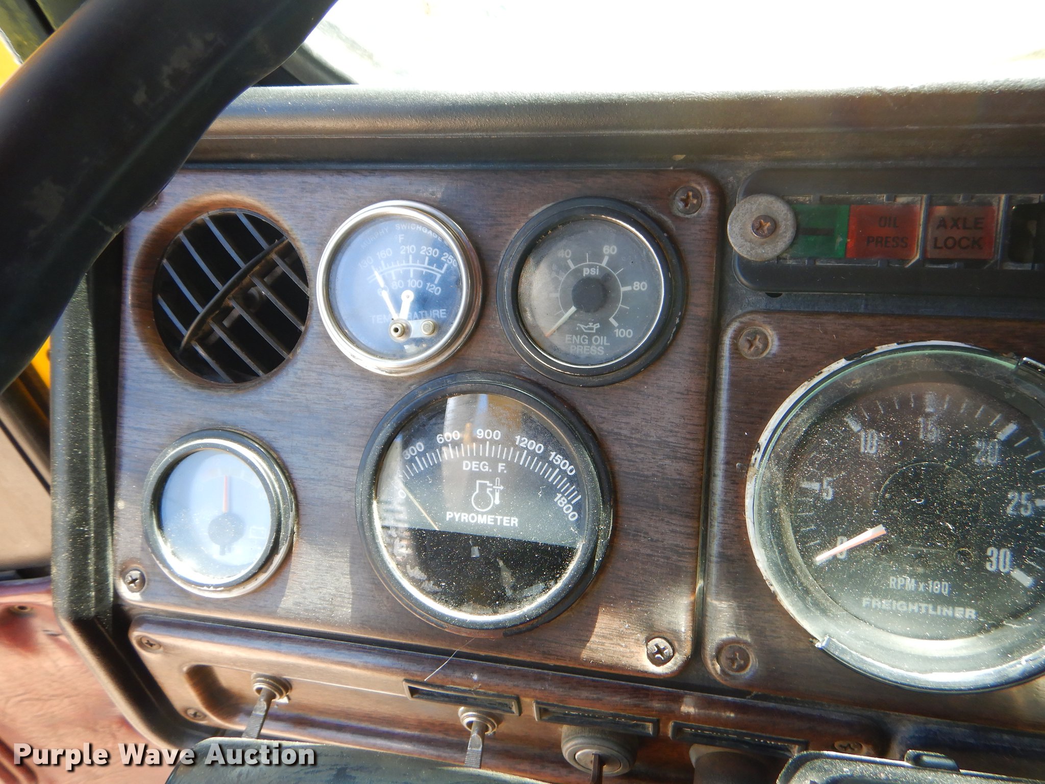 Purple Wave is selling a used Construction Dump Truck in Oklahoma. This item is a 1988 Freightliner FLC dump truck with the following: 160,846 miles on odometer, Miles may vary, still in use, Cummins 14.0L six cylinder diesel engine, Eight speed manual transmission, Tandem axle, Inter-axle differential lock, AC and heat, PTO, Davis HPT12-16 steel dump bed, 16'L x 96"W, 36" side height, 10" side board height, Single ram hoist, Air operated end gate, Single fuel tank, Spring suspension, Air brakes, 216" wheelbase, 11R24.5 tires