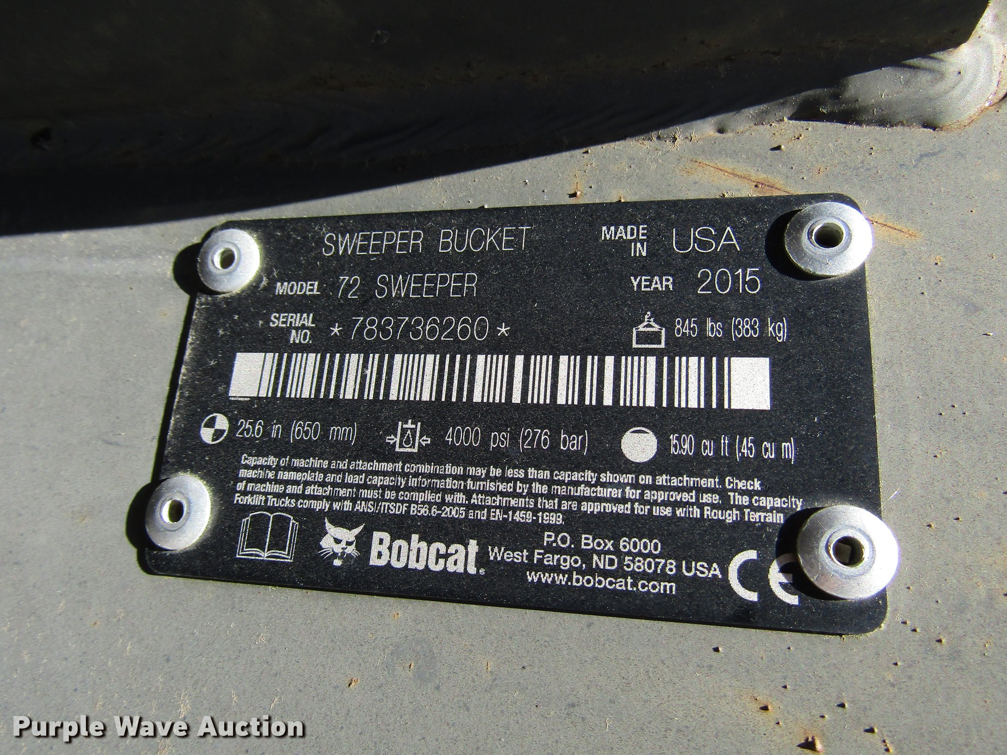 Purple Wave is selling a used Skid Steer Attach. in Tennessee. This item is a 2015 Bobcat 72 Sweeper skid steer sweeper with the following: 72"W, Serial 78736260
