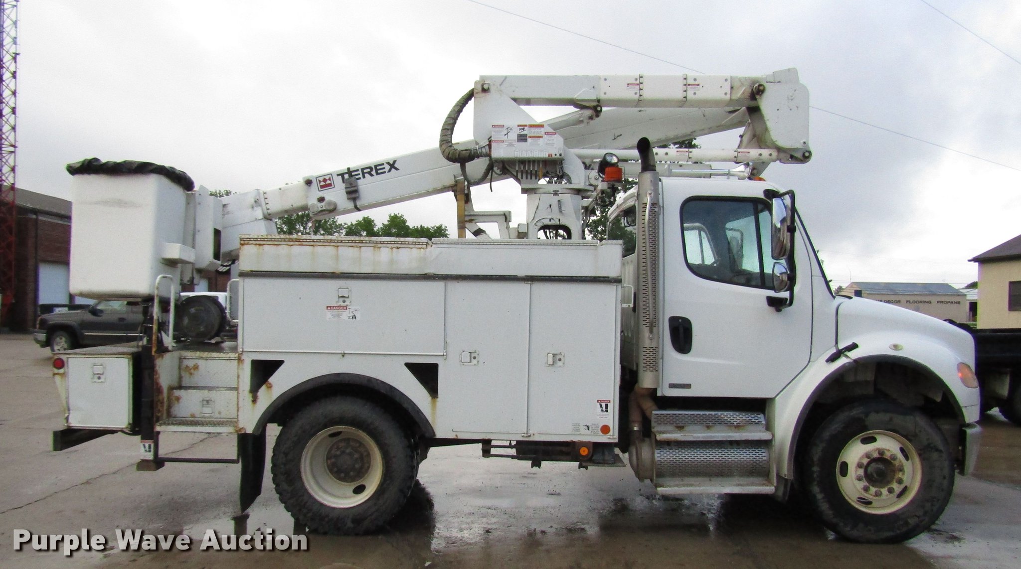 Purple Wave is selling a used Bucket Truck in Illinois. This item is a 2010 Freightliner Business Class M2 bucket truck with the following: 235,493 miles on odometer, Cummins ISC 8.3L L6 diesel engine, Automatic transmission, Single axle, AC and heat, Power windows and locks, Heated mirrors, PTO, Terex 13.5'L utility bed, Serial IM16940, 2010 Terex Hi Ranger TL41 telescopic boom, 400 lbs maximum lift capacity, 41' boom length, Articulating, insulated boom, Man basket, Platform controls, Serial 2100140335, 154" wheelbase, Spring suspension, Air brakes, 315/80R22.5 front tires, 11R22.5 rear tires, GVWR 33,000 lbs, View Diaelectric Test Results
