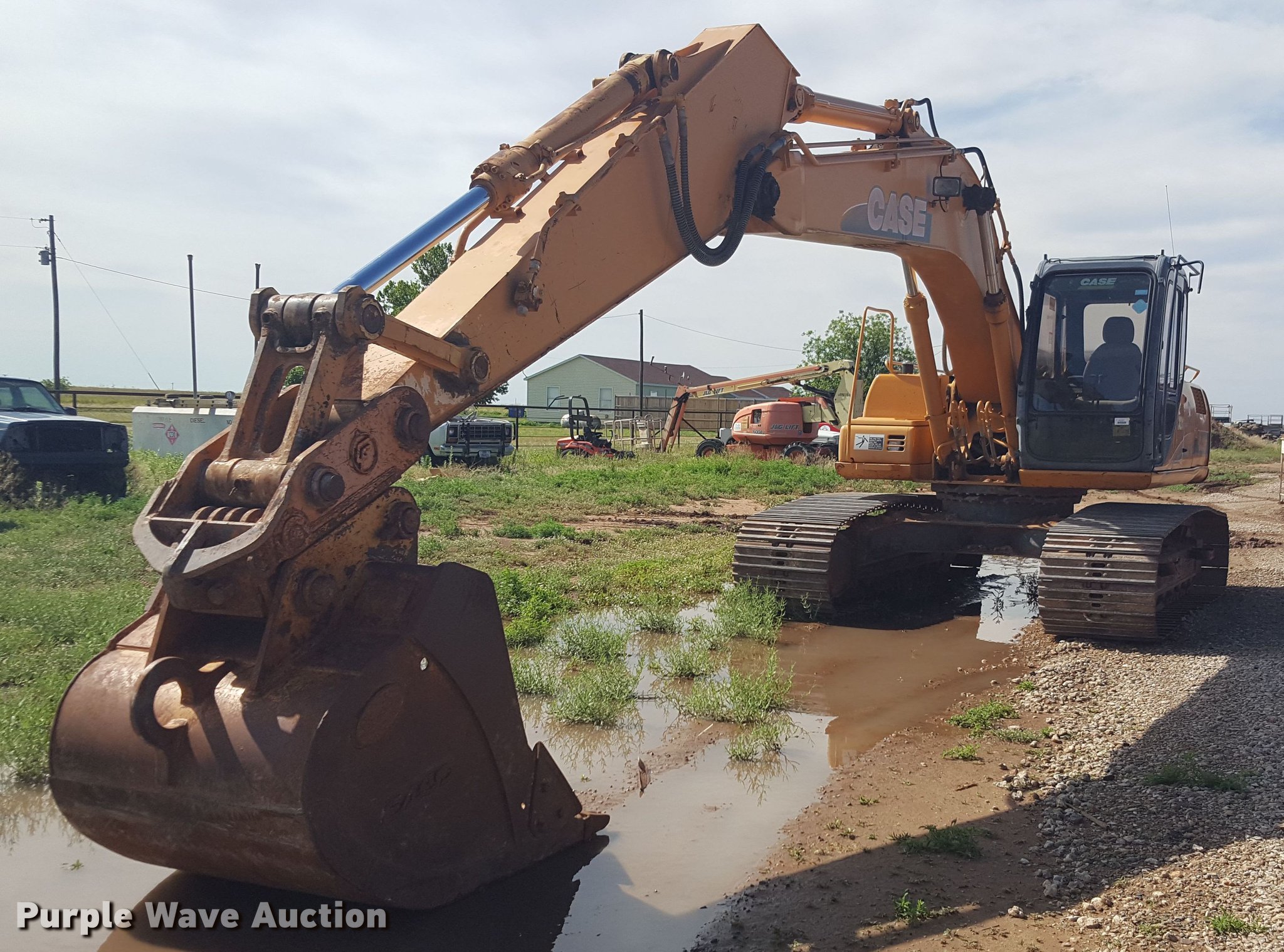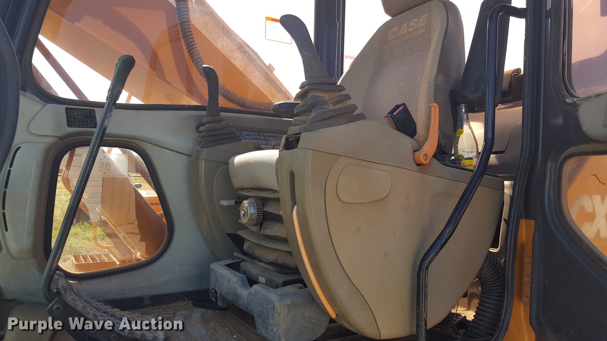 Purple Wave is selling a used Hydraulic Excavator in Texas. This item is a 2005 Case CX210 excavator with the following: 3,229 hours on meter, Cummins 6TAA-5904 359 C.I.D. six cylinder diesel engine, 147 HP, Hydrostatic transmission, EROPS, AC and heat, Wipers, Front and rear work lights, Travel alarm, Standard boom, 9'2" stick length, 36"W bucket, (5) bolt-on teeth, 1 cu. yd. capacity, Auxiliary hydraulics, 32"W steel triple grouser track pads, Serial DAC212492
