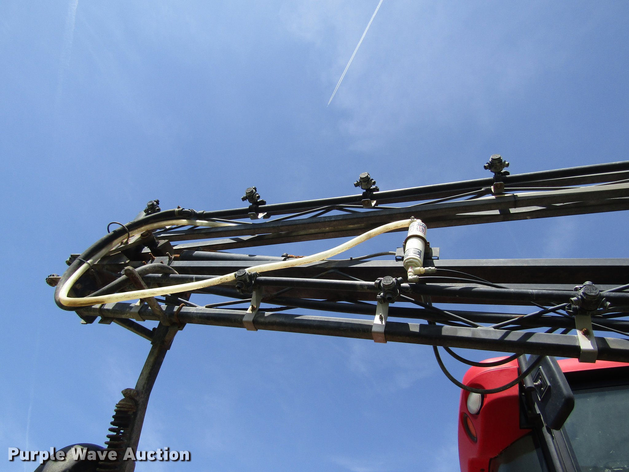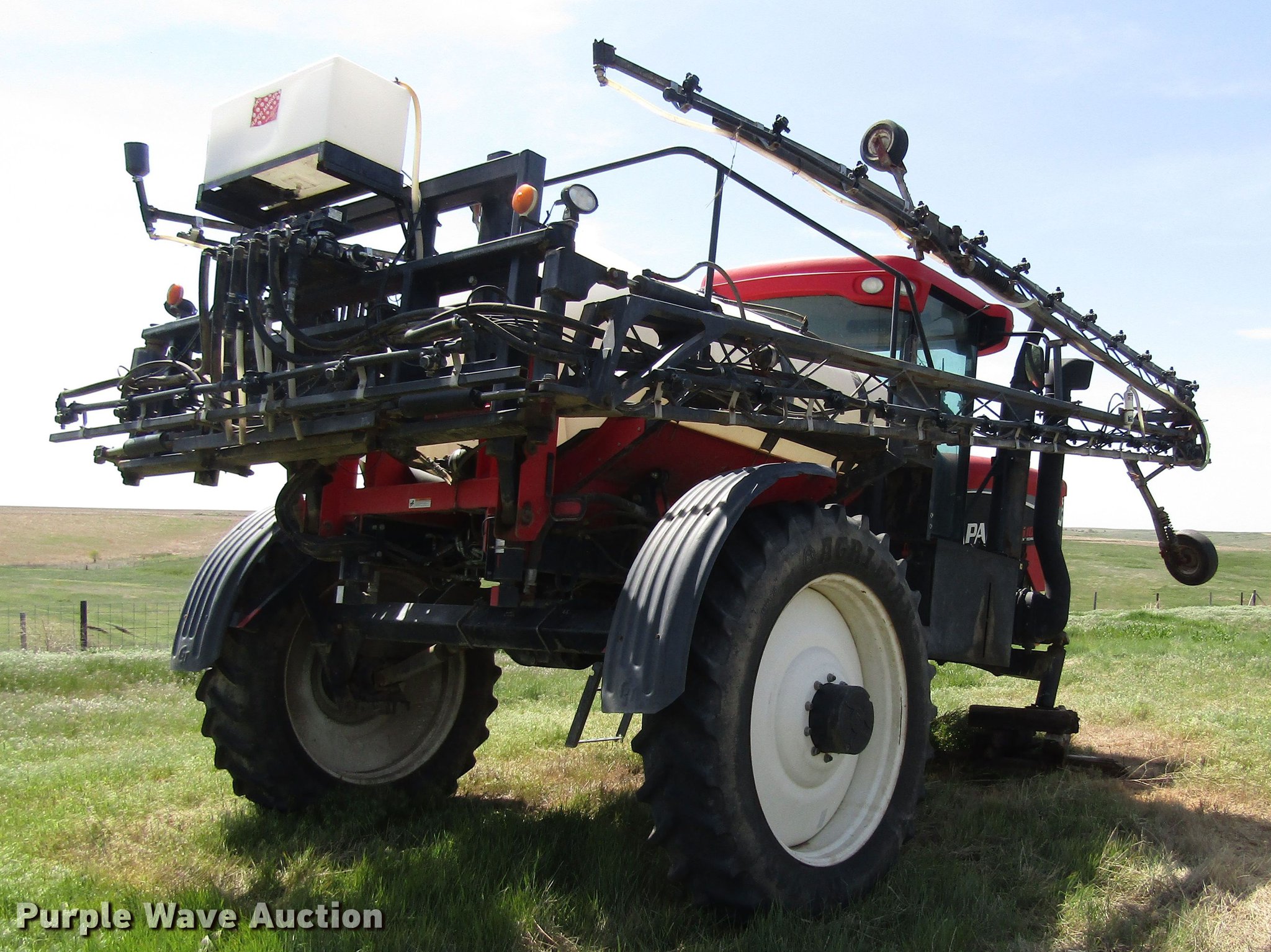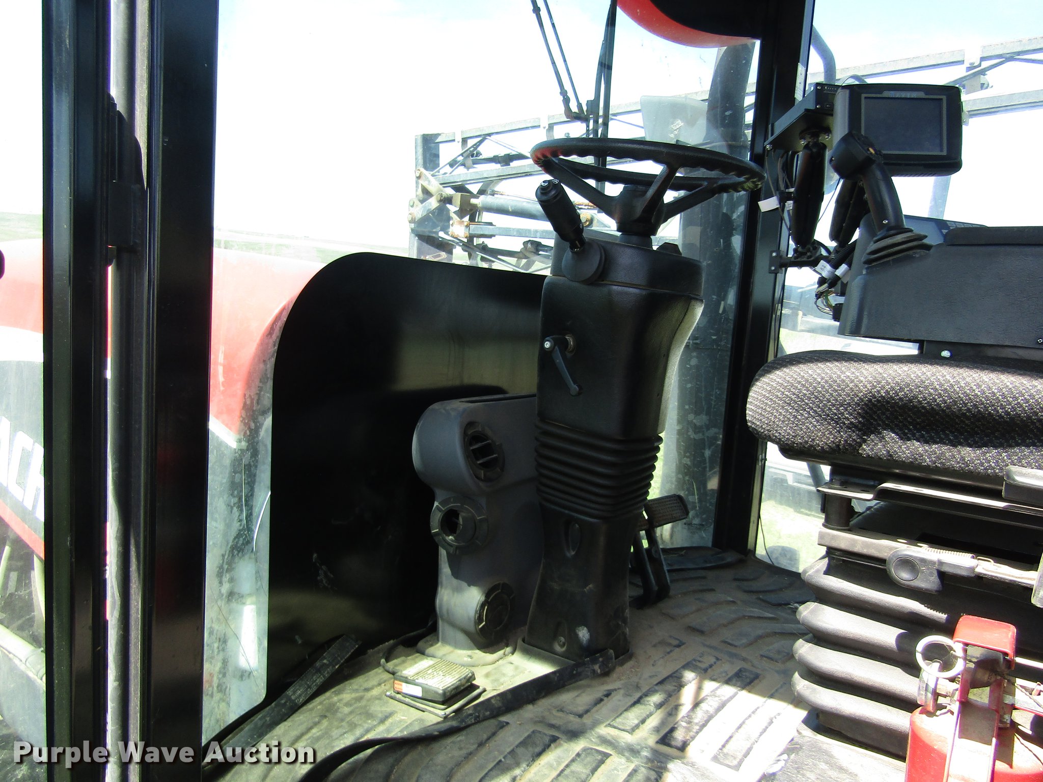 Purple Wave is selling a used Applicator Self Propelled in Kansas. This item is a 2008 Apache AS1010 sprayer with the following: 2,731 engine hours on meter, Cummins 205 six cylinder diesel engine, ILT powershift transmission, 6F-6R gears, Four wheel drive, 1,000 gallon poly solution tank, Poly chemical eductor tank, Rinse tank, Foam marker tank, 90'W boom, Five boom sections, Hydraulic boom fold, Hydraulic height control, 20" nozzle spacing, Three-way nozzle bodies, AC and heat, Air suspension seat, Work lights, Raven Smartrax auto steer and GPS, Raven 4400 spray controls, Fenders, Hydraulic axle width adjust, 380/80R38 row crop tires, Collision damage, Rear cab glass broken, Unknown operating condition, Serial 9083494