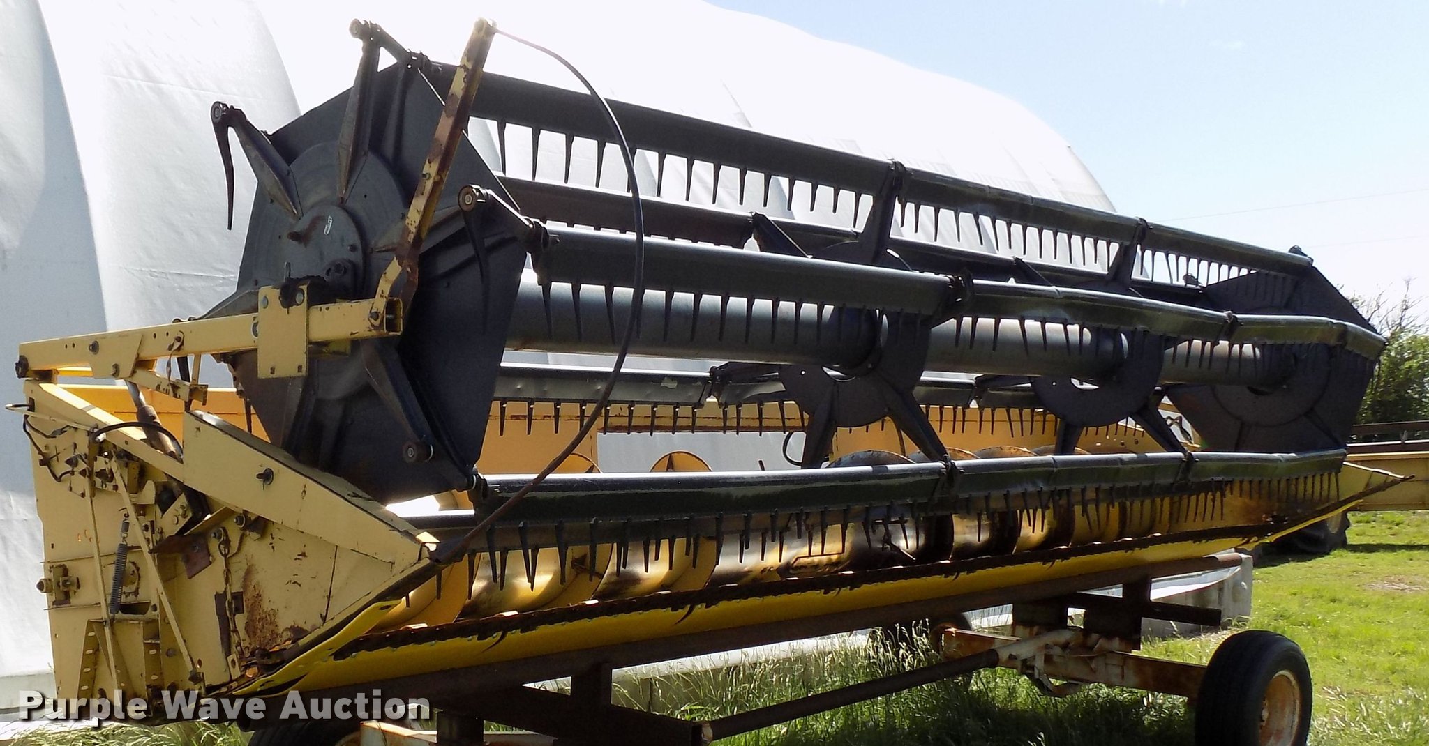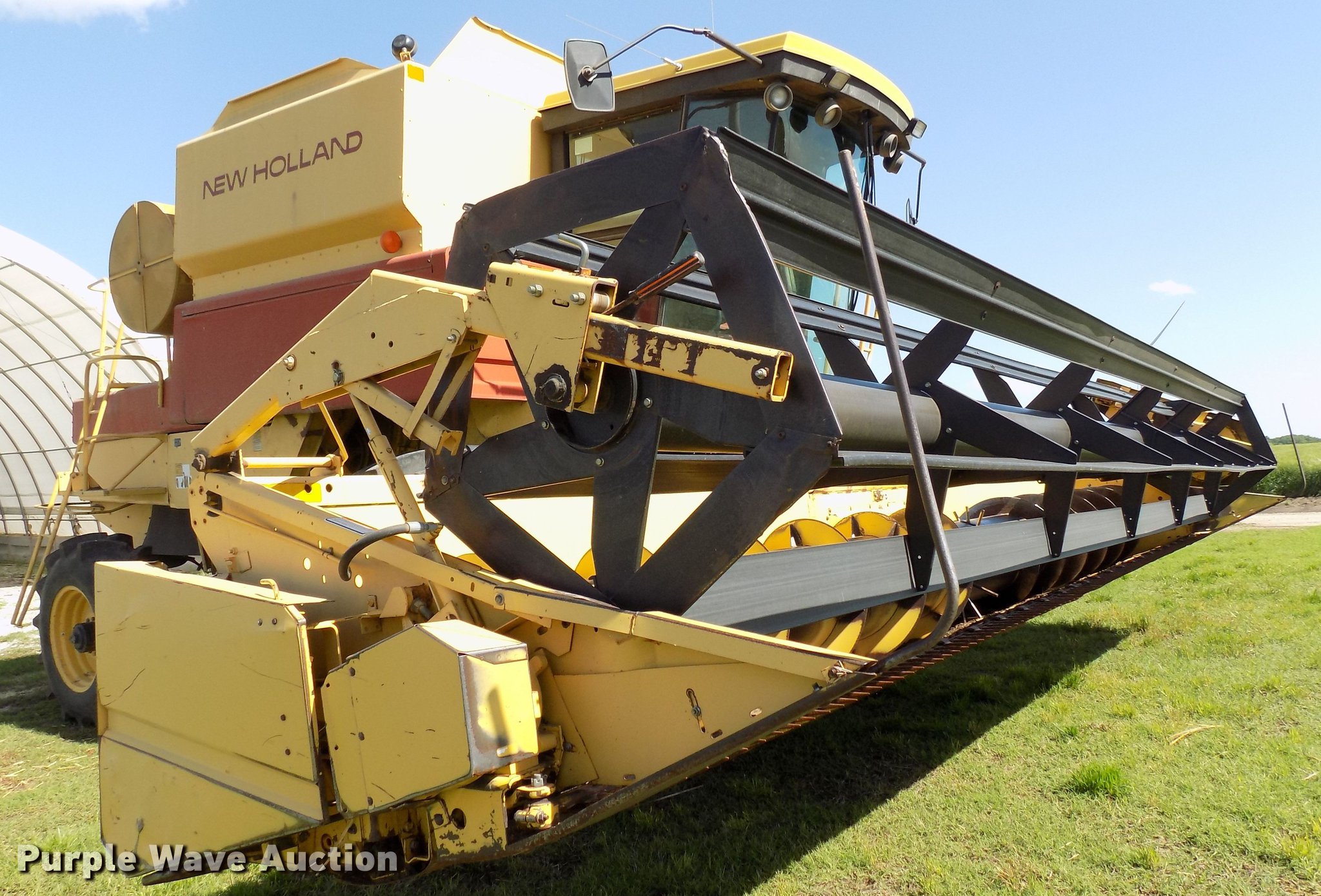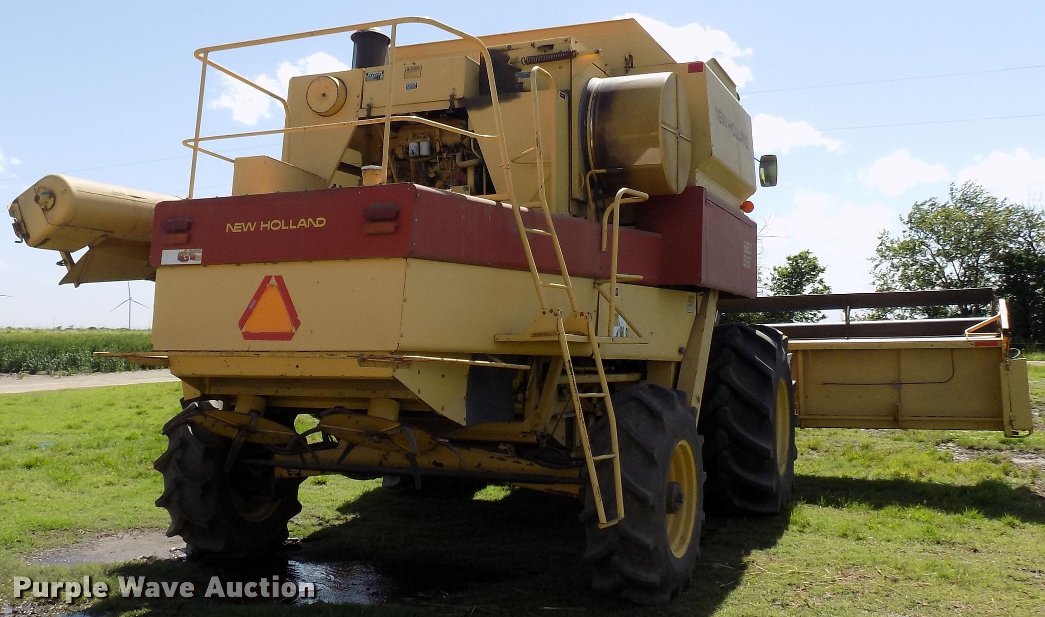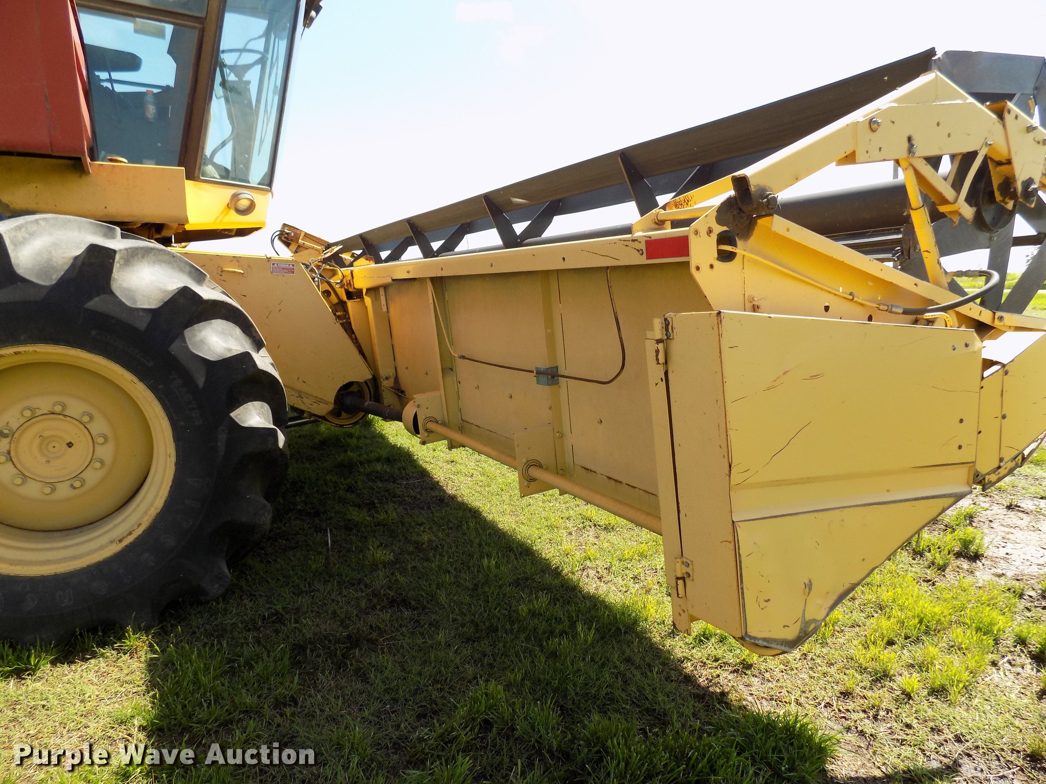 Purple Wave is selling a used Combine in Oklahoma. This item is a 1988 New Holland TR96 RWA combine with the following: 3,632 engine hours on meter, Ford six cylinder diesel engine, Hydrostatic transmission, 1F-1R gears, AC and heat, 13'L unloading auger, New Holland 971 rigid head, 25'W, Bat reel, Hydraulic reel height control, Dual driveline, Serial 602678, New Holland 973 all crop head, 20'W, Bat reel, Hydraulic reel height control, Single driveline, Poly skids, Stainless pan, Serial 544839, 30.5L-32 front tires, 16.9-26 rear tires, Engine hour meter may be inoperable, Header trailer not included, Serial 528972