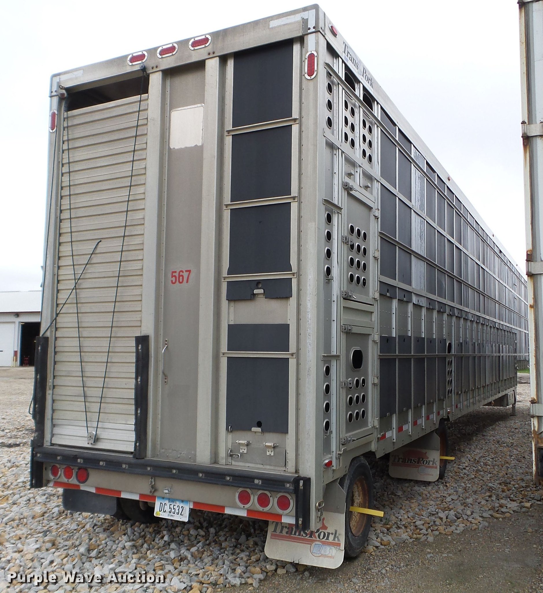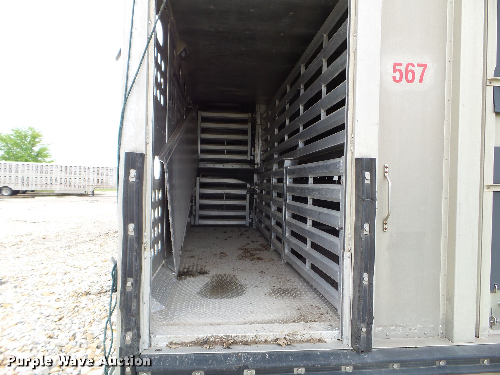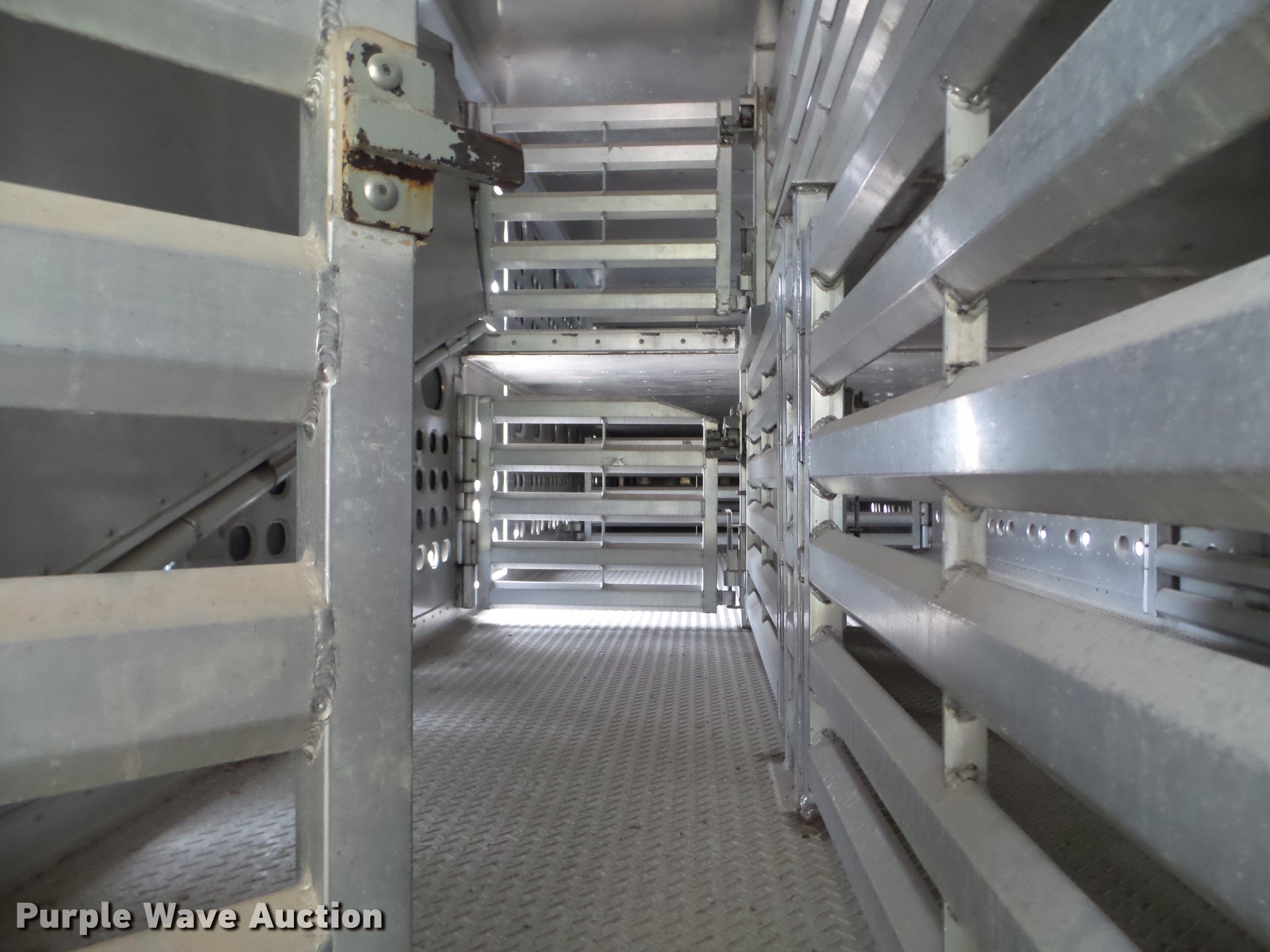 Purple Wave is selling a used Livestock Trailer in Iowa. This item is a 2008 Eby livestock trailer with the following: 53'L x 102"W overall, Three decks, (17) center gates, Aluminum construction, Dual landing gear, Air suspension, Air brakes, Spread axle, Steel wheels, 235/75R17.5 tires, GVWR 66,000 lbs, GAWR 20,000 lbs, Metal fatigue, Unit# 567IA