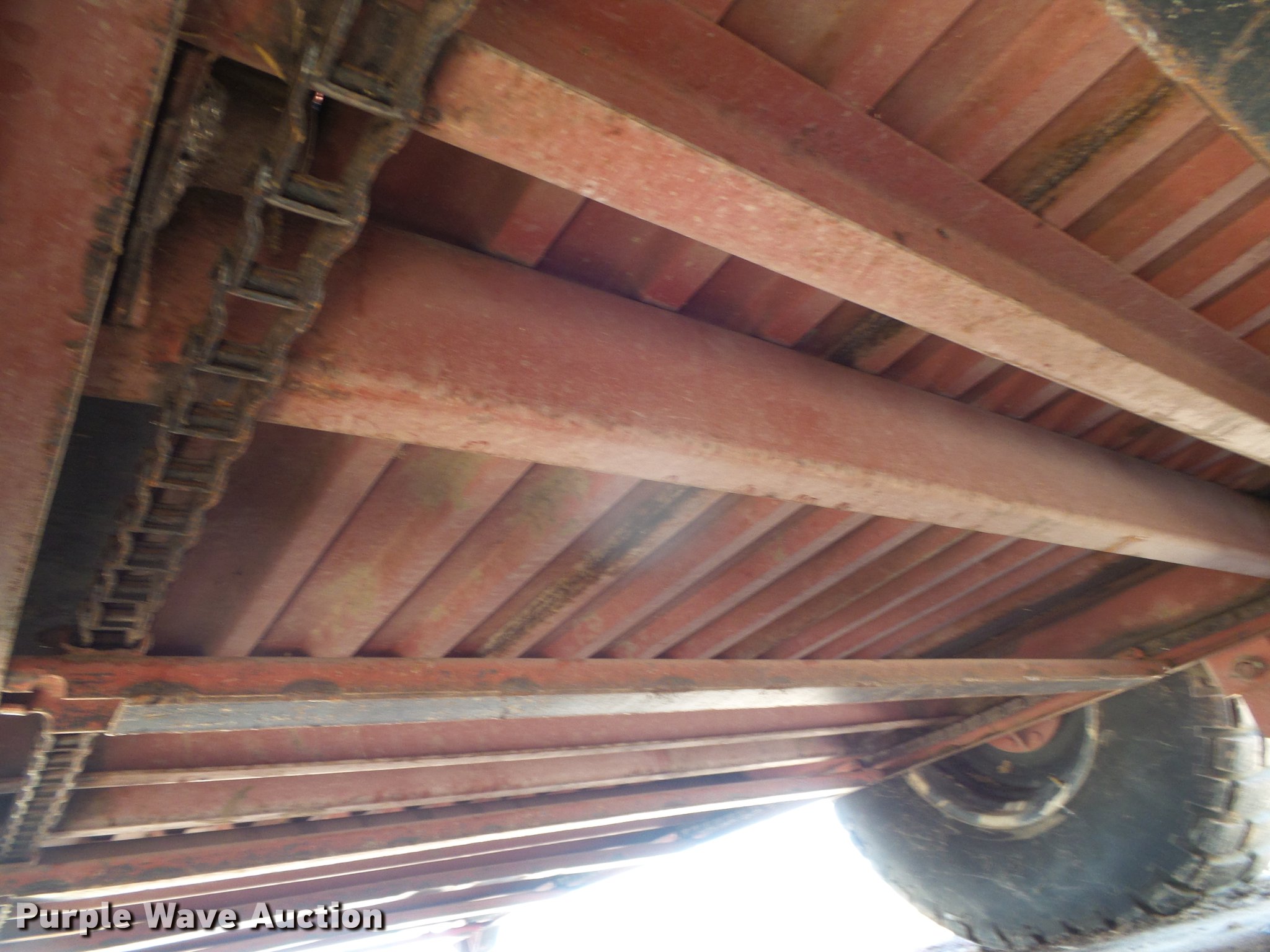 Purple Wave is selling a used Hay Handling in Kansas. This item is a Hesston Stakhand 60B bale stacker with the following: 20'L x 8'W, 6' pickup chamber, 12,000 lbs max capacity, 1000 PTO, Pin hitch, 23.1-26 tires, Weld repairs