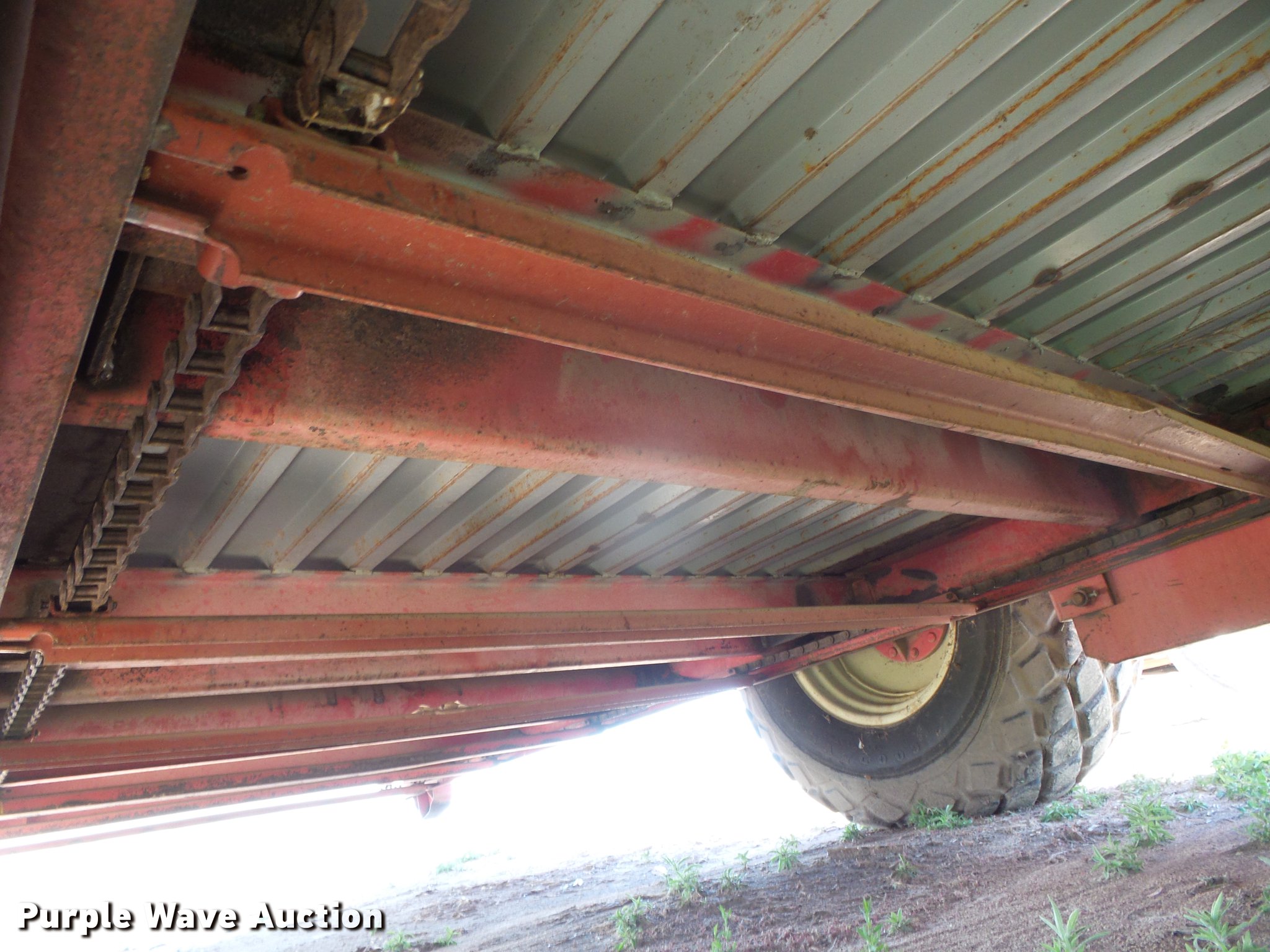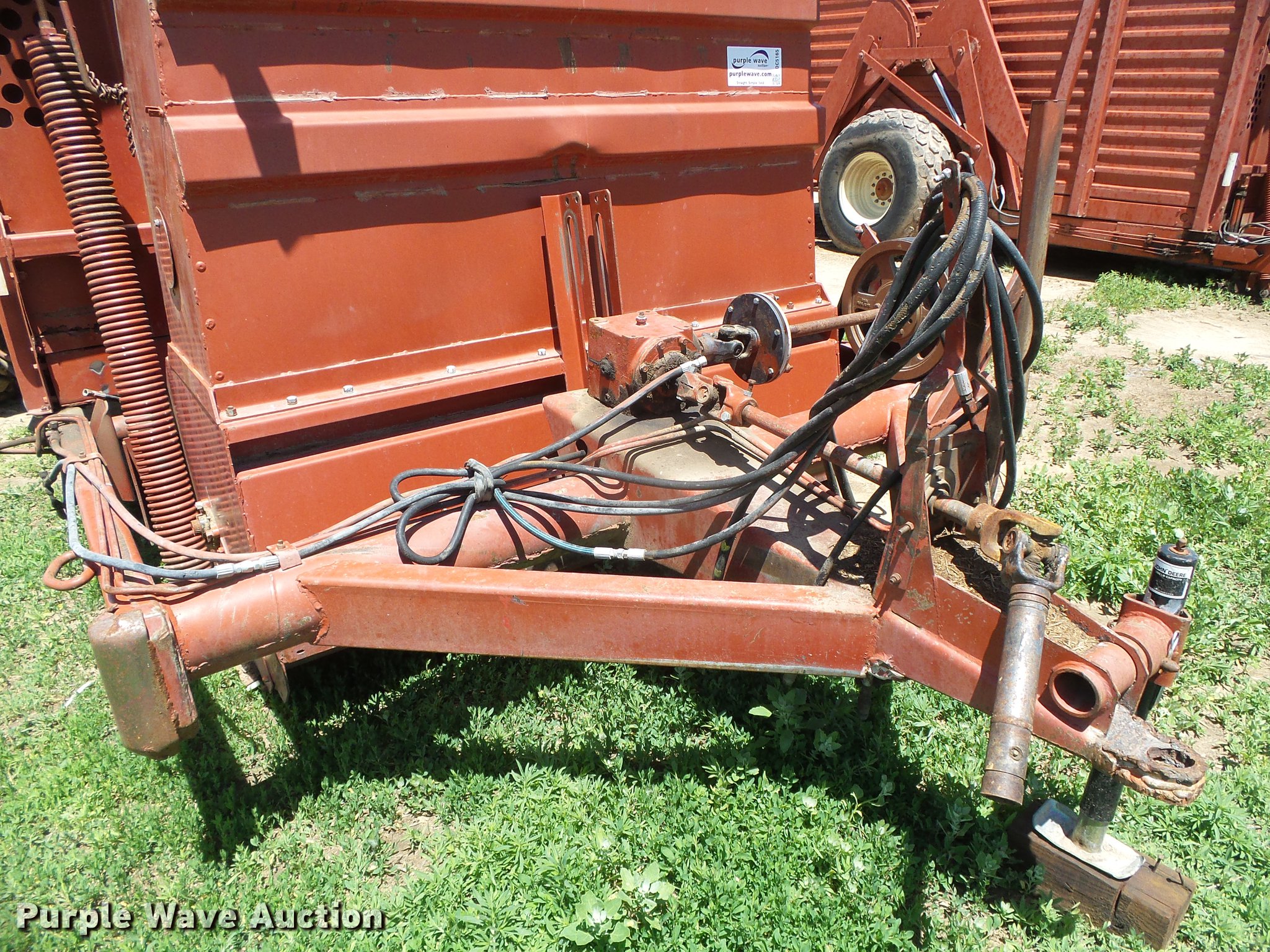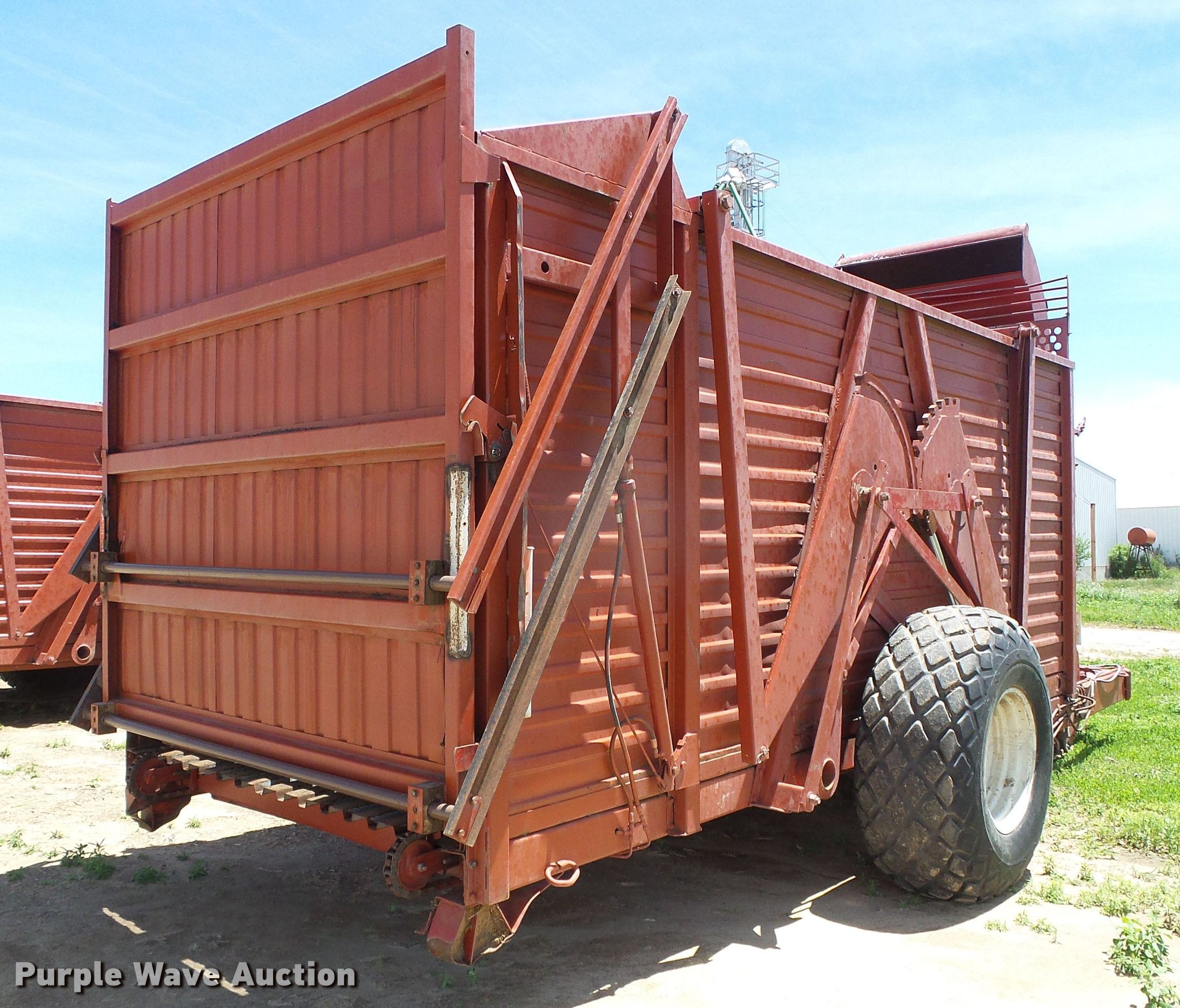 Purple Wave is selling a used Hay Handling in Kansas. This item is a Hesston Stakhand 60B bale stacker with the following: 20'L x 8'W, 6' pickup chamber, 12,000 lbs max capacity, 1000 PTO, A-B conversion, Pin hitch, 23.1-26 tires, Weld repairs, Parts missing, Non-operational unit