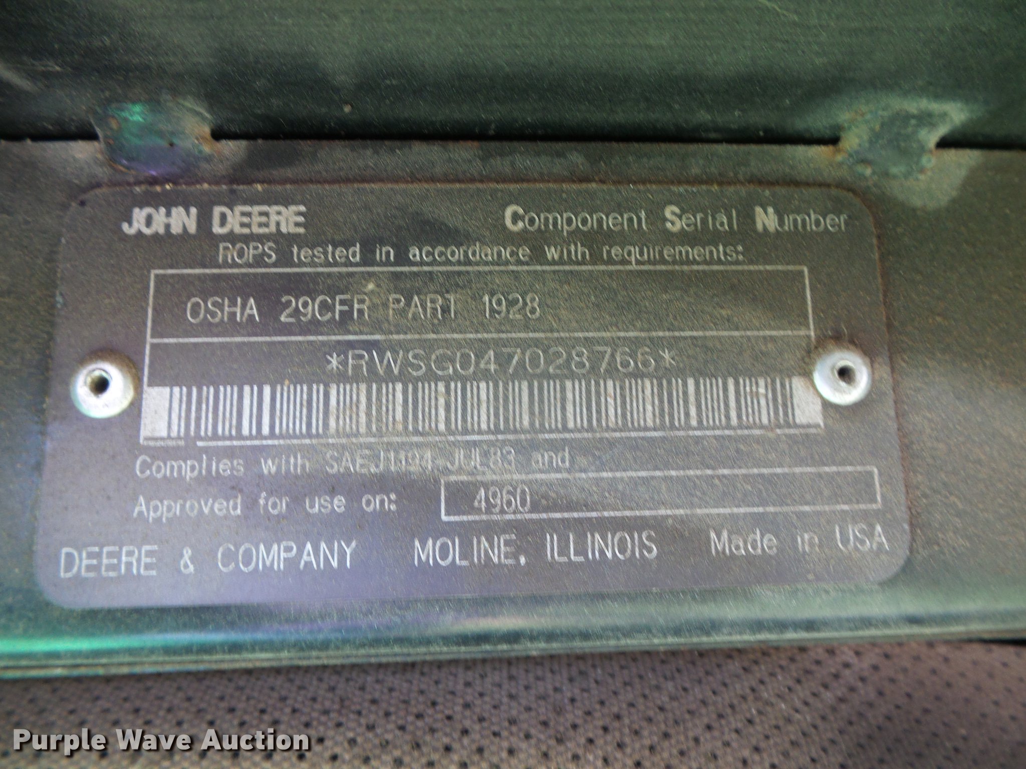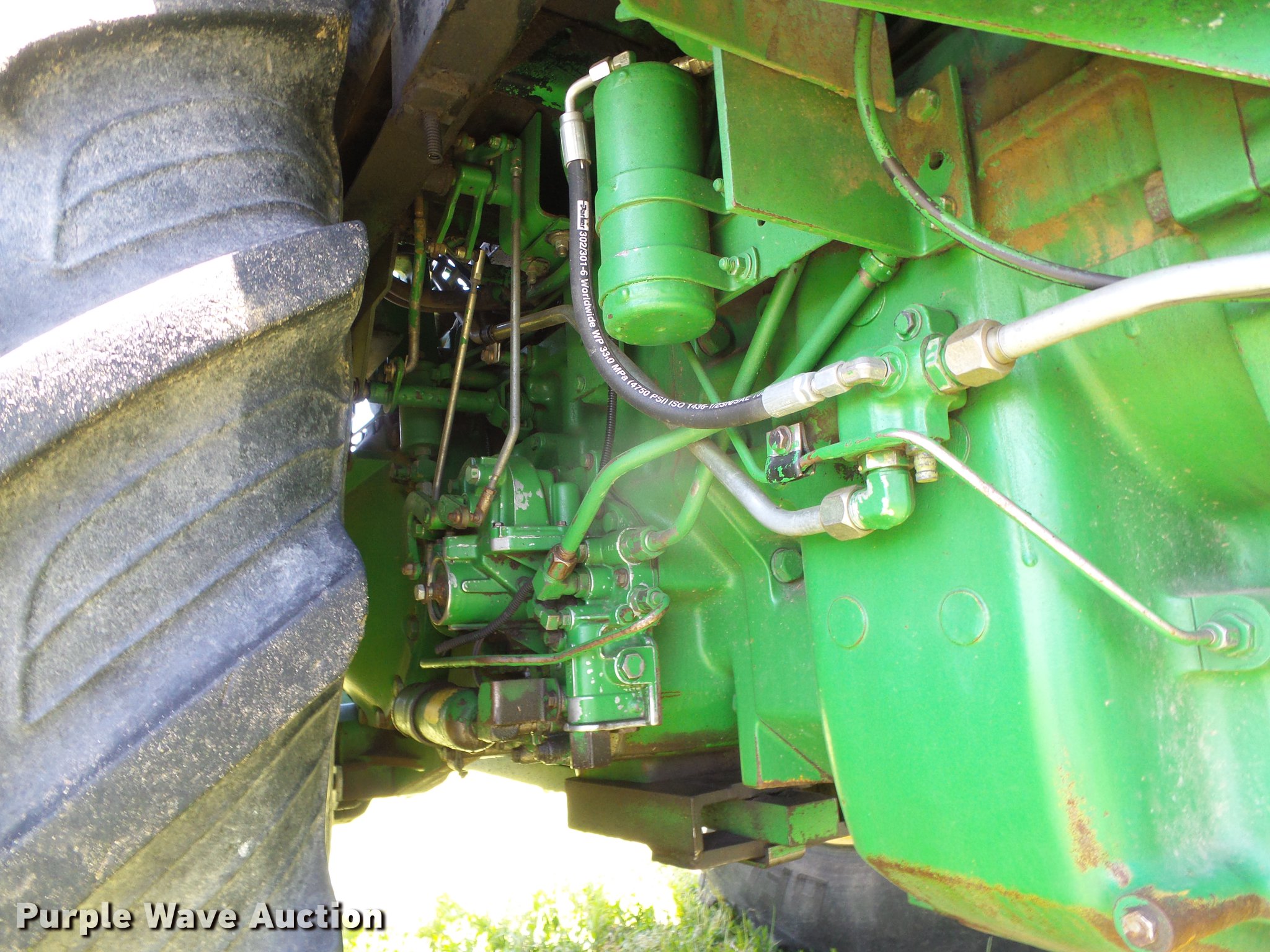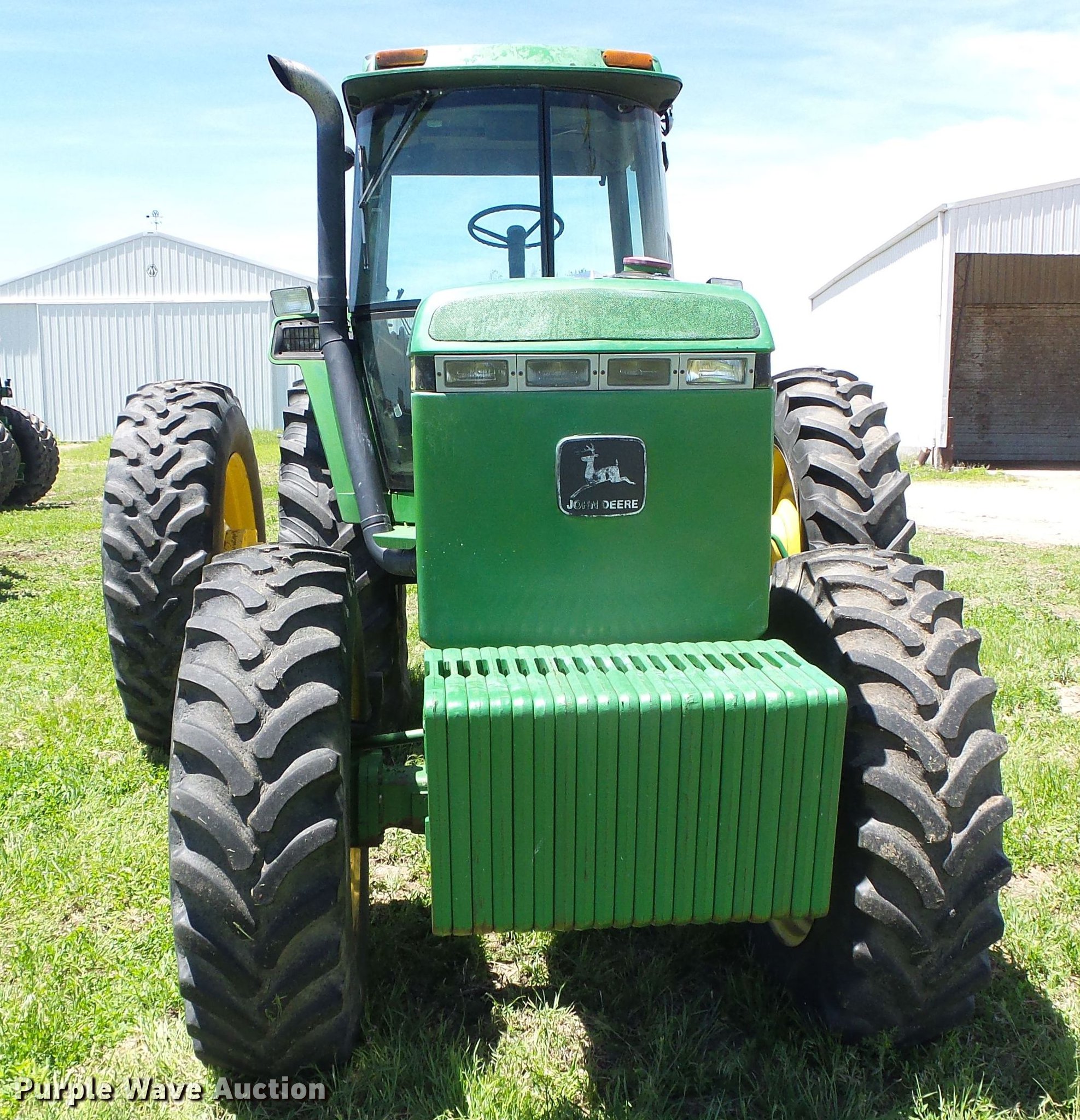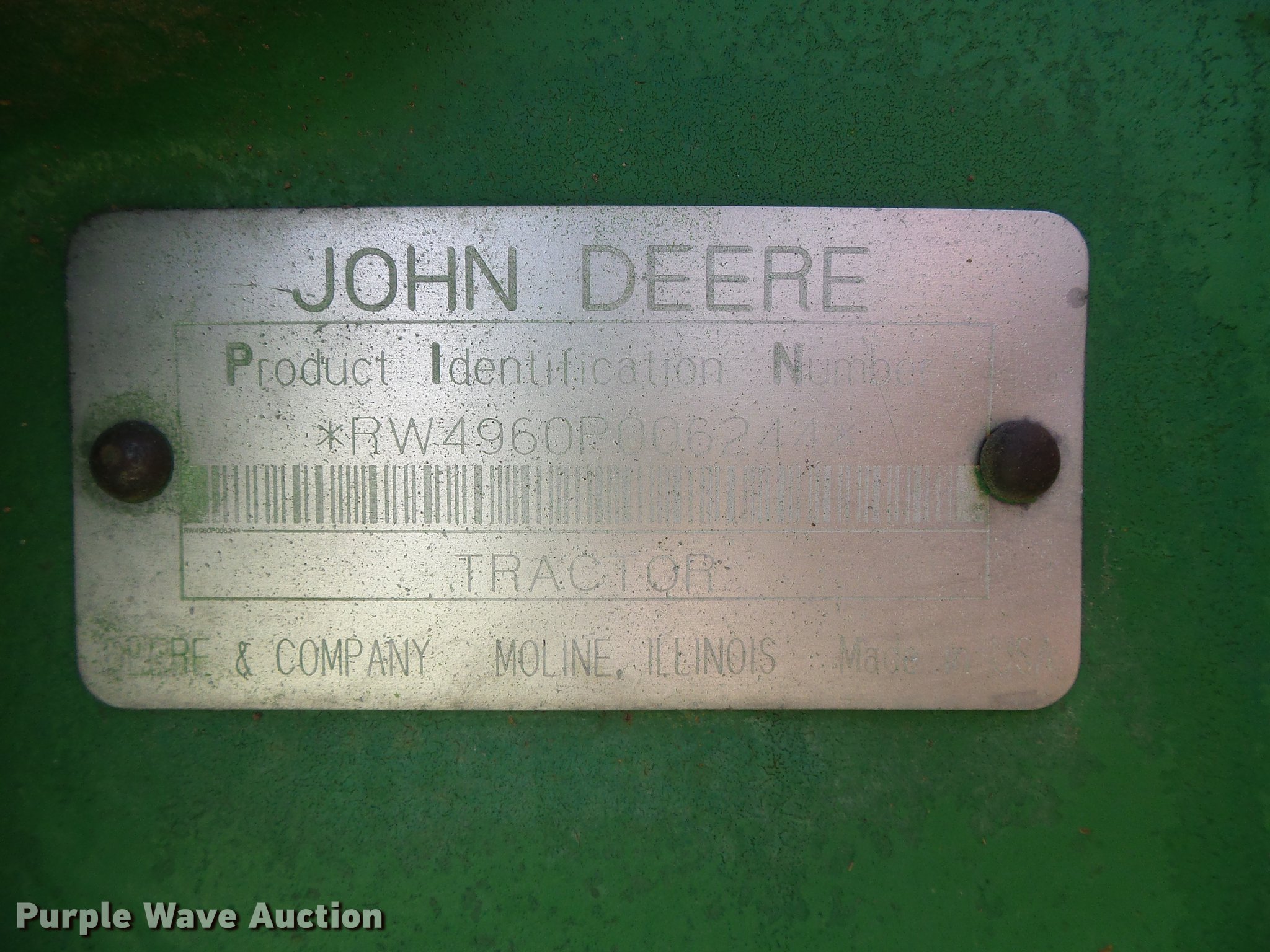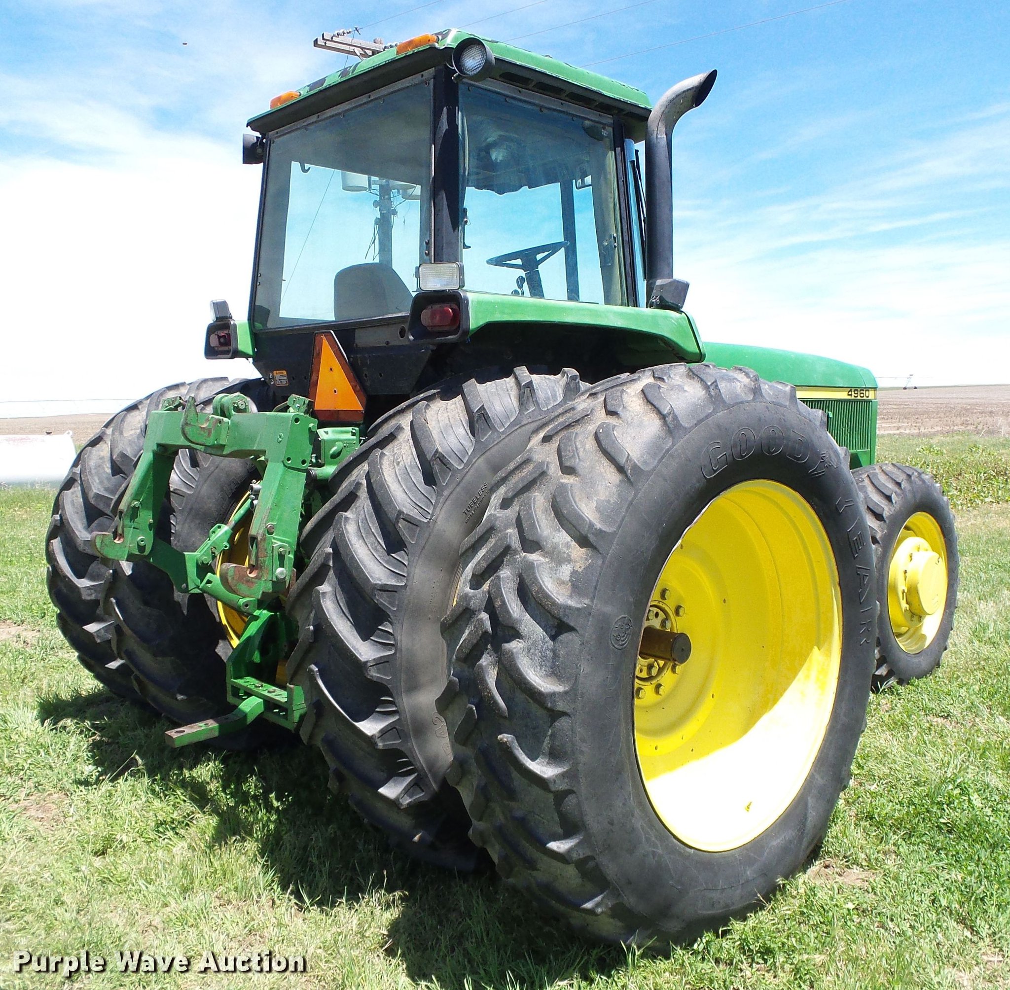 Purple Wave is selling a used Tractor in Kansas. This item is a 1993 John Deere 4960 MFWD tractor with the following: 12,929 hours on meter, John Deere 6076 7.6L six cylinder diesel engine, Serial RG6076A191846, Powershift transmission, 15F-4R gears, AC and heat, AM/FM, Three point, Top link, Quick attach, Seven pin outlet, Large 1000 PTO, (3) rear hydraulic remote sets, (20) suitcase weights, Wheel weights, 14.9x30 front tires, 18.4-42 dual rear tires, Weak battery, Transmission sticks, Possible shift valve or filter issue, Serial RW4960P006244