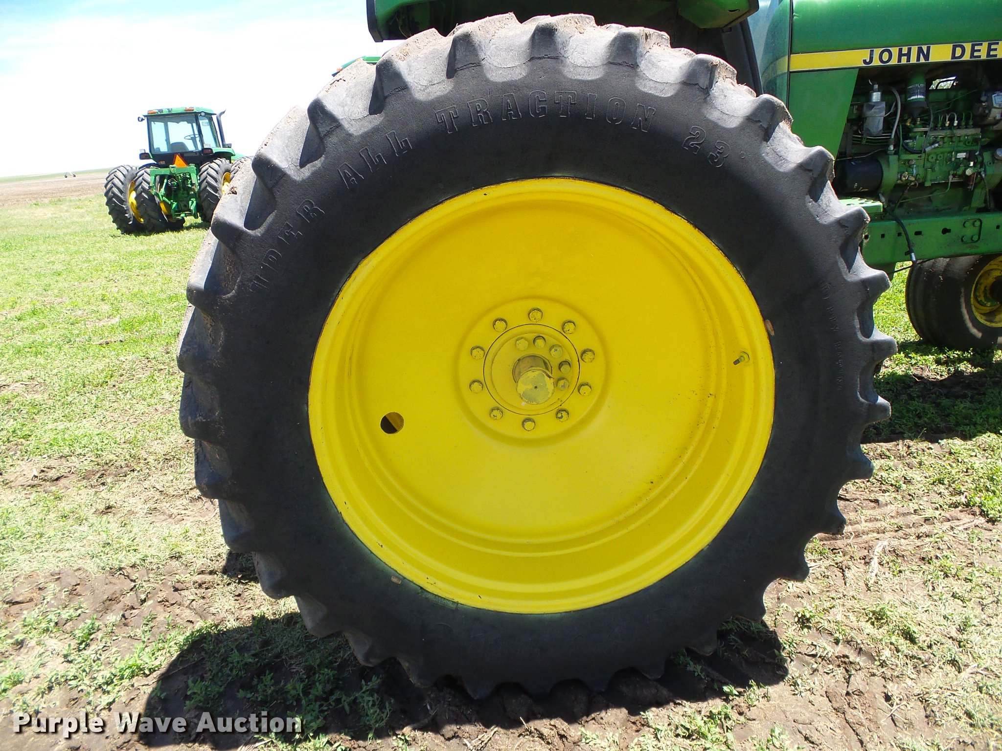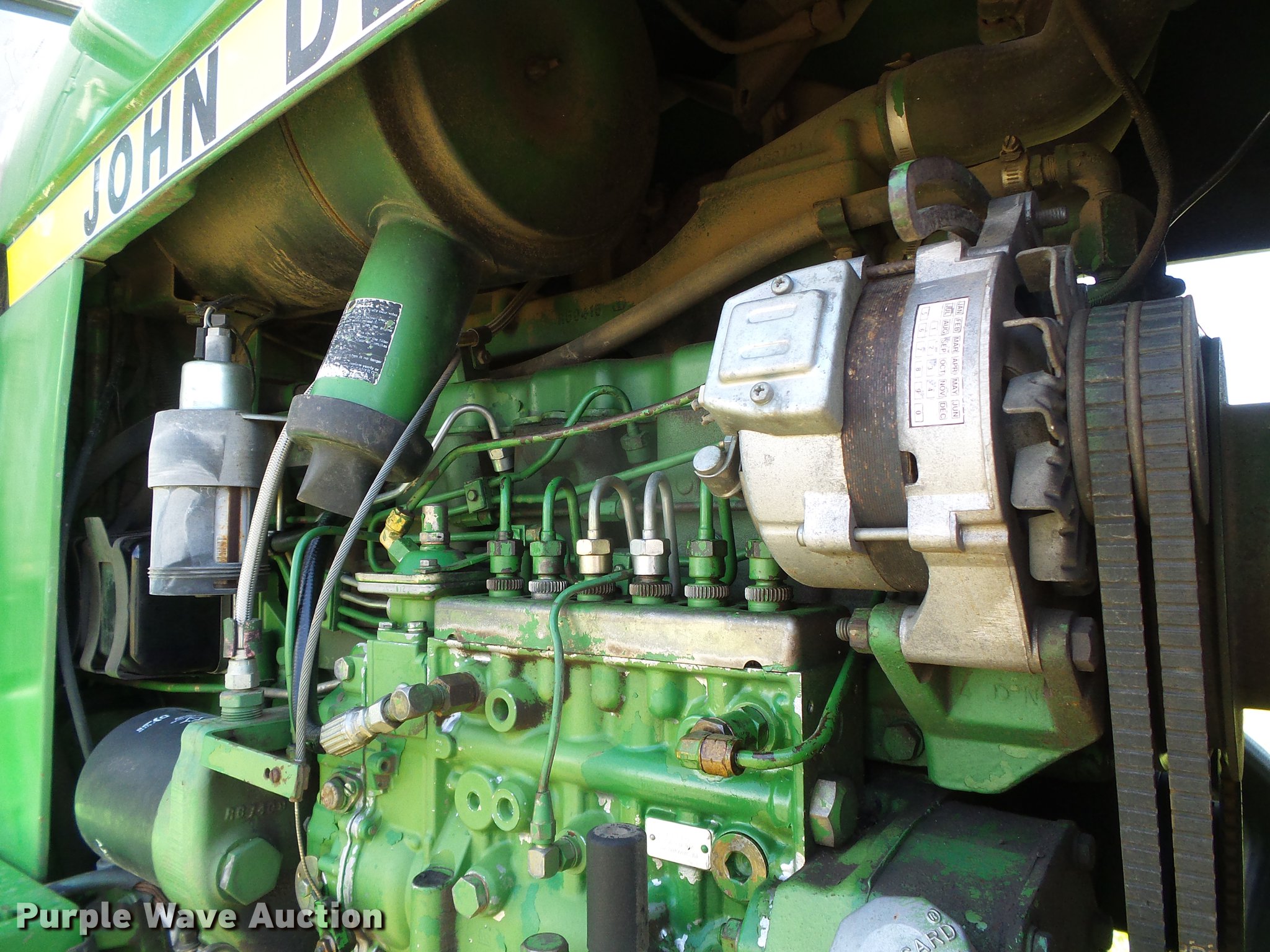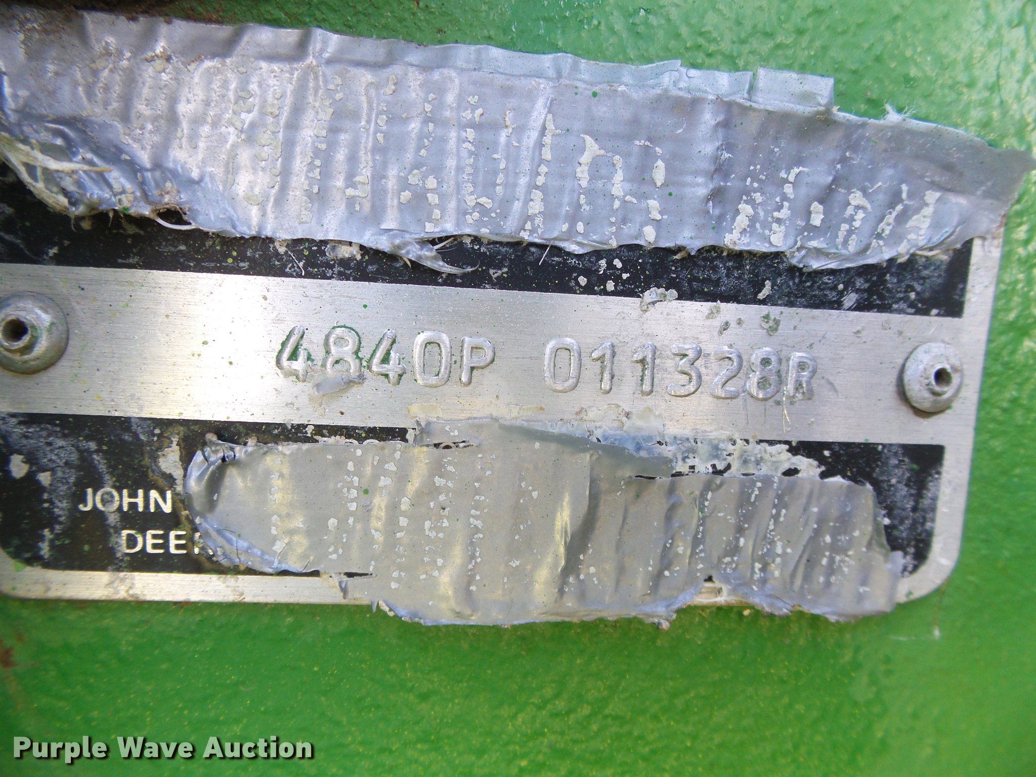 Purple Wave is selling a used Tractor in Kansas. This item is a 1981 John Deere 4840 tractor with the following: 18,169 hours on meter, John Deere 6466AR 7.6L six cylinder diesel engine, Serial 147653RG, Powershift transmission, 8F-4R gears, AC and heat, AM/FM, Large 1000 PTO, (3) rear hydraulic remote sets, (8) suitcase weights, Wheel weights, 14L-16.1 front tires, 18.4R42 dual rear tires, Weak battery, Water in oil, Serial 4840P011328R