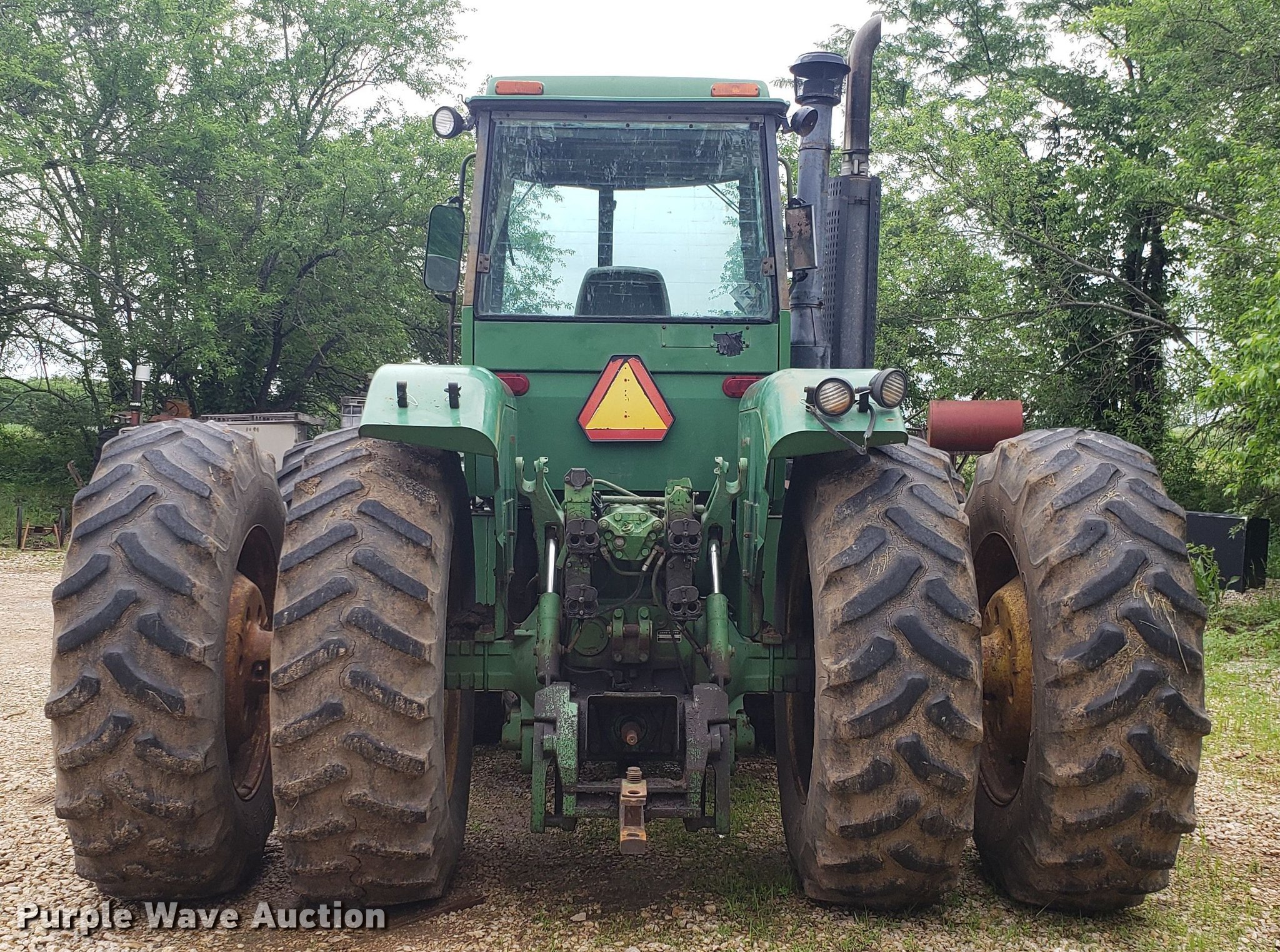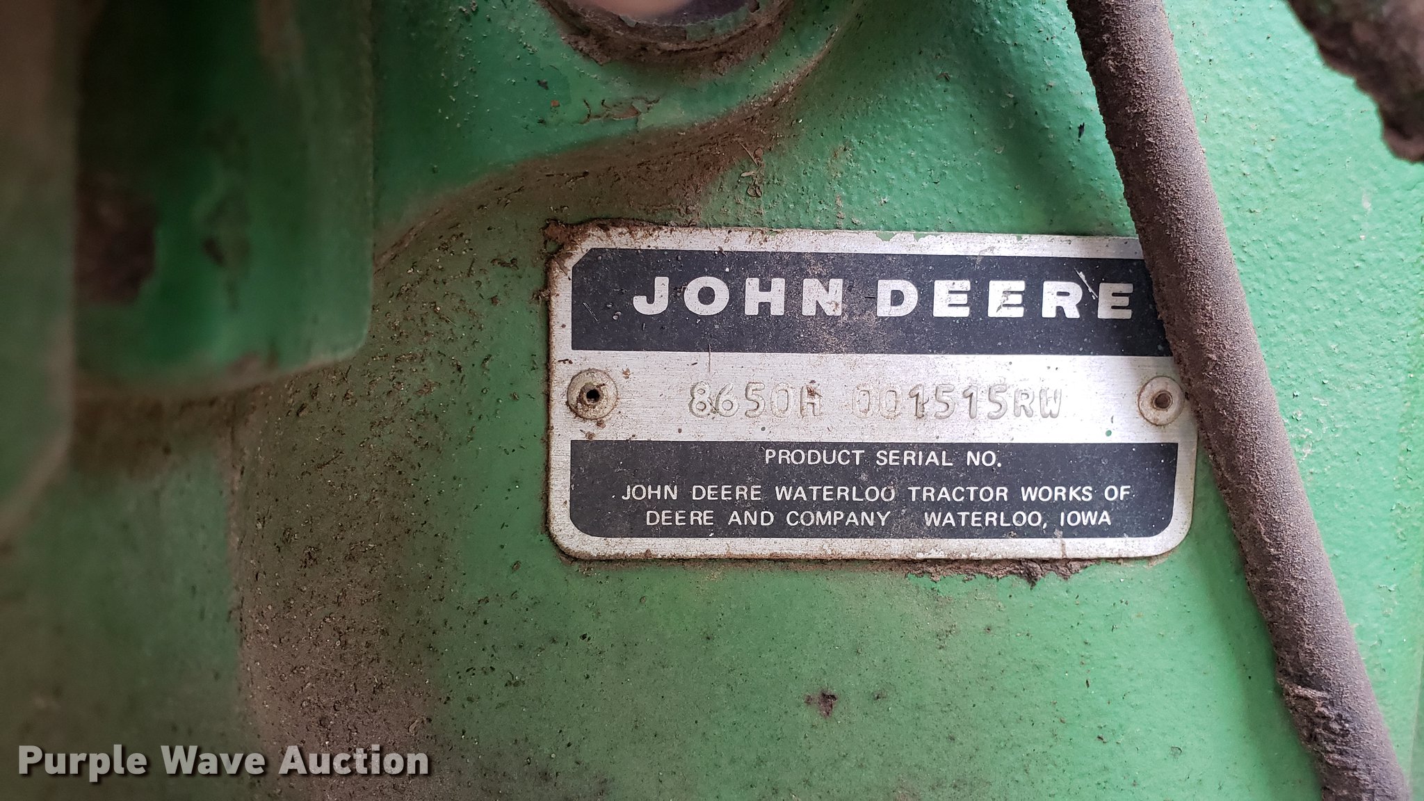 Purple Wave is selling a used Articulated 4-Wheel Drive Tractor in Missouri. This item is a 1982 John Deere 8650 4WD tractor with the following: 2,003 hours on meter, John Deere six cylinder diesel engine, Serial 042522R0, Quad-Range transmission, 16F-6R gears, AC and heat, 1000 PTO, (4) rear hydraulic remotes, 520/85R38 dual tires, Serial 001515RW