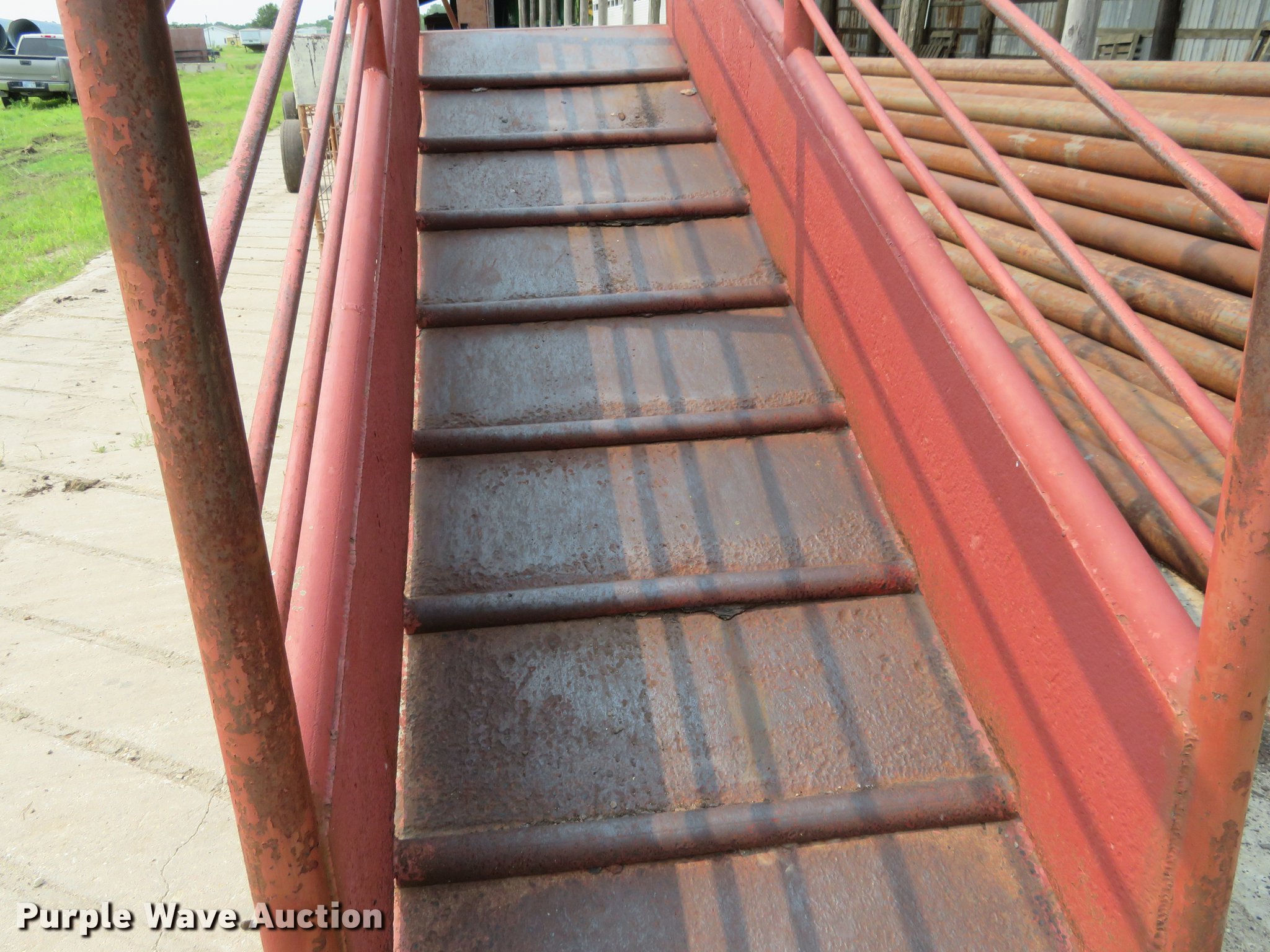 Purple Wave is selling a used Livestock Equip. in Kansas. This item is a Steel livestock loading chute with the following: 125"L x 35"W, 4' dock height