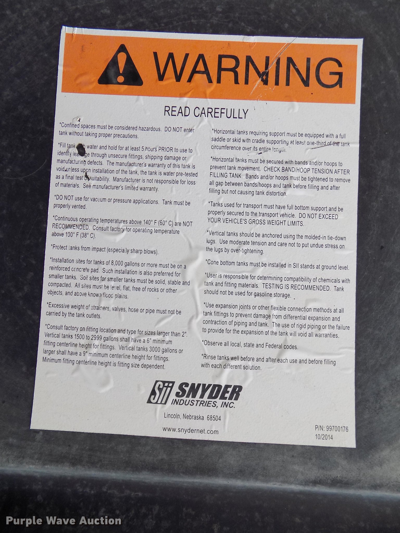 • DE7684 image for item DE7684 2014 Snyder Industries Sii vertical poly tank