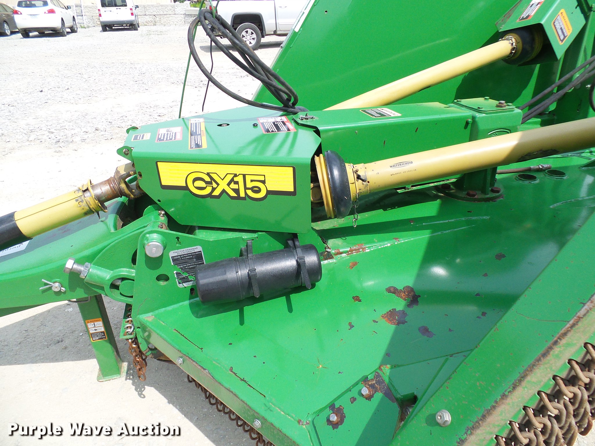 Purple Wave is selling a used Mower, Cutter, Shredder in Missouri. This item is a 2014 John Deere CX15 batwing rotary mower with the following: 15'W, Hydraulic fold, 1000 PTO, Rear suspension, Serial 1P0CX15FPET044171