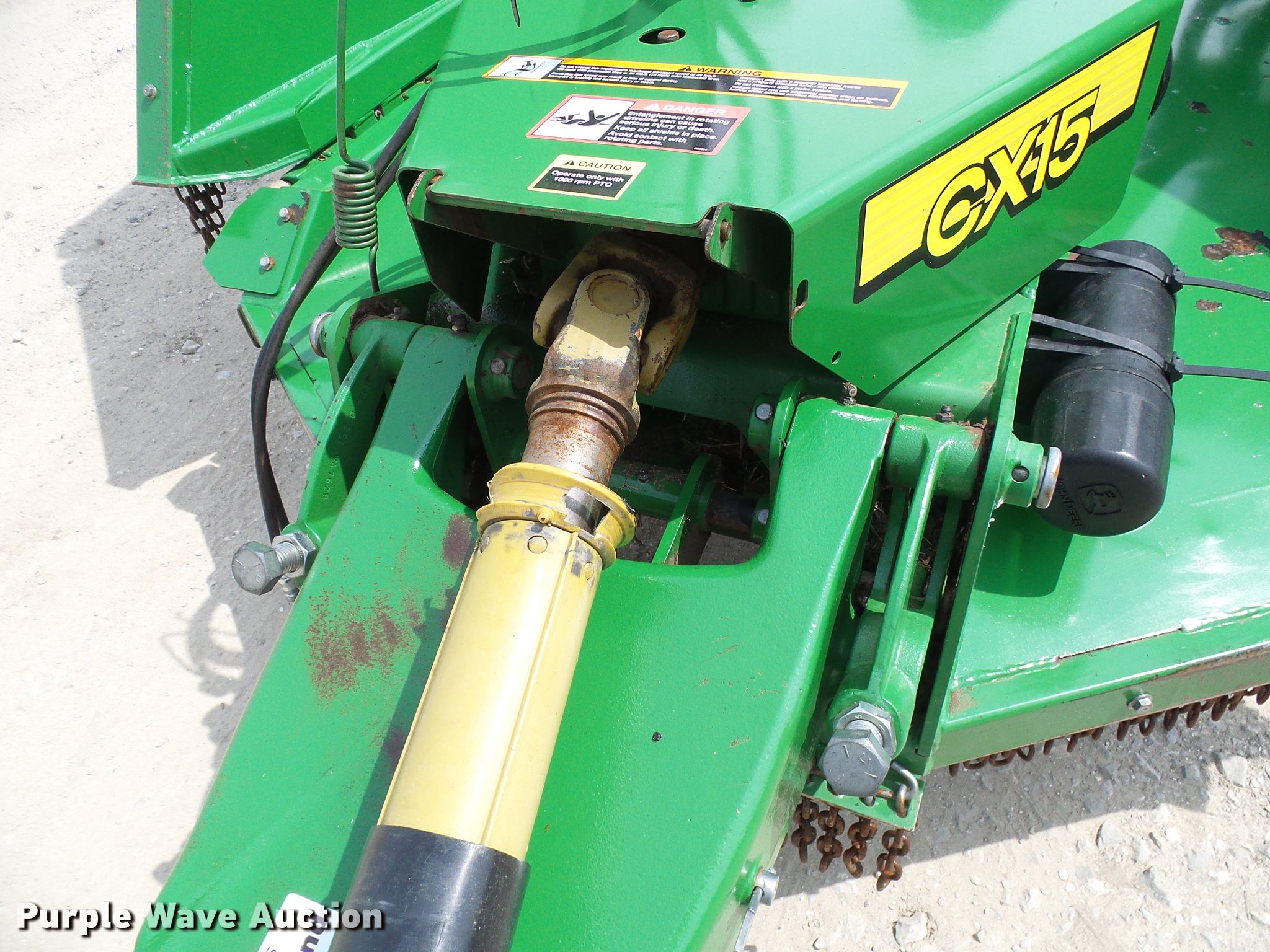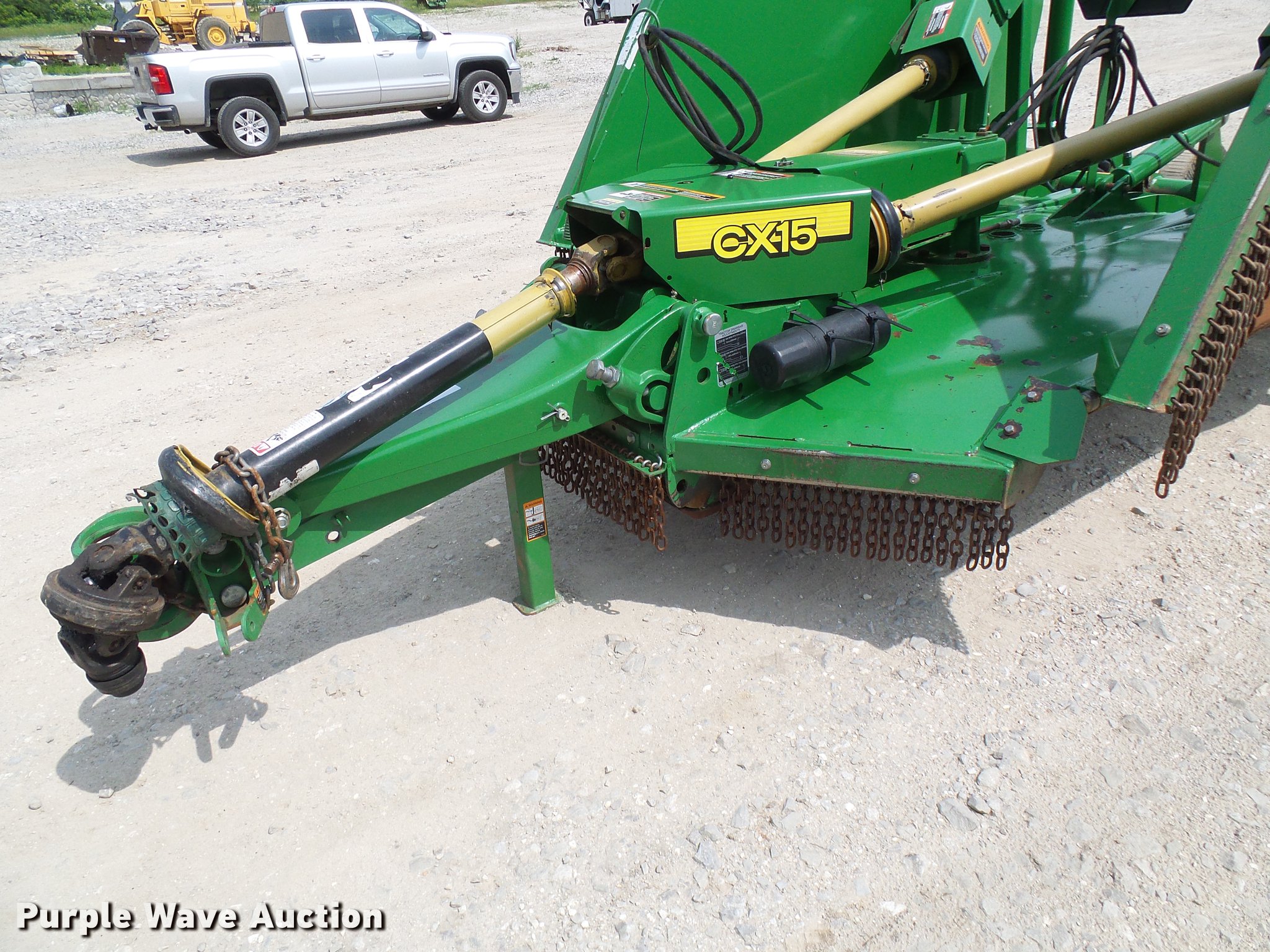 2014 John Deere CX15 batwing rotary mower. 15'W, Hydraulic fold, 1000 PTO, Rear suspension, Serial 1P0CX15FPET044171. Mid-Mo Equipment. 5551 E Missouri 163. Columbia, MO 65201