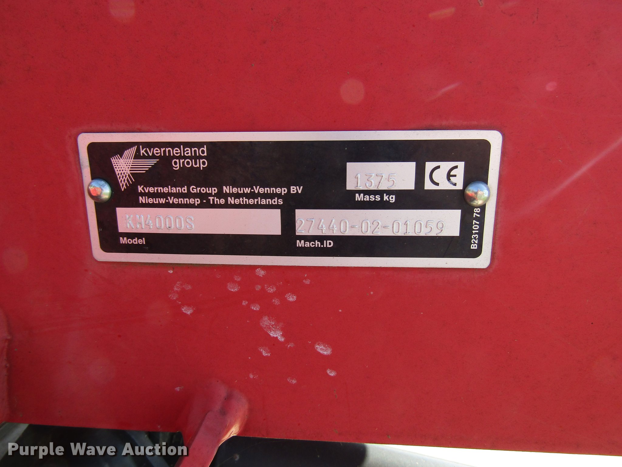 Purple Wave is selling a used Disc or Sickle Mower in Kansas. This item is a Vicon KM4000S disc mower with the following: 13.5' cutting width, 540 PTO, Pin hitch, 10.5/65-16 tires, Serial 27440-02-01059