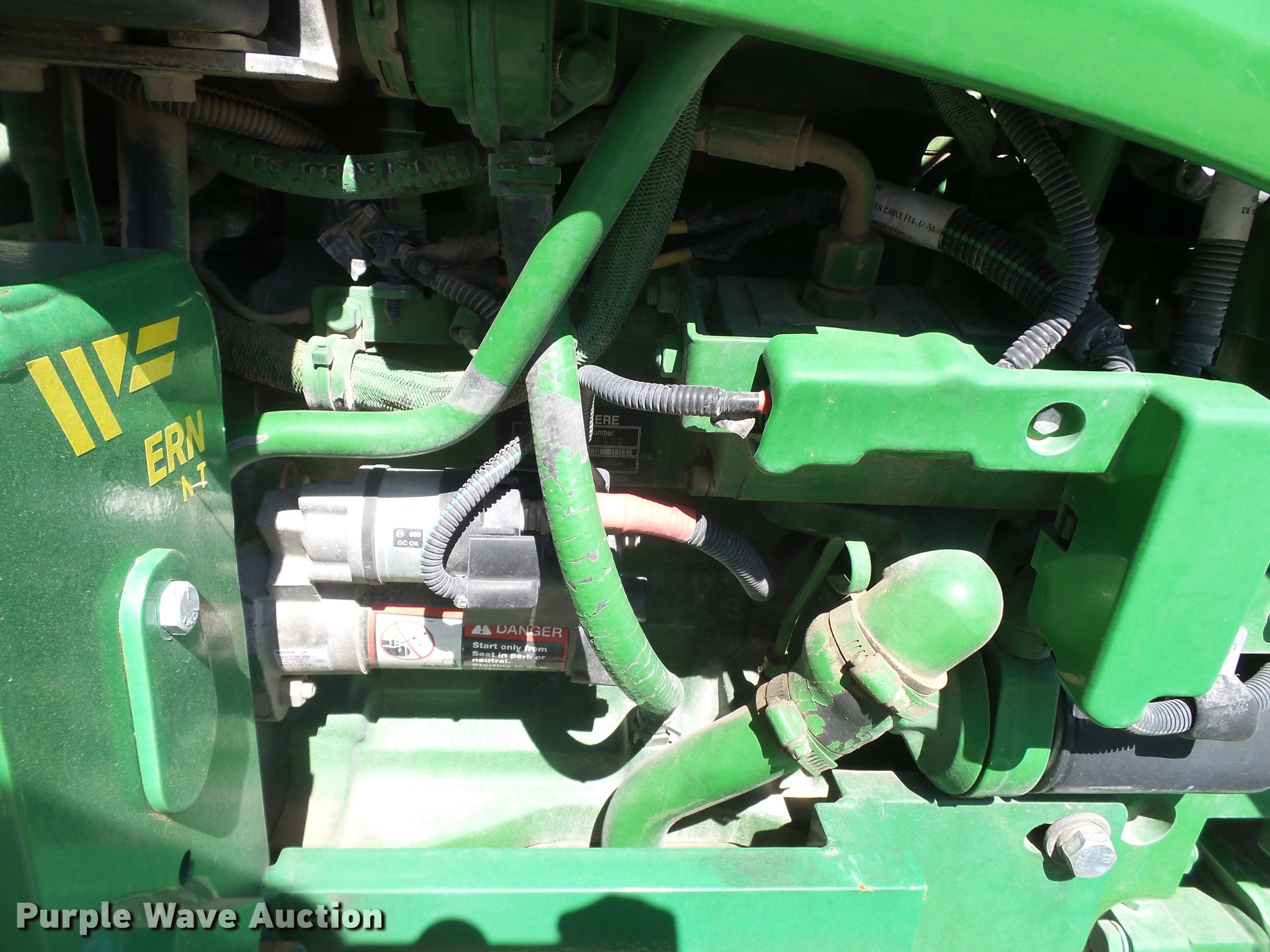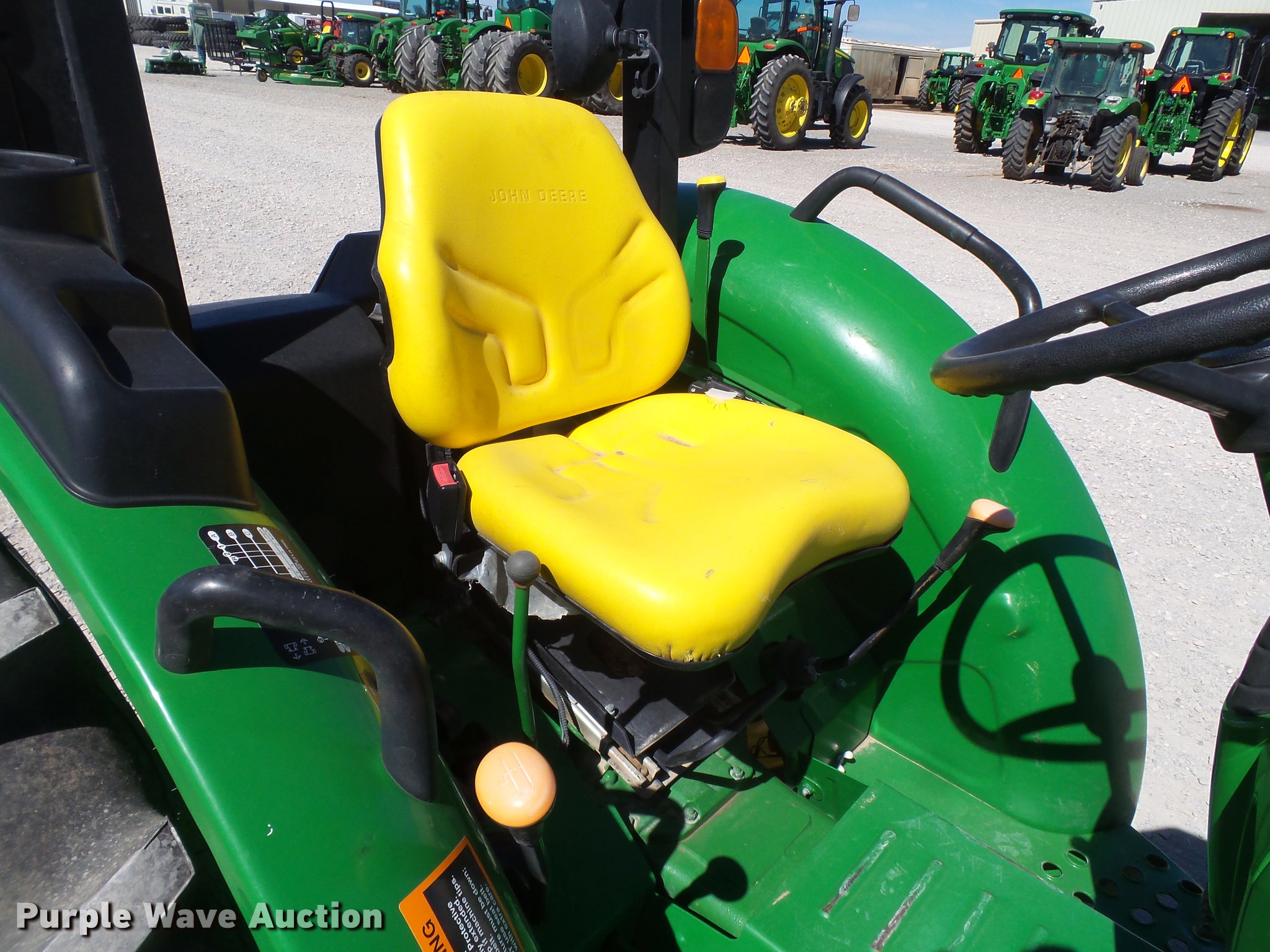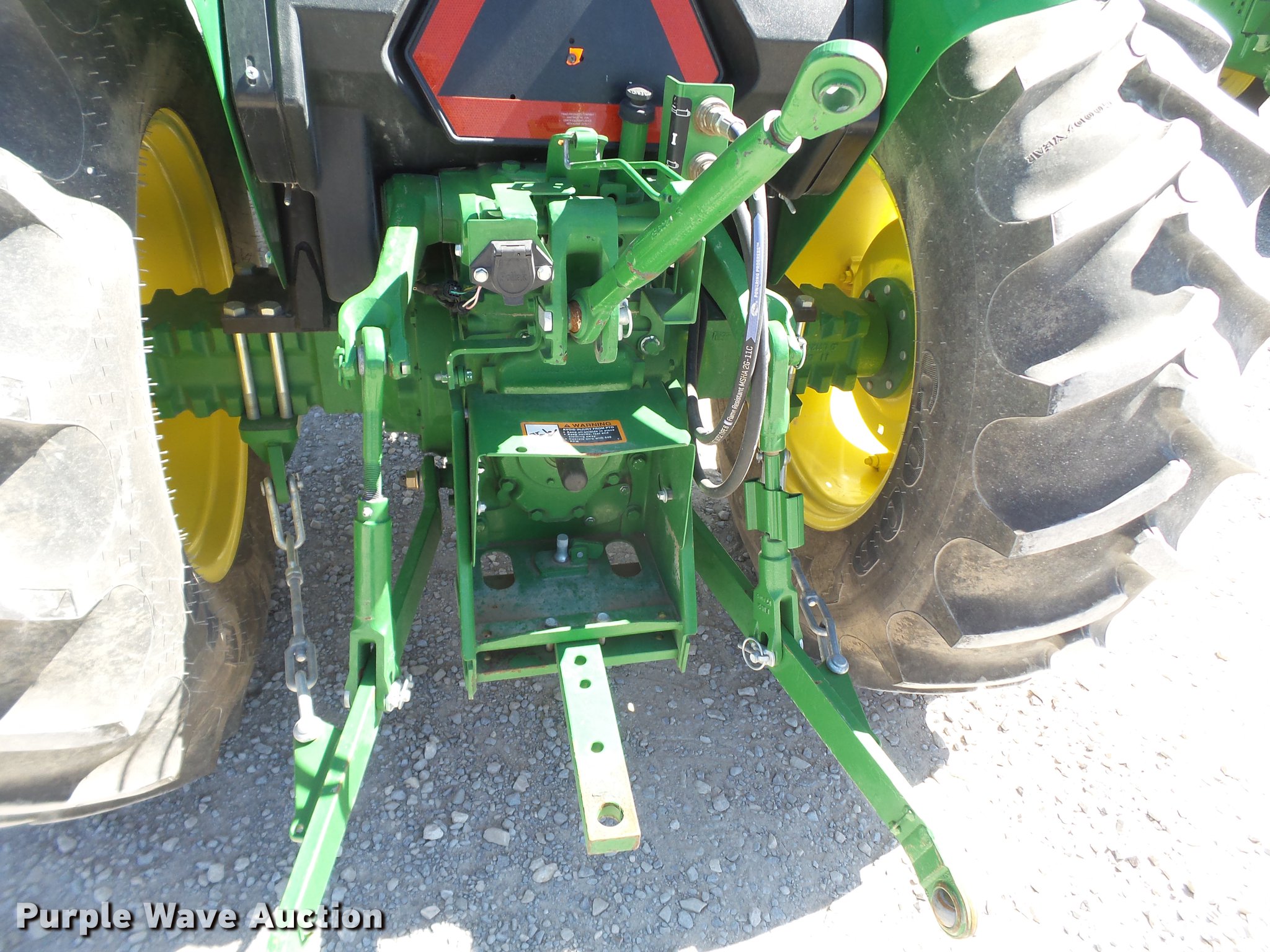 Purple Wave is selling a used Tractor in Texas. This item is a 2016 John Deere 5065E tractor with the following: 1,715 hours on meter, John Deere 3029HPY61 2.9L three cylinder diesel engine, Serial PY3029H076472, Synchro transmission, 9F-3R gears, 60"W x 12"H side blade, Joystick blade controls, Three point, Top link, 540 PTO, Rear hydraulic remote set, 7.50-16 front tires, 16.9-28 rear tires, Serial 1PY5065EHGG101537