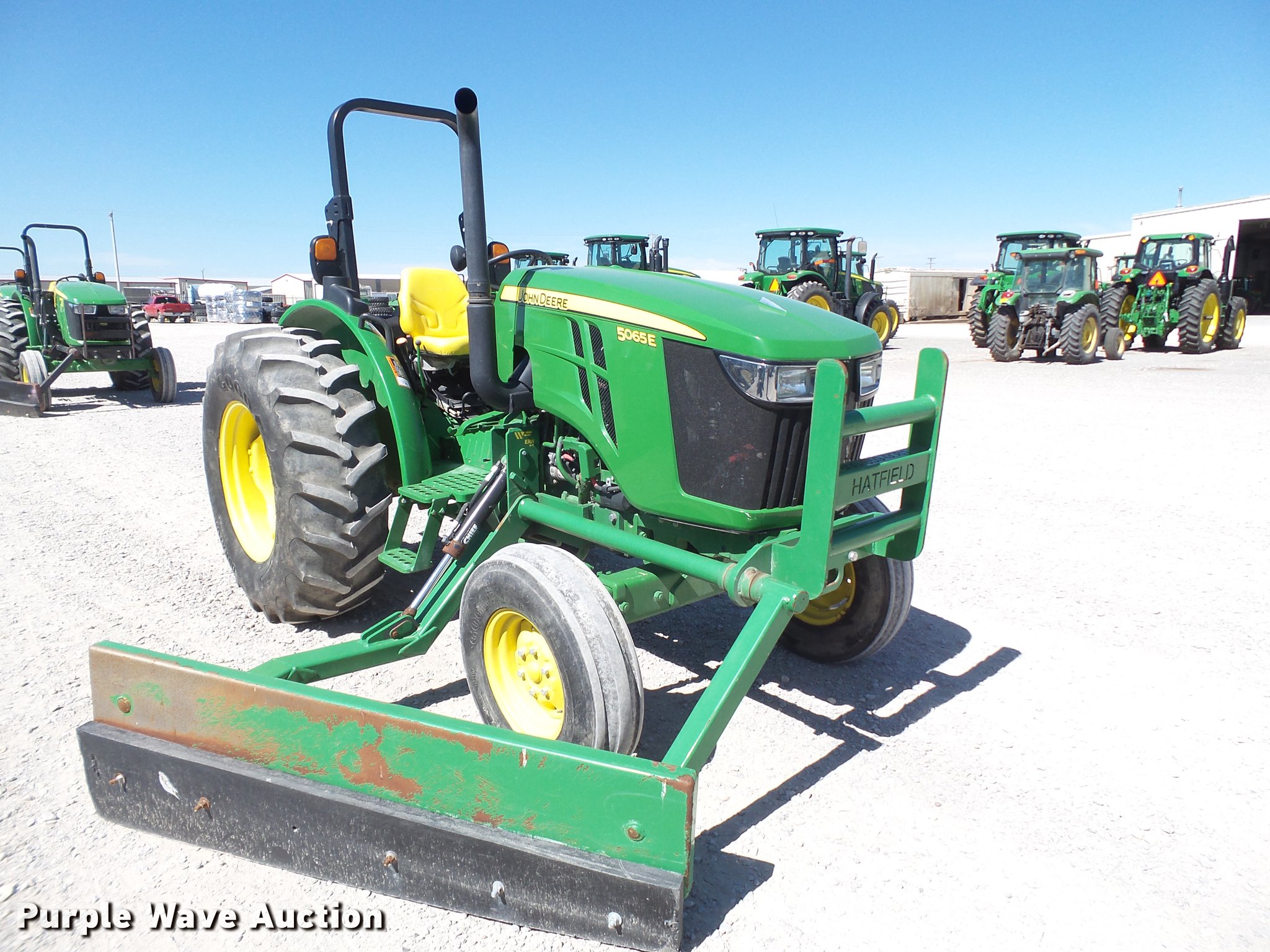 2016 John Deere 5065E tractor. 1,715 hours on meter, John Deere 3029HPY61 2.9L three cylinder diesel engine Serial PY3029H076472, Synchro transmission 9F-3R gears, 60"W x 12"H side blade Joystick blade controls, Three point Top link, 540 PTO, Rear hydraulic remote set, 7.50-16 front tires, 16.9-28 rear tires, Serial 1PY5065EHGG101537. Western Equipment, LLC. 10800 I-27. Amarillo , TX 79119