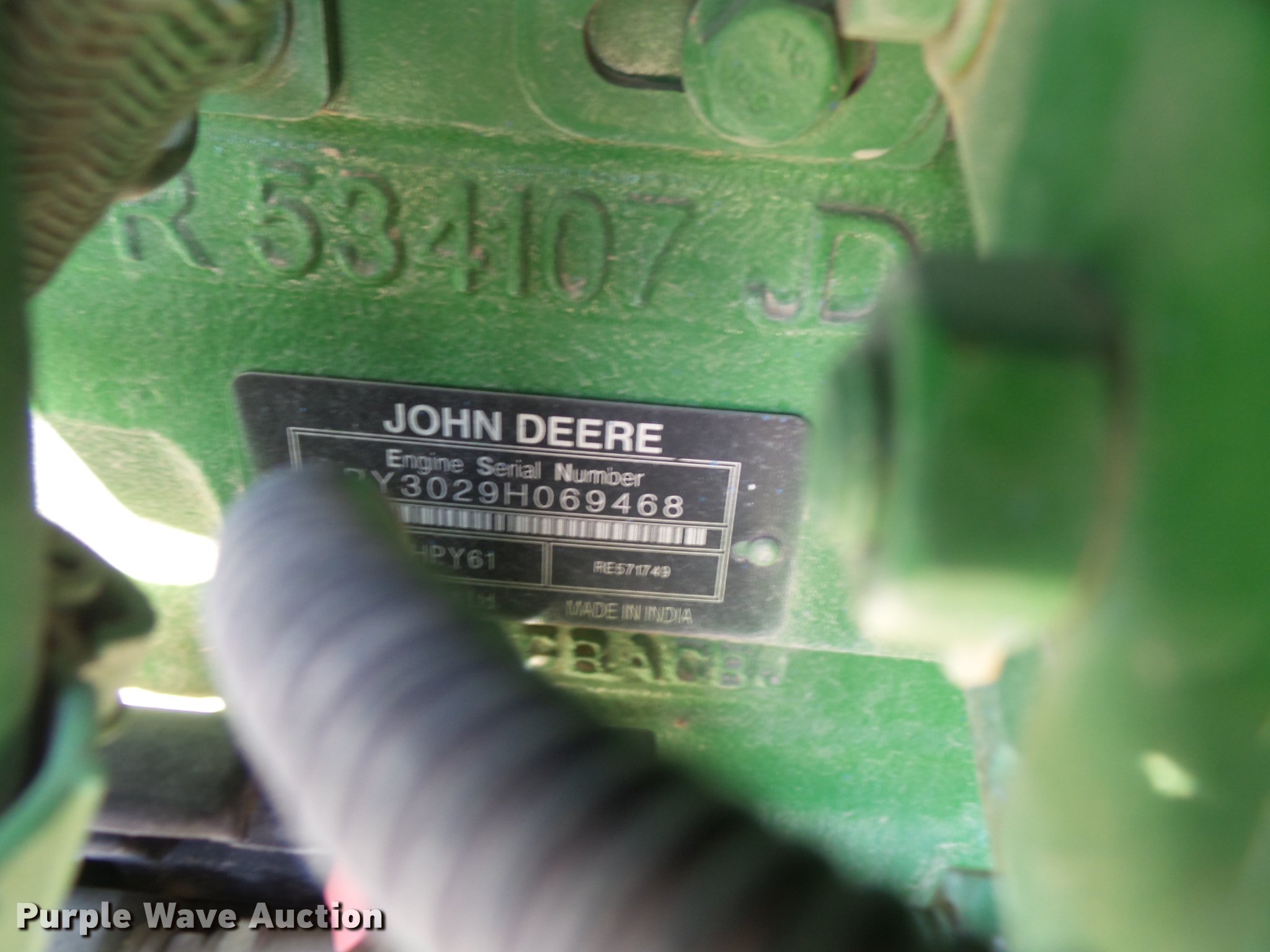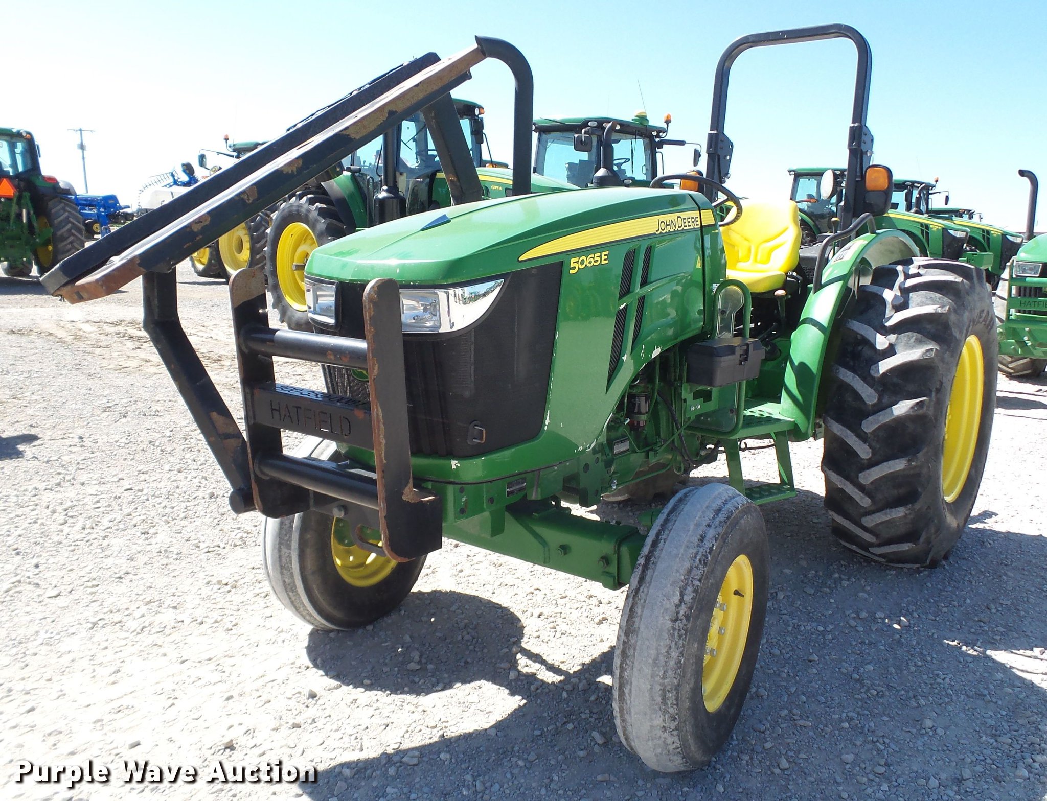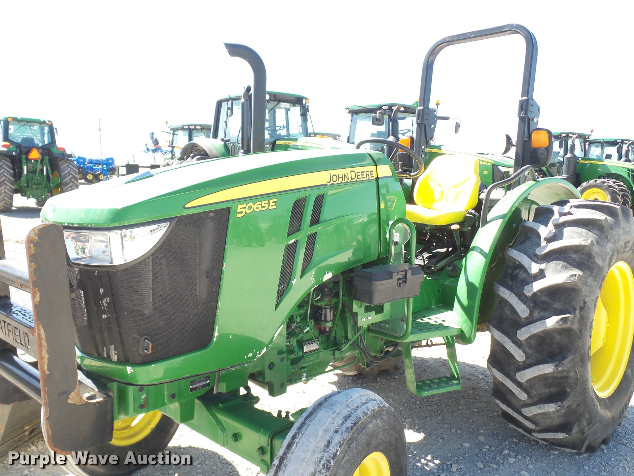 Purple Wave is selling a used Tractor in Texas. This item is a 2016 John Deere 5065E tractor with the following: 1,490 hours on meter, John Deere 3029HPY61 2.9L three cylinder diesel engine, Serial PY3029H069468, Synchro transmission, 9F-3R gears, 60"W x 12"H side blade, Joystick blade controls, Three point, Top link, 540 PTO, Rear hydraulic remote set, 7.50-16 front tires, 16.9-28 rear tires, Serial 1PY5065EPGG100992