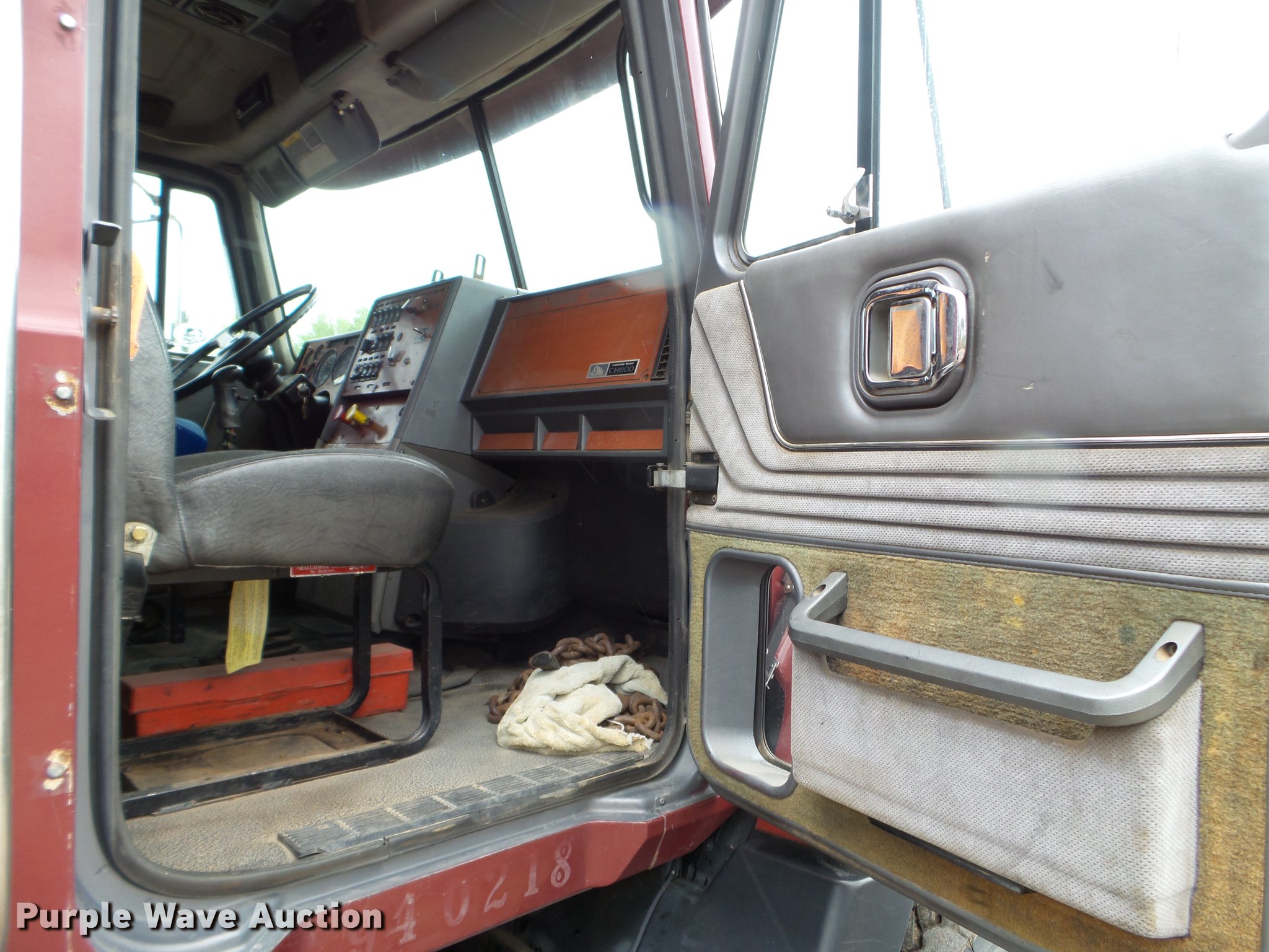 1994 Mack CH613 dump truck. 662,232 miles on odometer, 35,424 hours on meter, Mack 12.0L L6 diesel engine, Eaton Fuler 13 speed manual transmission, Inter-axle differential lock, Tandem axle, AC and heat, Cruise, Power windows, Heated mirrors, Air ride cab, PTO, Hard OX steel dump bed 18'L x 98"W , Single ram hoist, Air operated end gate, Dual fuel tanks, Double frame, Camelback suspension, Air brakes, Engine brake, 385/65R22.5 front tires, 11R24.5 rear tires. Minnesota title. 1M1AA14Y6RW035515. Leaf Construction. 3024 Hwy 95 NE. Cambridge, MN 55008