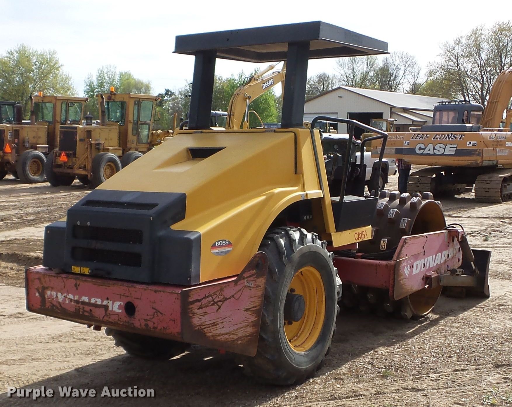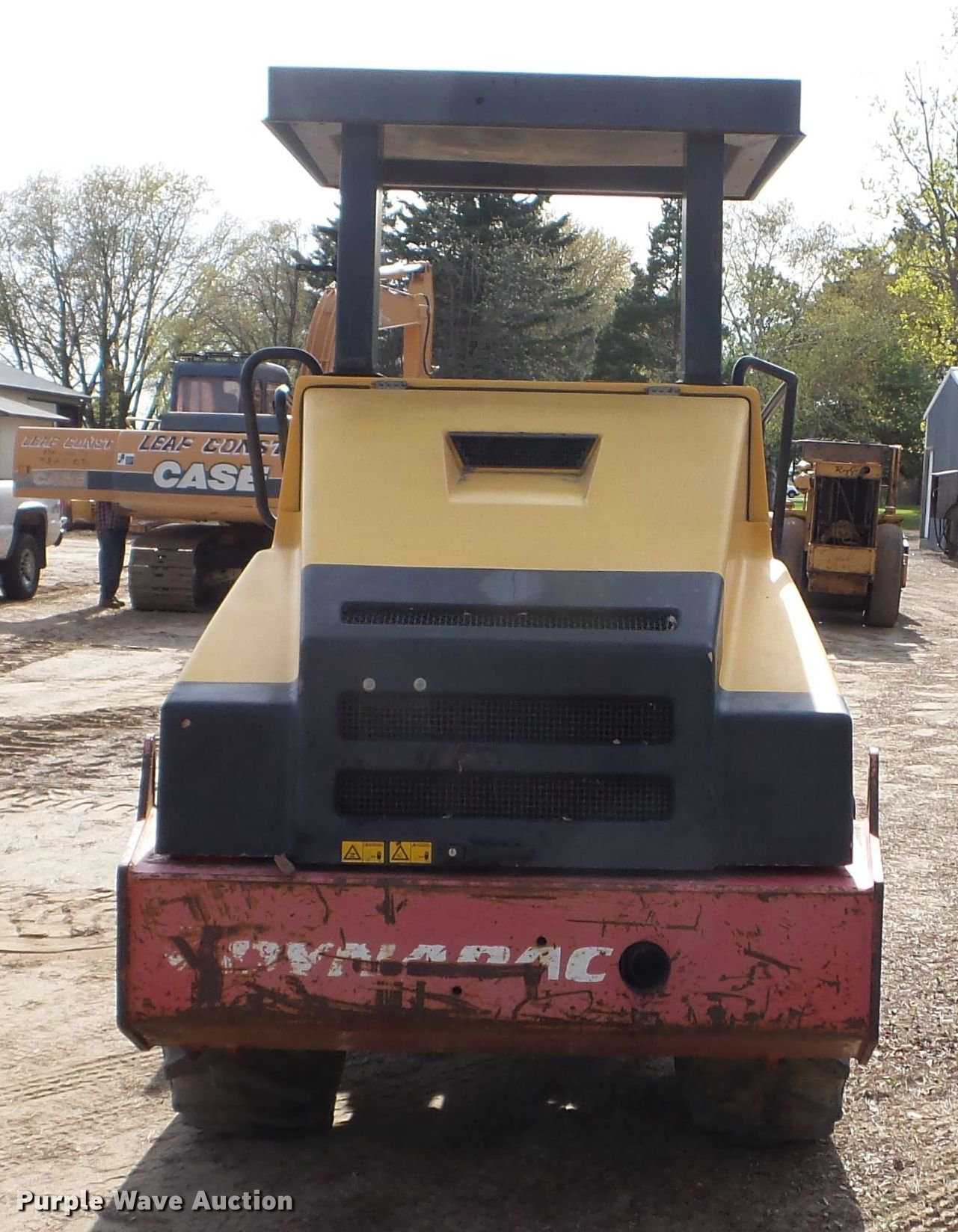 1998 Dynapac CA152PD single drum vibratory roller. 2,018 hours on meter, Cummins B3.9C four cylinder diesel engine Serial 21300133, Two speed hydrostatic transmission, Canopy, Vandal cover, 66"W x 48" diameter padfoot drum Single two speed vibratory system, Front drum scraper, 88"W front blade, 14.9-24 tires, Seat will be replaced prior to auction, Serial 9542803. Leaf Construction. 3024 Hwy 95 NE. Cambridge, MN 55008