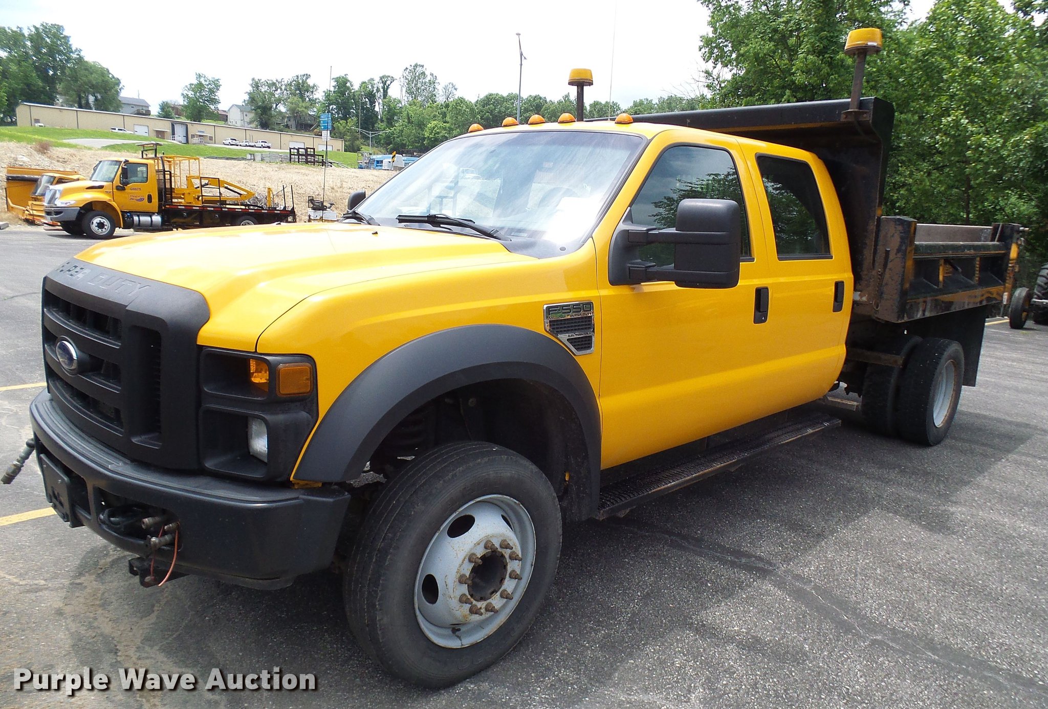 Purple Wave is selling a used Construction Dump Truck in Missouri. This item is a 2008 Ford F550 Super Duty Crew Cab dump truck with the following: 186,770 miles on odometer, 6.8L V10 SOHC 30V gas engine, Automatic transmission, AC and heat, Cruise, Knapheide 9'L x 8'W dump bed, Single ram hoist, Hydraulic brakes, Spring suspension, 225/70R19.5 tires, MODOT ID 7937