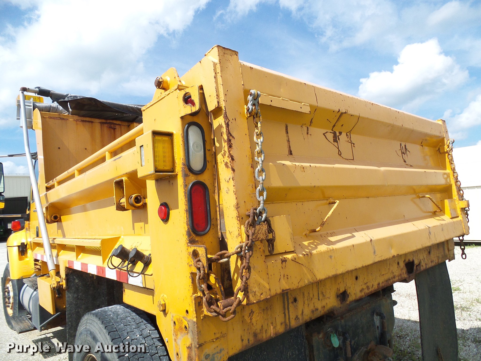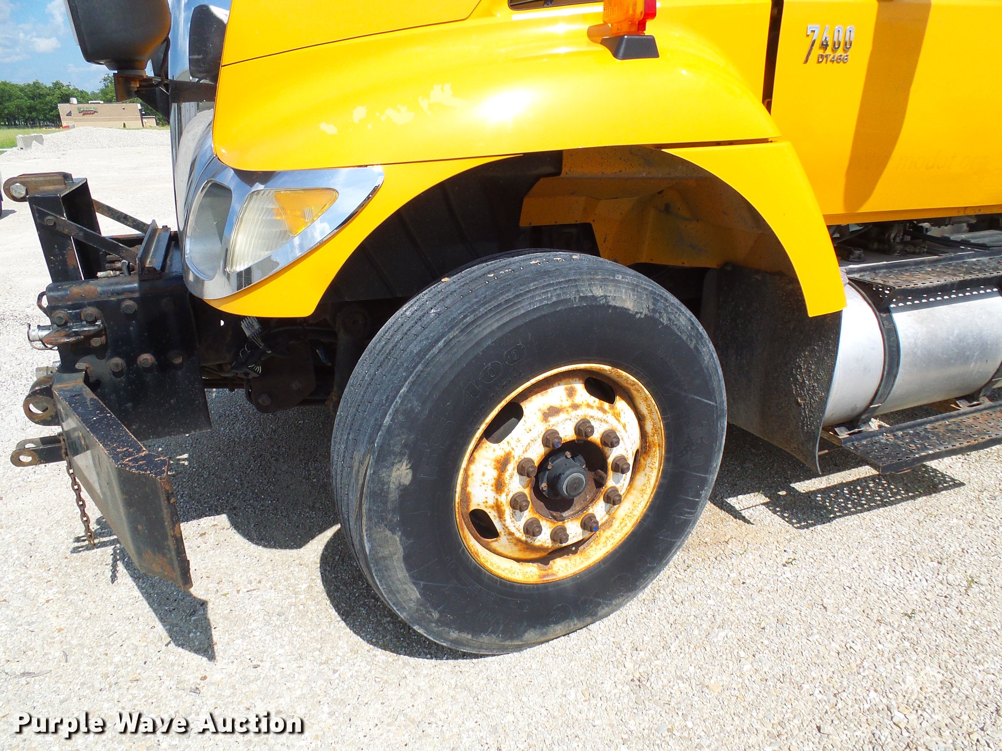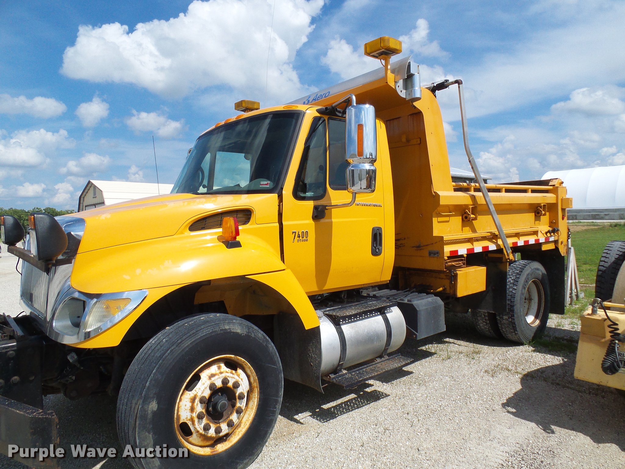 Purple Wave is selling a used Construction Dump Truck in Missouri. This item is a 2006 International 7400 dump truck with the following: 175,864 miles on odometer, 10,570 hours on meter, International DT466 7.6L L6 diesel engine, Allison automatic transmission, Single axle, AC and heat, Cruise, Power windows, Heated mirrors, Wheeler steel dump bed, 10'L x 8'W, 26" side height, Single ram hoist, Air operated end gate, Roll tarp, Spring suspension, Air brakes, 315/80R22.5 front tires, 11R22.5 rear tires, GVWR 35,000 lbs, Non-operational unit, Engine issues, Crank broken,, No batteries, MODOT ID 7521