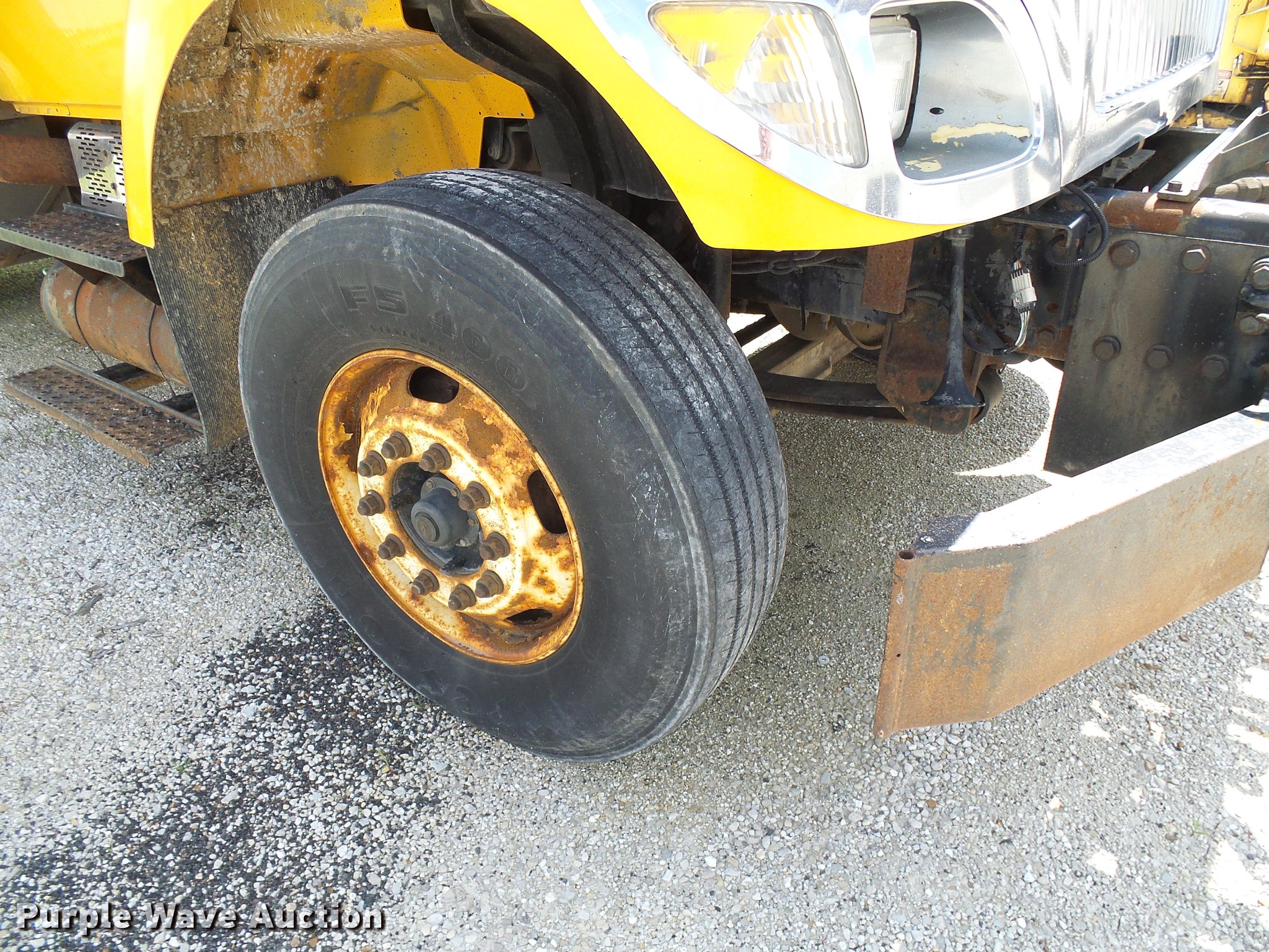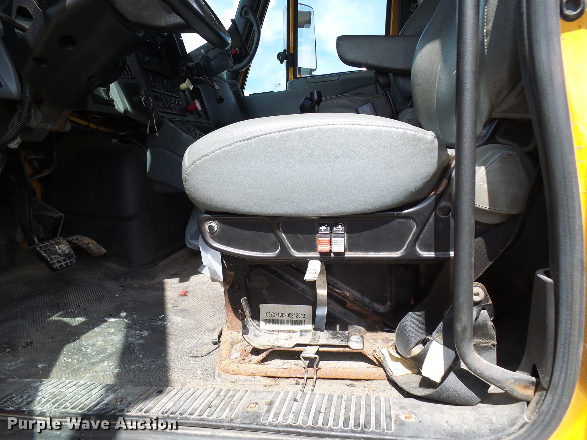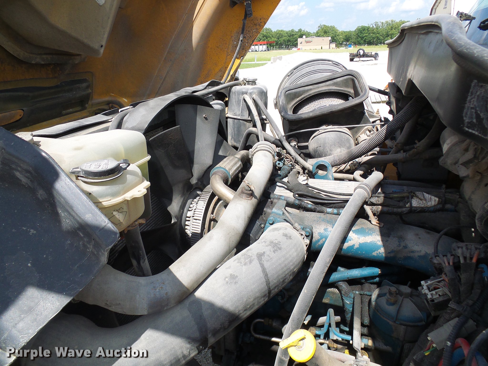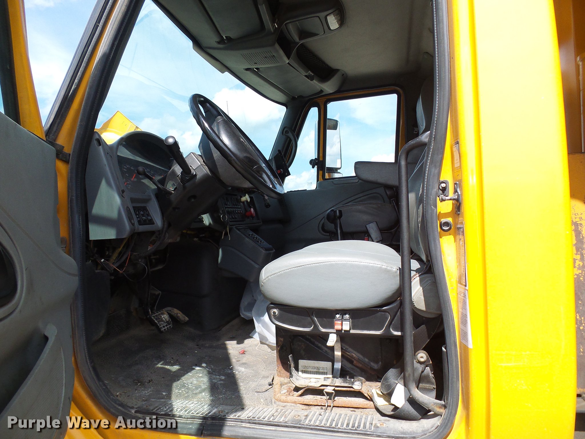 Purple Wave is selling a used Construction Dump Truck in Missouri. This item is a 2006 International 7400 dump truck with the following: 175,864 miles on odometer, 10,570 hours on meter, International DT466 7.6L L6 diesel engine, Allison automatic transmission, Single axle, AC and heat, Cruise, Power windows, Heated mirrors, Wheeler steel dump bed, 10'L x 8'W, 26" side height, Single ram hoist, Air operated end gate, Roll tarp, Spring suspension, Air brakes, 315/80R22.5 front tires, 11R22.5 rear tires, GVWR 35,000 lbs, Non-operational unit, Engine issues, Crank broken,, No batteries, MODOT ID 7521