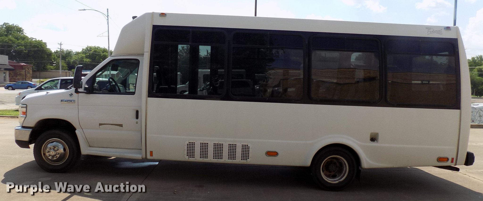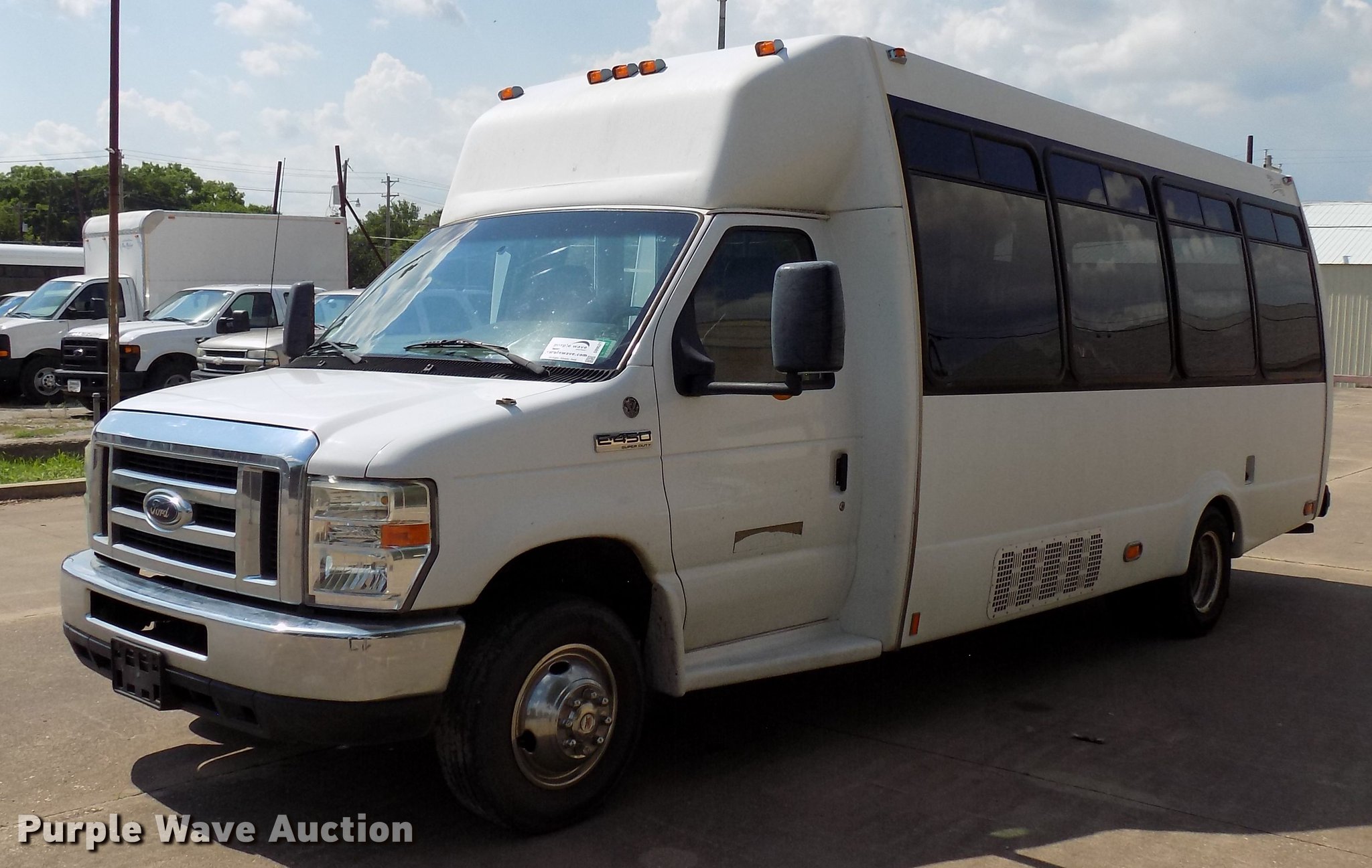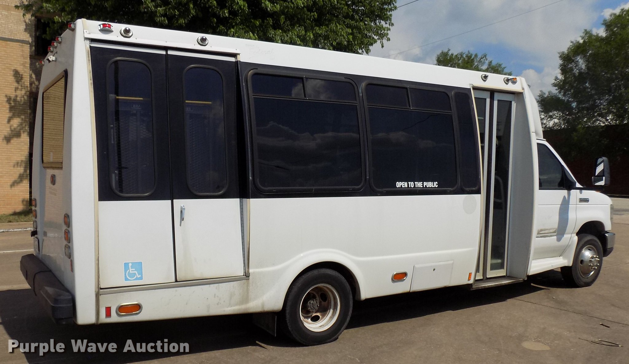 Purple Wave is selling a used Bus in Oklahoma. This item is a 2009 Ford Econoline E450 shuttle bus with the following: 174,579 miles on odometer, 6.8L V10 SOHC 20V gas engine, Automatic transmission, Single axle, AC and heat, 14 passenger capacity, (14) adult seats, Wheelchair lift, Spring suspension, Hydraulic brakes, 225/75R16 tires, Unknown operating condition of wheelchair lift