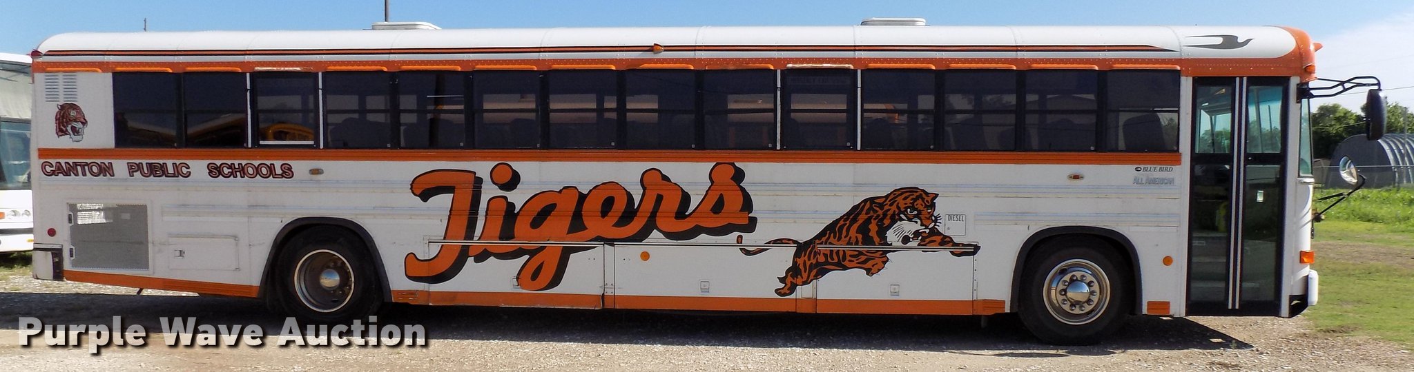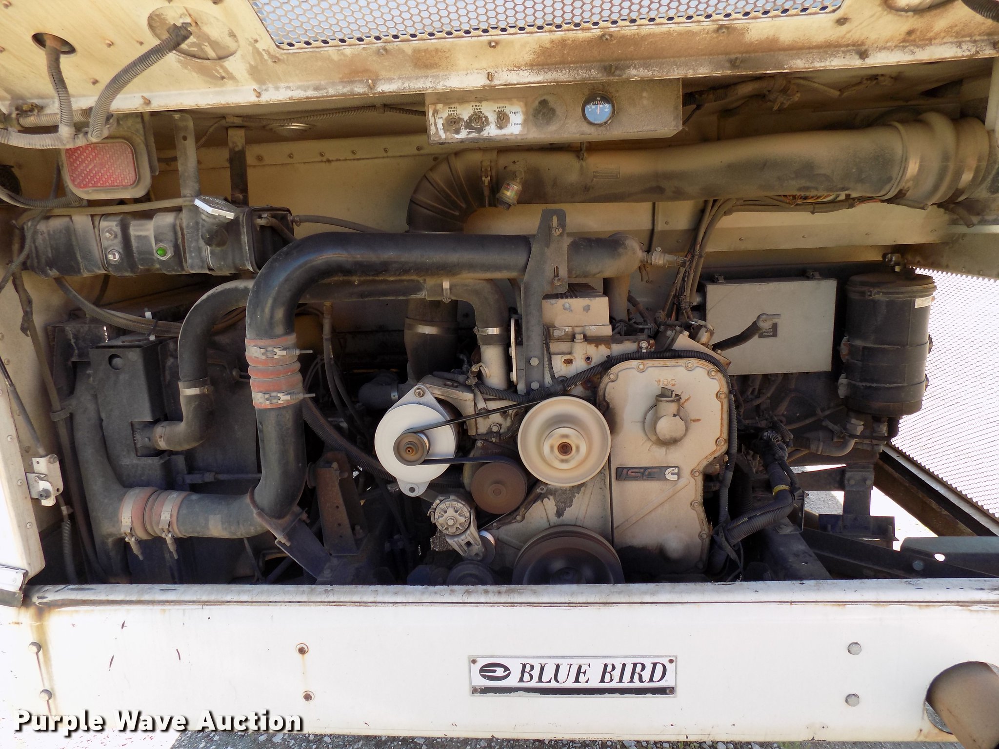 Purple Wave is selling a used Bus in Oklahoma. This item is a 2003 Blue Bird All American school bus with the following: Unknown miles on odometer, Cummins ISC 8.3L L6 diesel engine, Serial 46238435, Automatic transmission, Single axle, AC and heat, Spring suspension, Air brakes, 11R22.5 tires, Dash cluster will not illuminate, Unit over heats