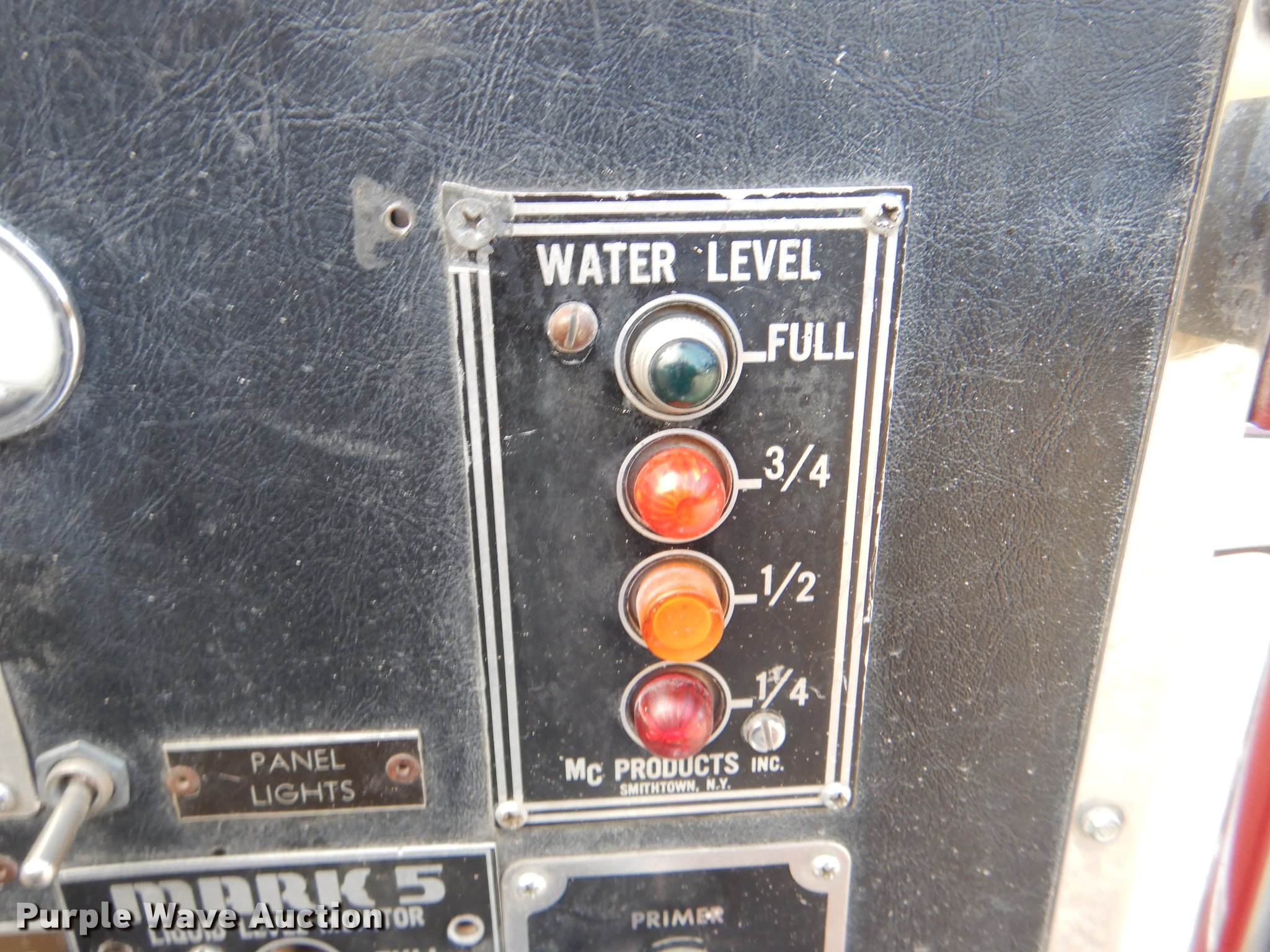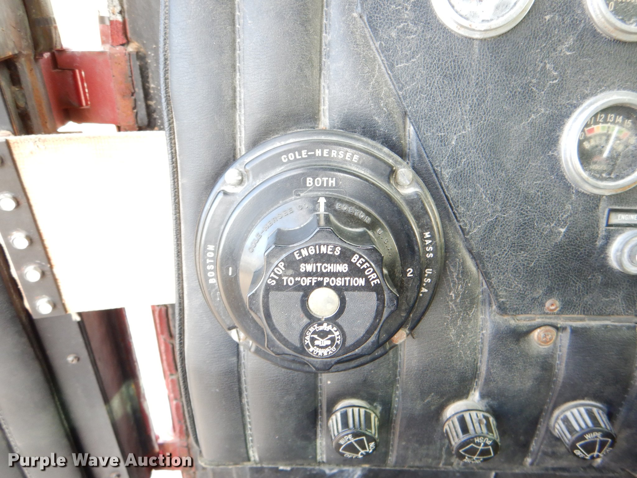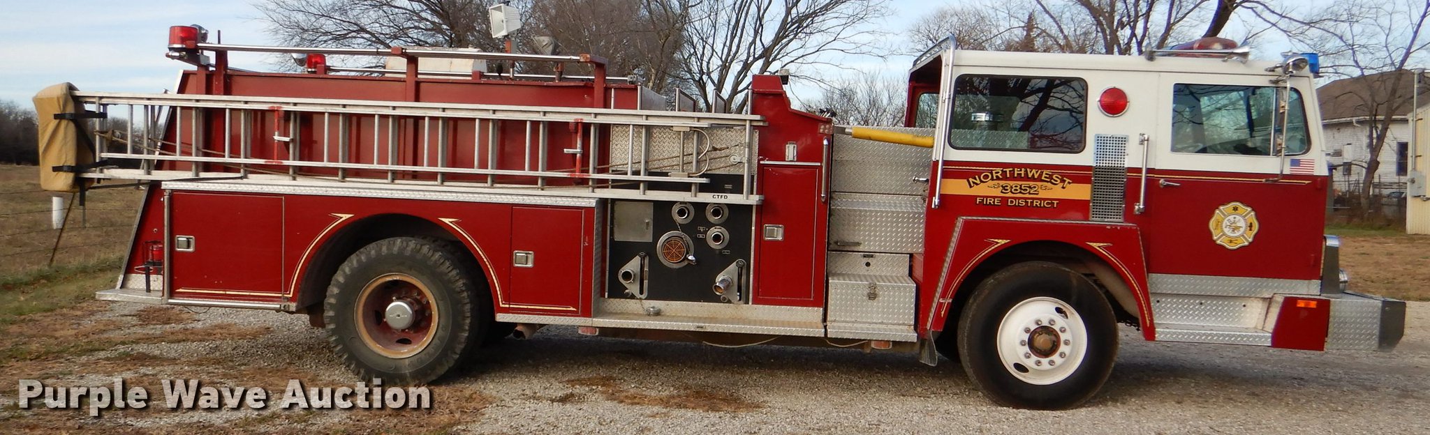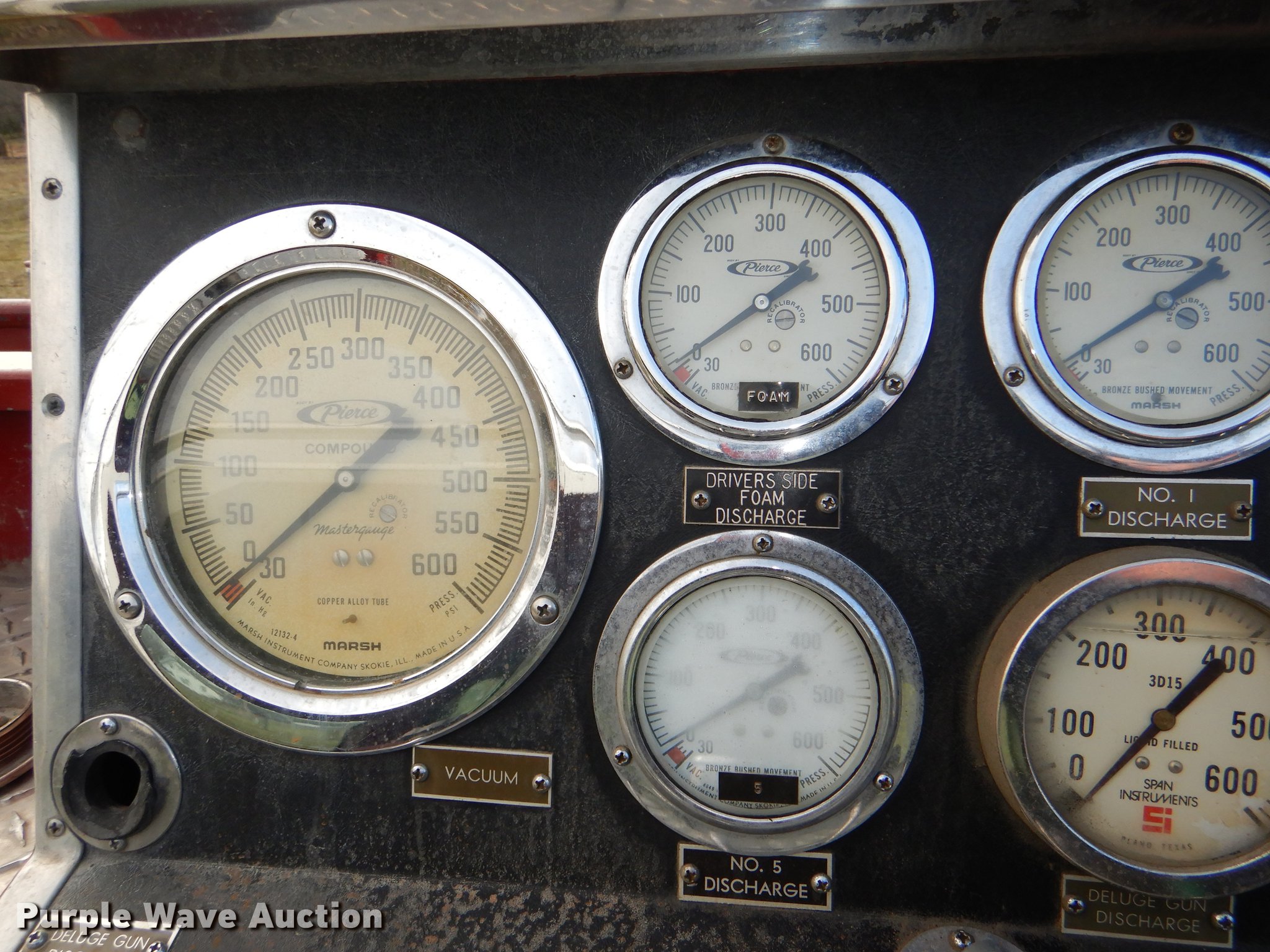 Purple Wave is selling a used Fire Truck or Emergency Vehicle in Kansas. This item is a 1976 Pierce Hendrickson FTCO-2070 fire truck with the following: 38,196 miles on odometer, 1,370 hours on meter, 7.1L V8 diesel engine, 350 HP, Serial 8VA305138, Allison automatic transmission, Single axle, Heat, Emergency lights and sirens, Firecom 3000C intercom system, Waterous electric pump shift switch, 1,500 gallon per minute water gun capacity, Spring suspension, Air brakes, 11R22.5 front tires, 11.00-20 rear tires, GVWR 33,940 lbs, In cab air leak issue, No water gun