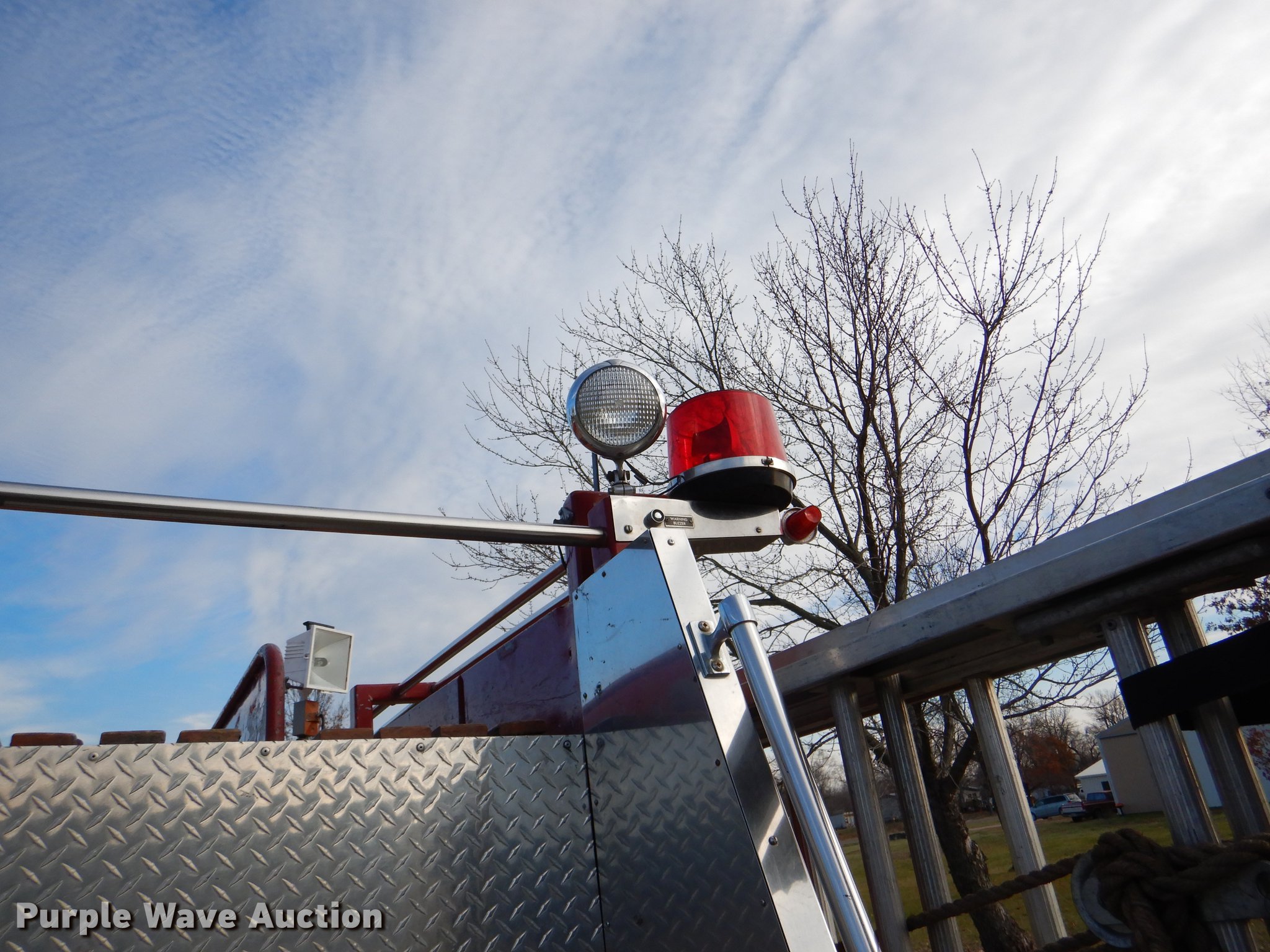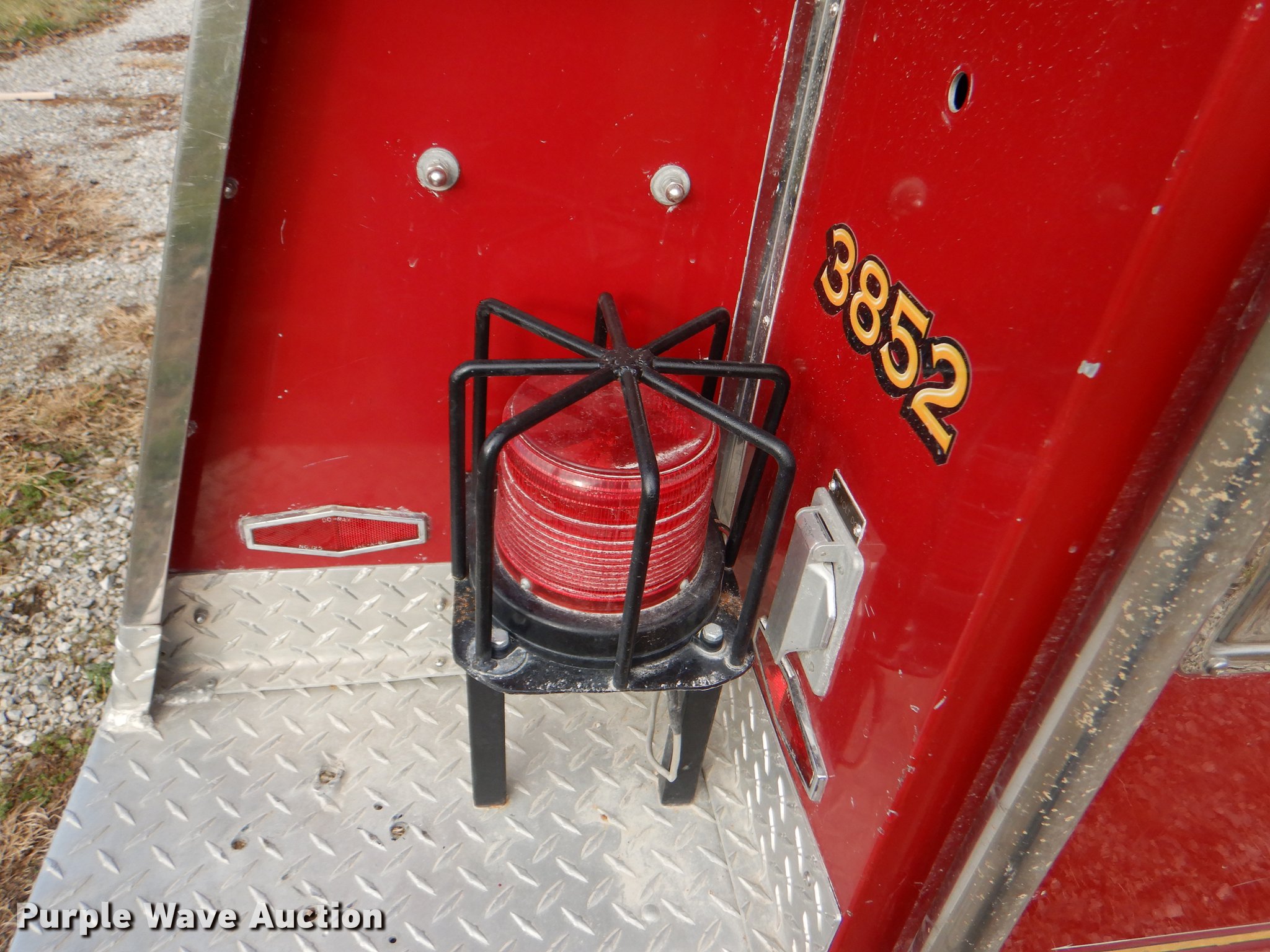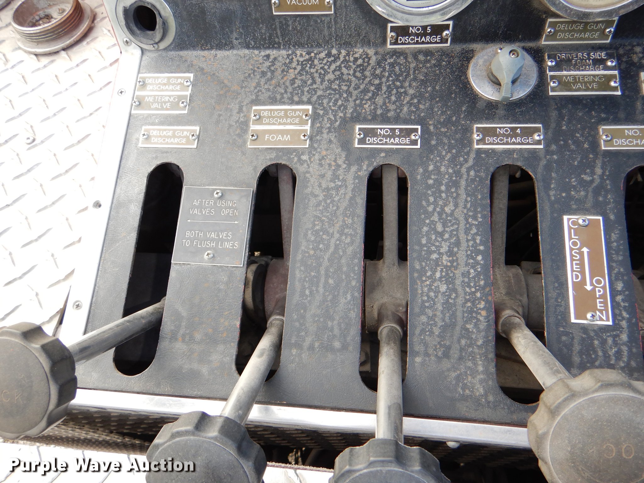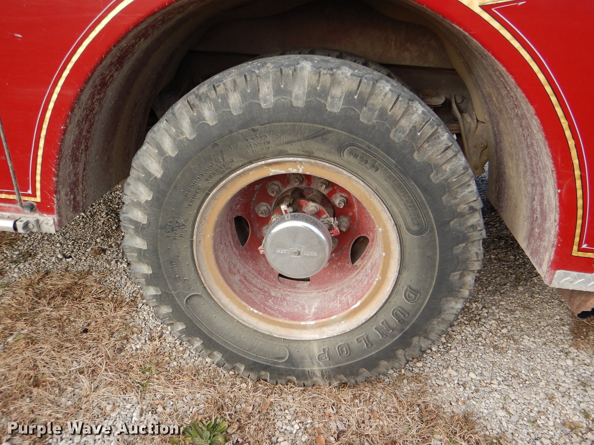 Purple Wave is selling a used Fire Truck or Emergency Vehicle in Kansas. This item is a 1976 Pierce Hendrickson FTCO-2070 fire truck with the following: 38,196 miles on odometer, 1,370 hours on meter, 7.1L V8 diesel engine, 350 HP, Serial 8VA305138, Allison automatic transmission, Single axle, Heat, Emergency lights and sirens, Firecom 3000C intercom system, Waterous electric pump shift switch, 1,500 gallon per minute water gun capacity, Spring suspension, Air brakes, 11R22.5 front tires, 11.00-20 rear tires, GVWR 33,940 lbs, In cab air leak issue, No water gun
