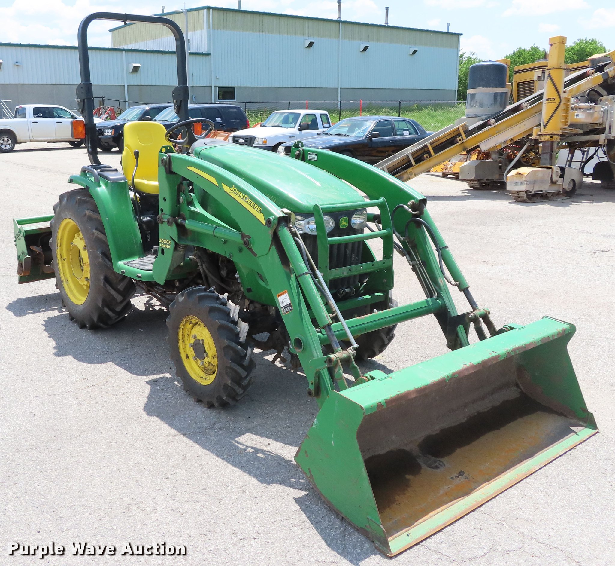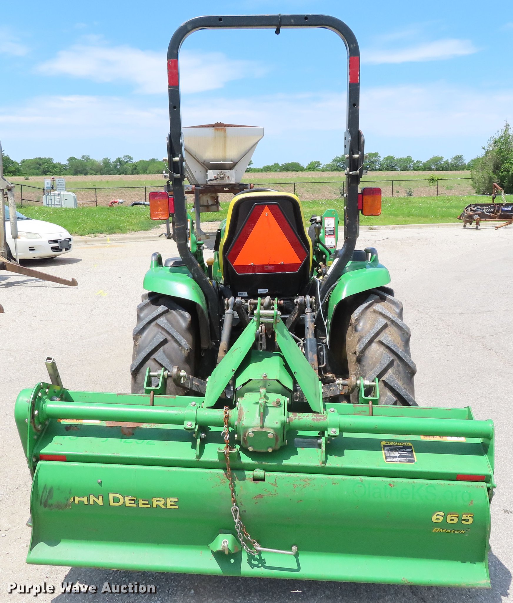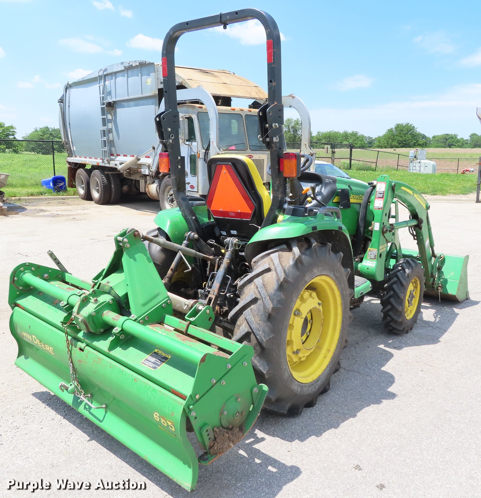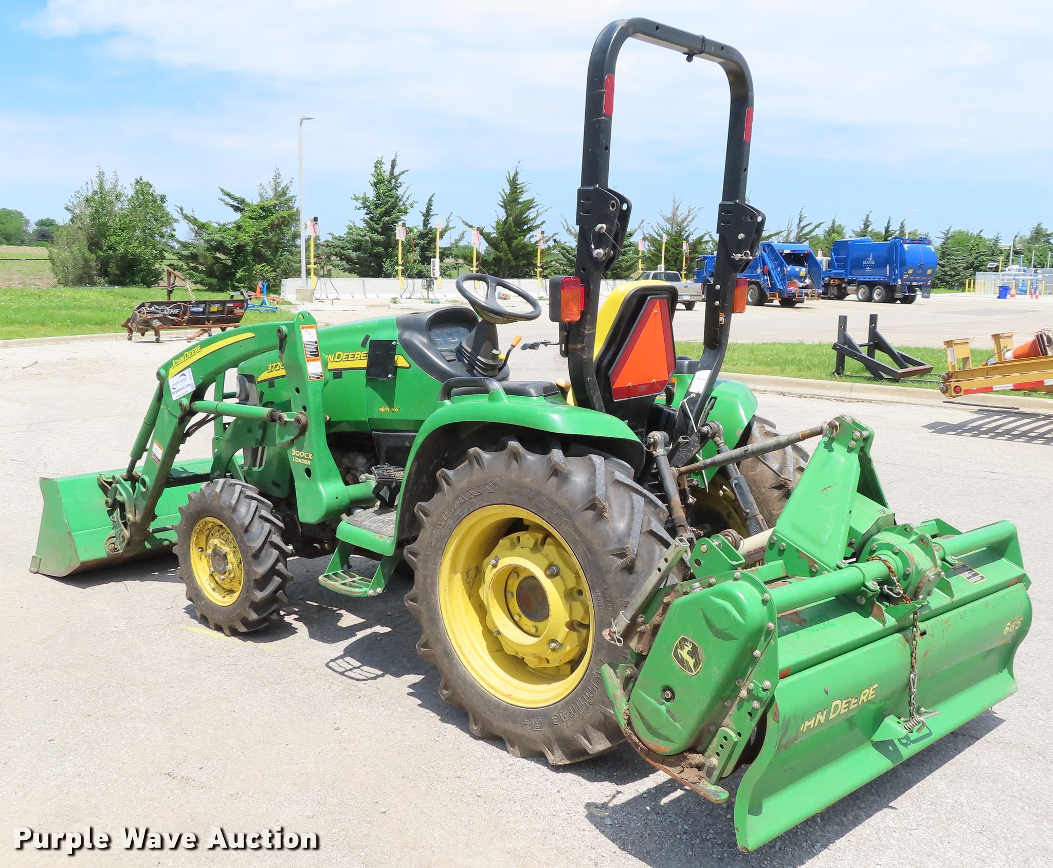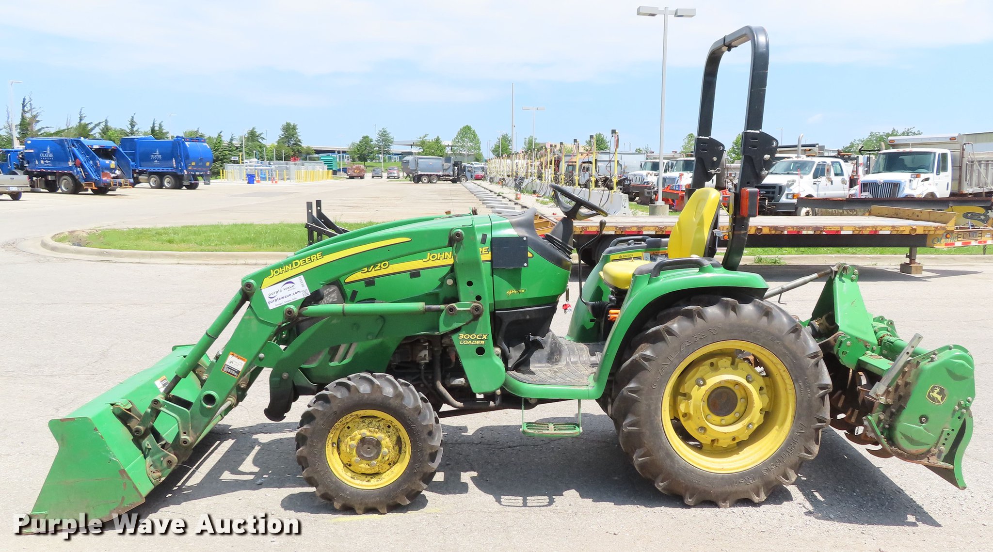 Purple Wave is selling a used Tractor in Kansas. This item is a 2006 John Deere 3720 MFWD tractor with the following: 3,067 hours on meter, Yanmar 1.4L three cylinder diesel engine, Hydrostatic transmission, 3F-3R gears, John Deere 300CX loader, 62"W bucket, Joystick controls, Three point, Top link, 540 PTO, John Deere 665 tiller, 65"W, 540 PTO, Three point, Serial LV0665A140031, 7-14 front tires, 11.2-24 rear tires, Serial LV3720H280758
