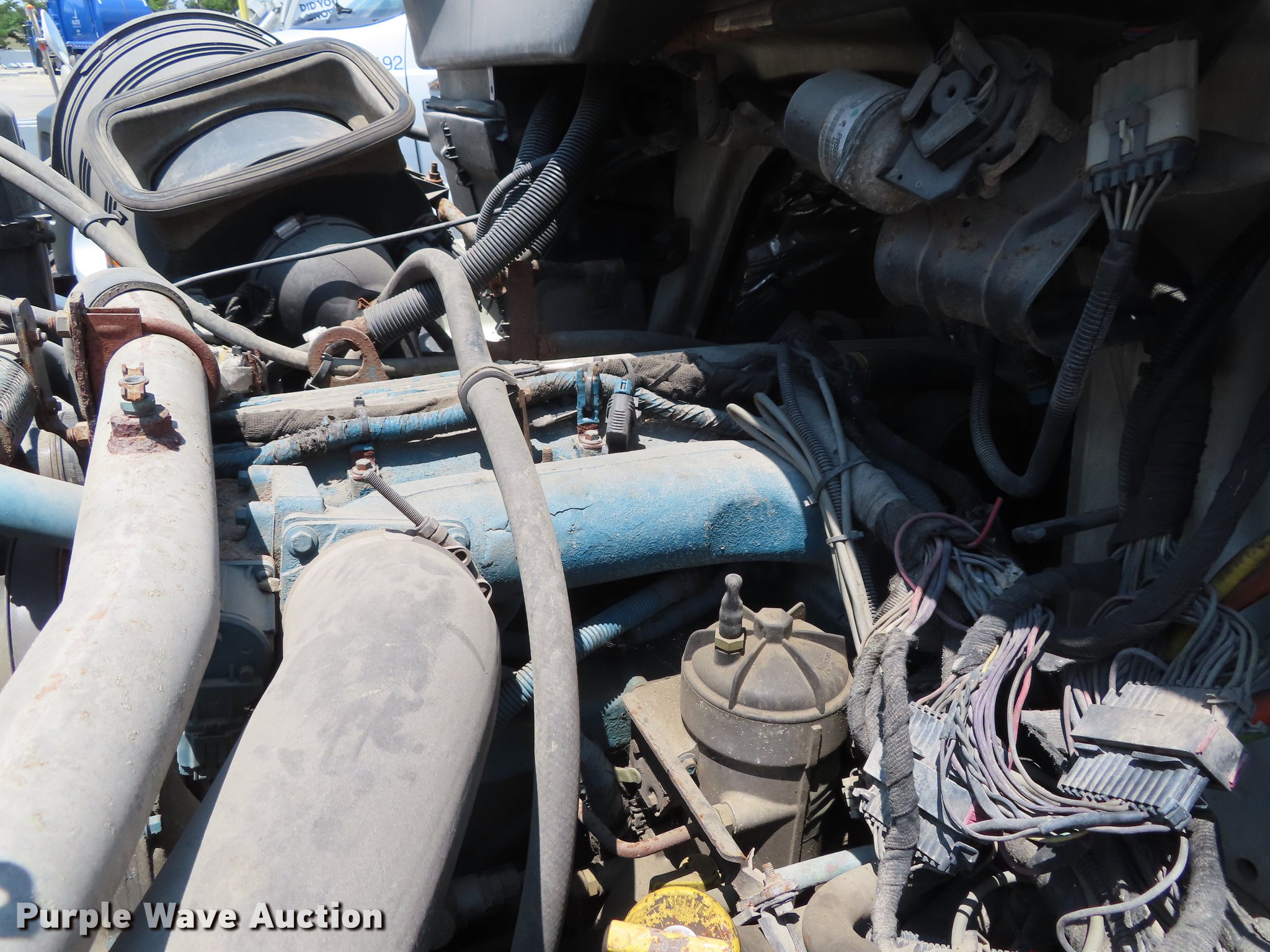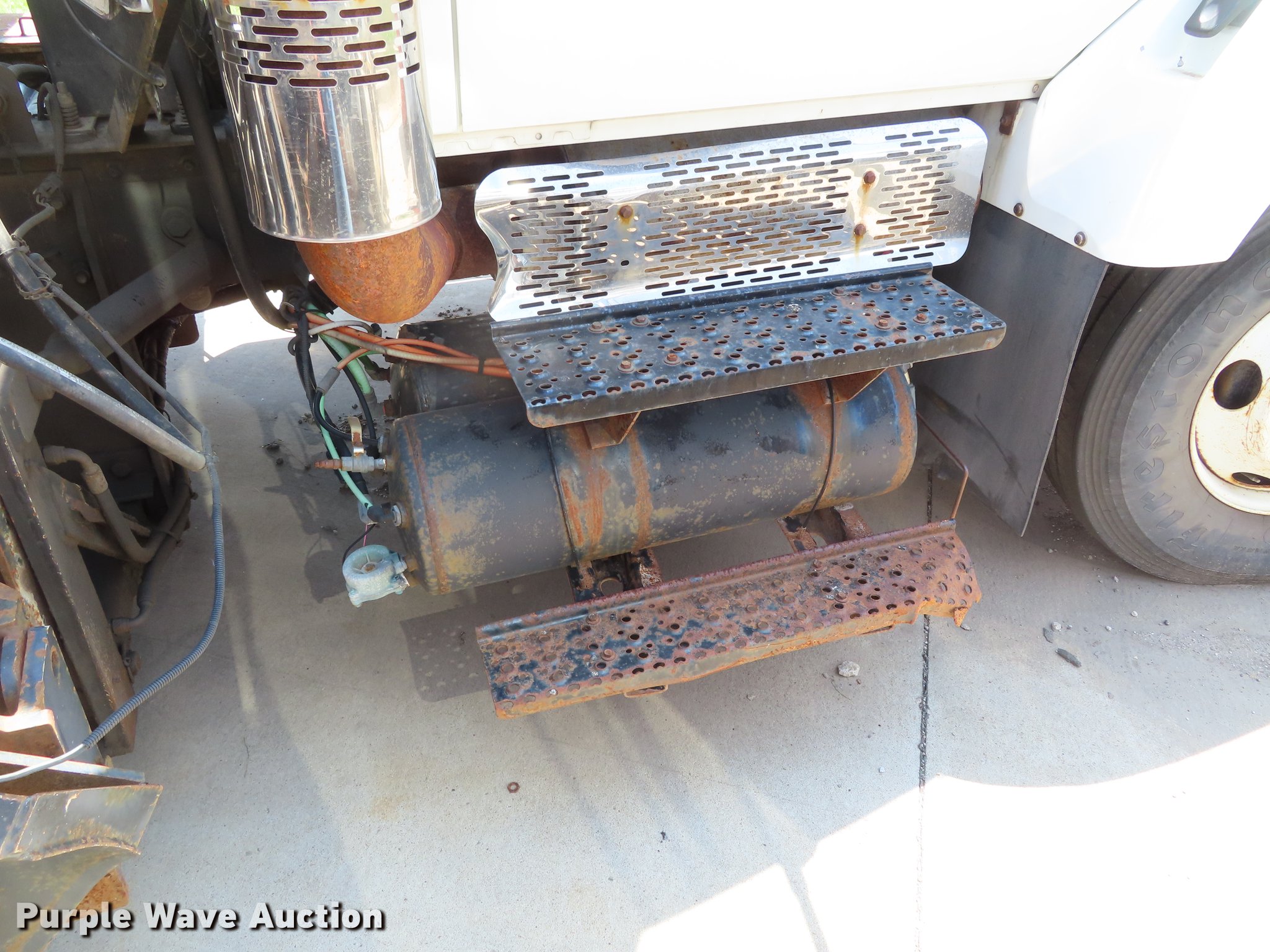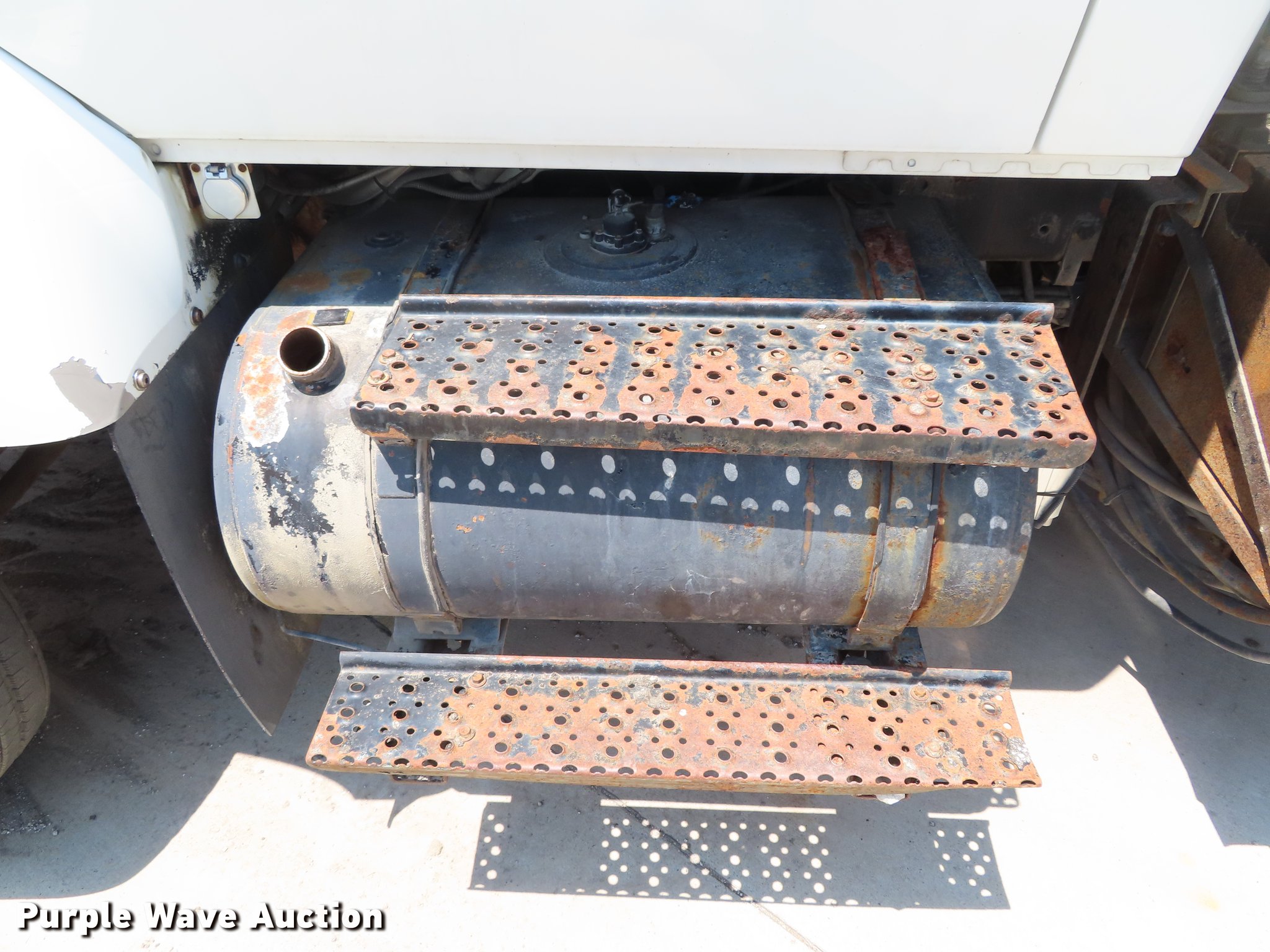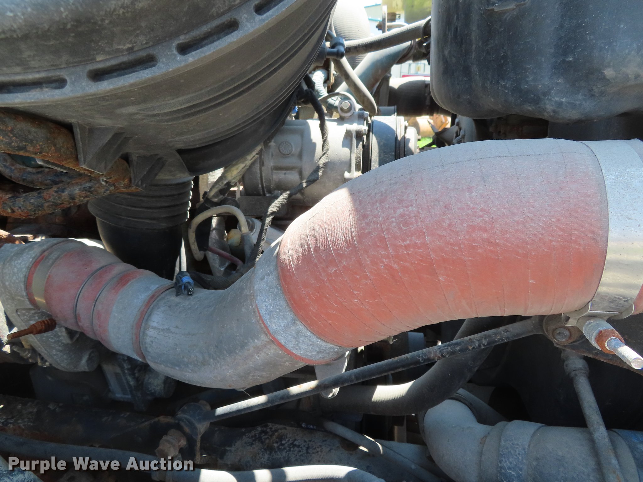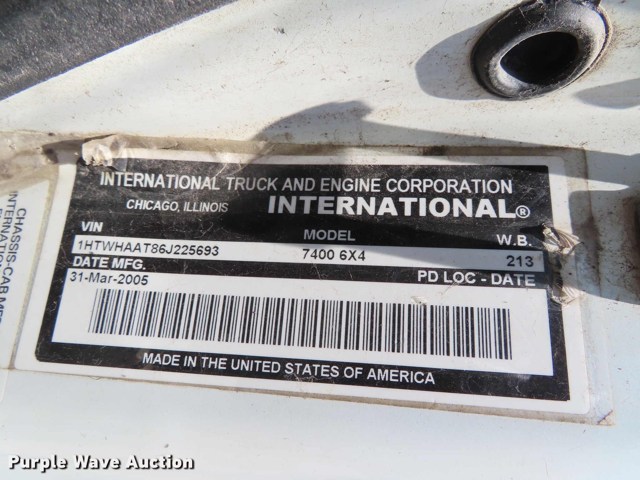 Purple Wave is selling a used Construction Dump Truck in Kansas. This item is a 2006 International 7400 dump truck with the following: 99,504 miles on odometer, 10,882 hours on meter, International DT466 7.6L L6 diesel engine, Allison automatic transmission, Tandem axle, Inter-axle differential lock, AC and heat, Front mounted PTO, Warren FL650-14 aluminum dump bed, 14'L x 96"W, 40" side height, 7" side board height, 12 to 14 cu. yd. capacity, Roll tarp, Single ram hoist, Air operated end gate, Henke 12'W plow, Henke 8'W wing plow, Spring over walking beam suspension, Air brakes, 315/80R22.5 front tires, 11R22.5 rear tires, GVWR 56,000 lbs, FAWR 16,000 lbs, IAWR 20,000 lbs, RAWR 20,000 lbs, Coolant leak, Possible cylinder head gasket, Drivers mirror missing, No fuel cap, Non-operational unit
