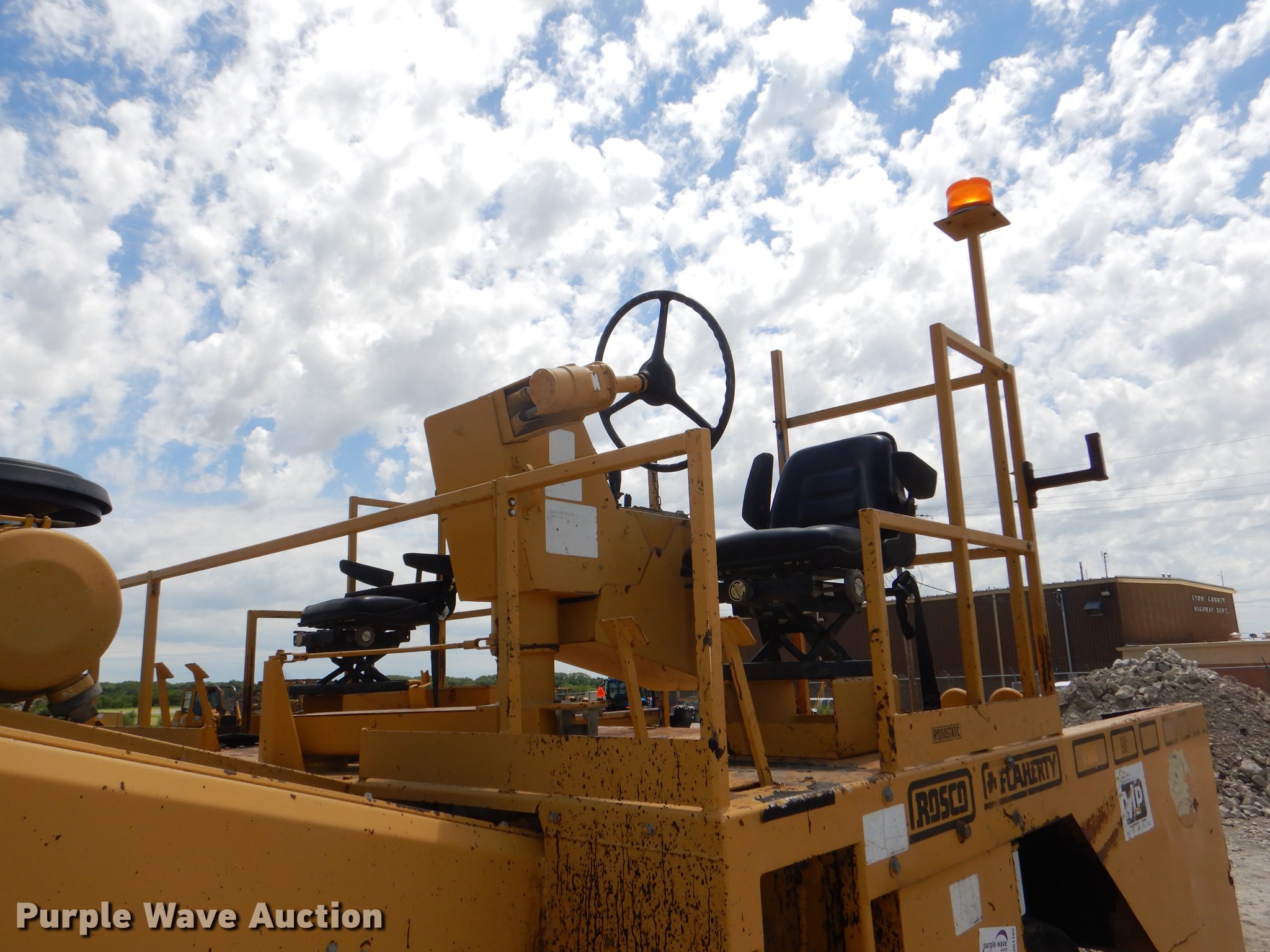 Rosco Flaherty SPRHH chip spreader. 1,307 hours on meter, Cummins diesel engine, Hydrostatic transmission, Dual operator stations Single operation unit, Work lights, Backup alarm, 16'W chip spreader, 18"W material conveyor, Pintle hitch, Westlake 10.00-20 tires, Serial 35621. Emporia, KS 66801