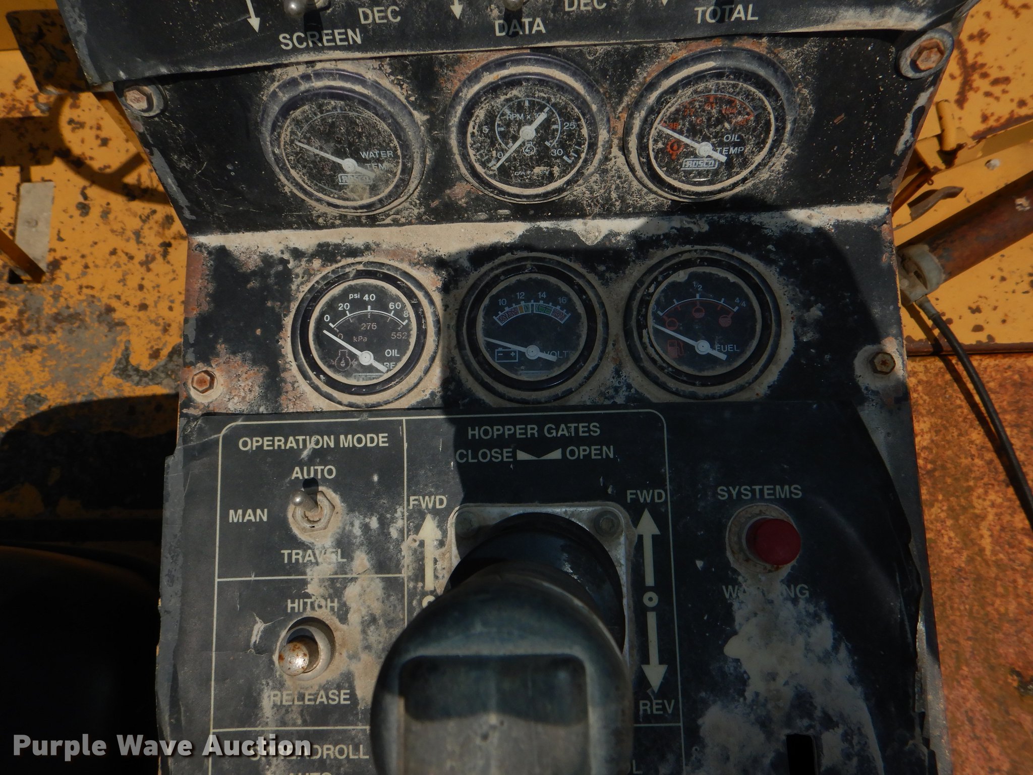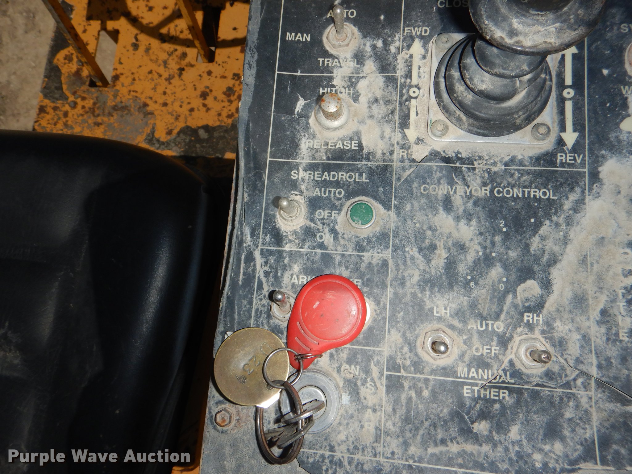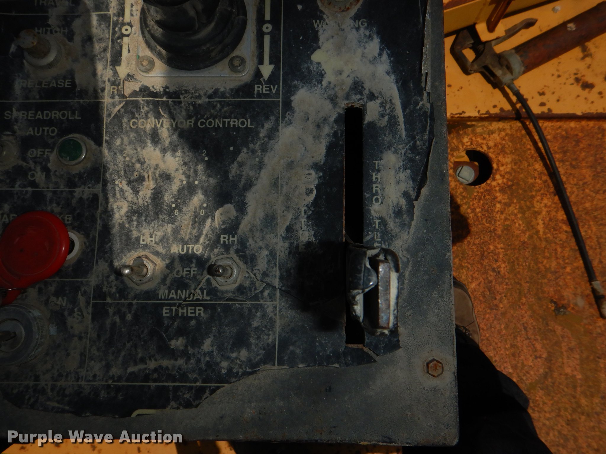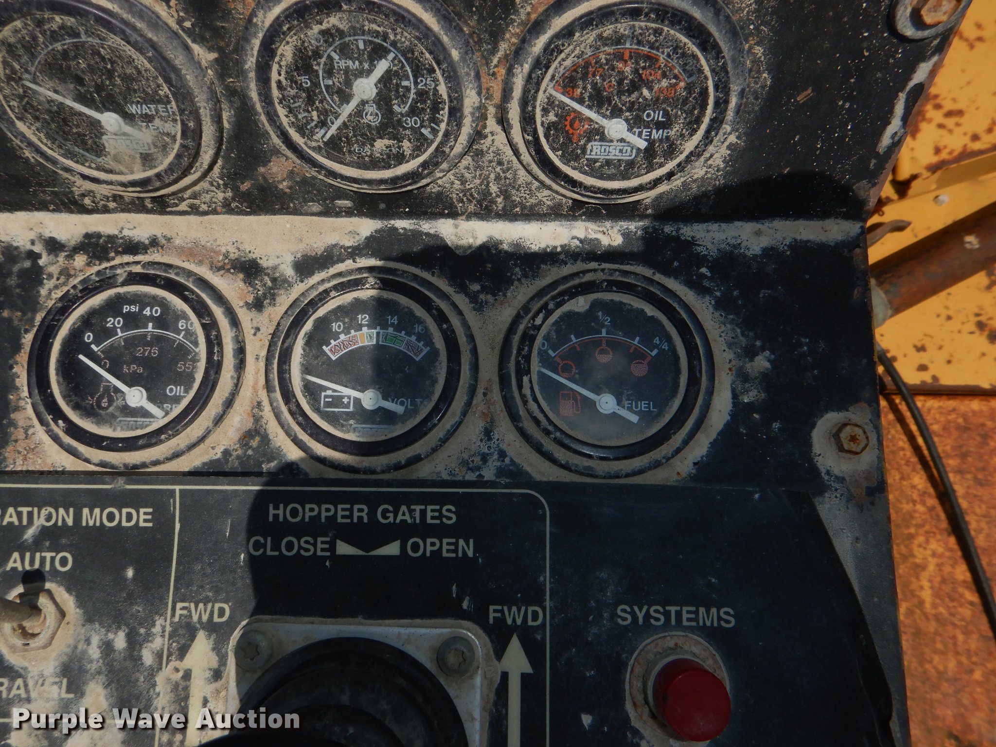 Purple Wave is selling a used Chip Spreader in Kansas. This item is a Rosco Flaherty SPRHH chip spreader with the following: 1,307 hours on meter, Cummins diesel engine, Hydrostatic transmission, Dual operator stations, Single operation unit, Work lights, Backup alarm, 16'W chip spreader, 18"W material conveyor, Pintle hitch, Westlake 10.00-20 tires, Serial 35621