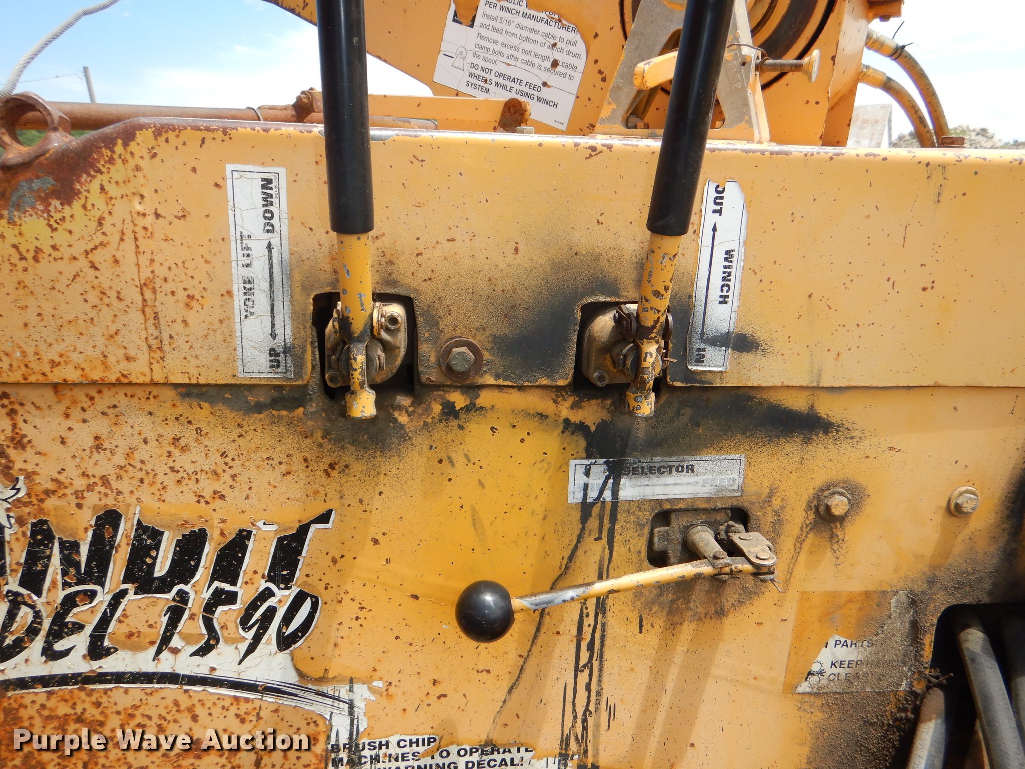Purple Wave is selling a used Wood Chipper or Stump Grinder in Kansas. This item is a 2003 Bandit 1590 wood chipper with the following: 3,117 hours on meter, John Deere diesel engine, 20" knives, Pintle hitch, 235/85R16 tires