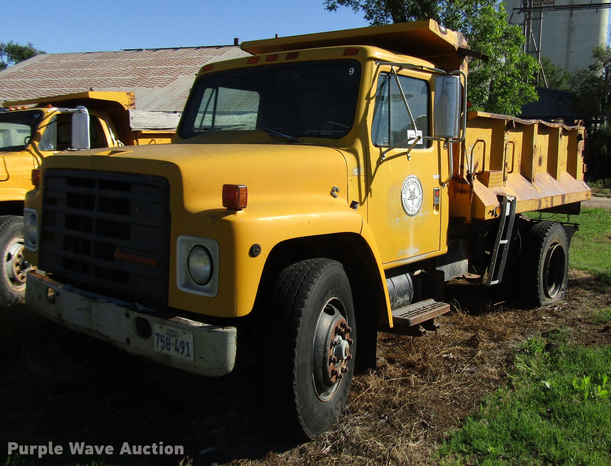 Purple Wave is selling a used Construction Dump Truck in Texas. This item is a 1986 International 1754 dump truck with the following: 139,703 miles on odometer, Eight cylinder diesel engine, 10 speed manual transmission, Single axle, Heat, PTO, 10'L x 96"W steel dump bed, 33" side height, Single ram hoist, Manual end gate, Spring suspension, Air brakes, 11R22.5 tires, Cracked windshield, Non-operational unit