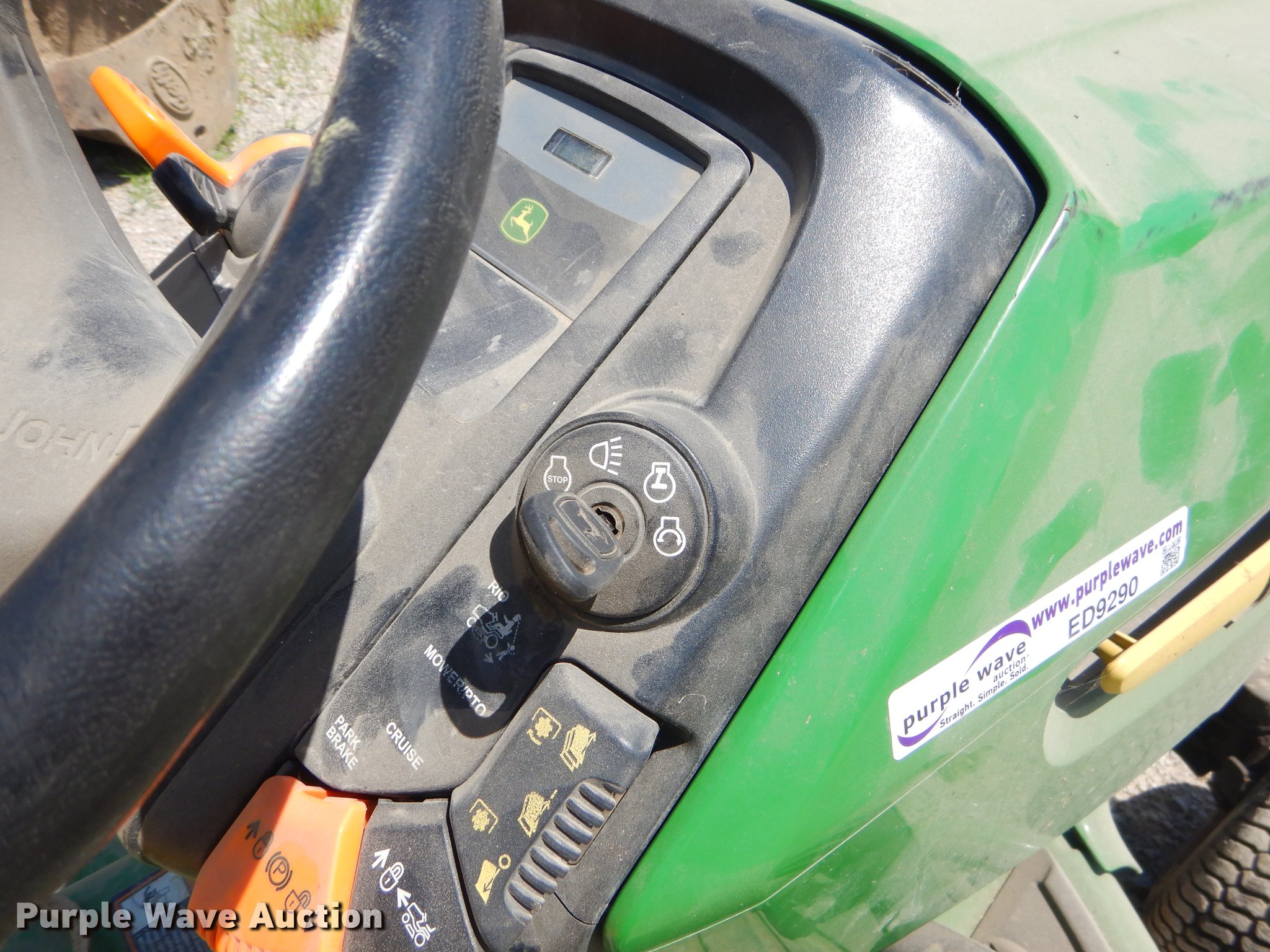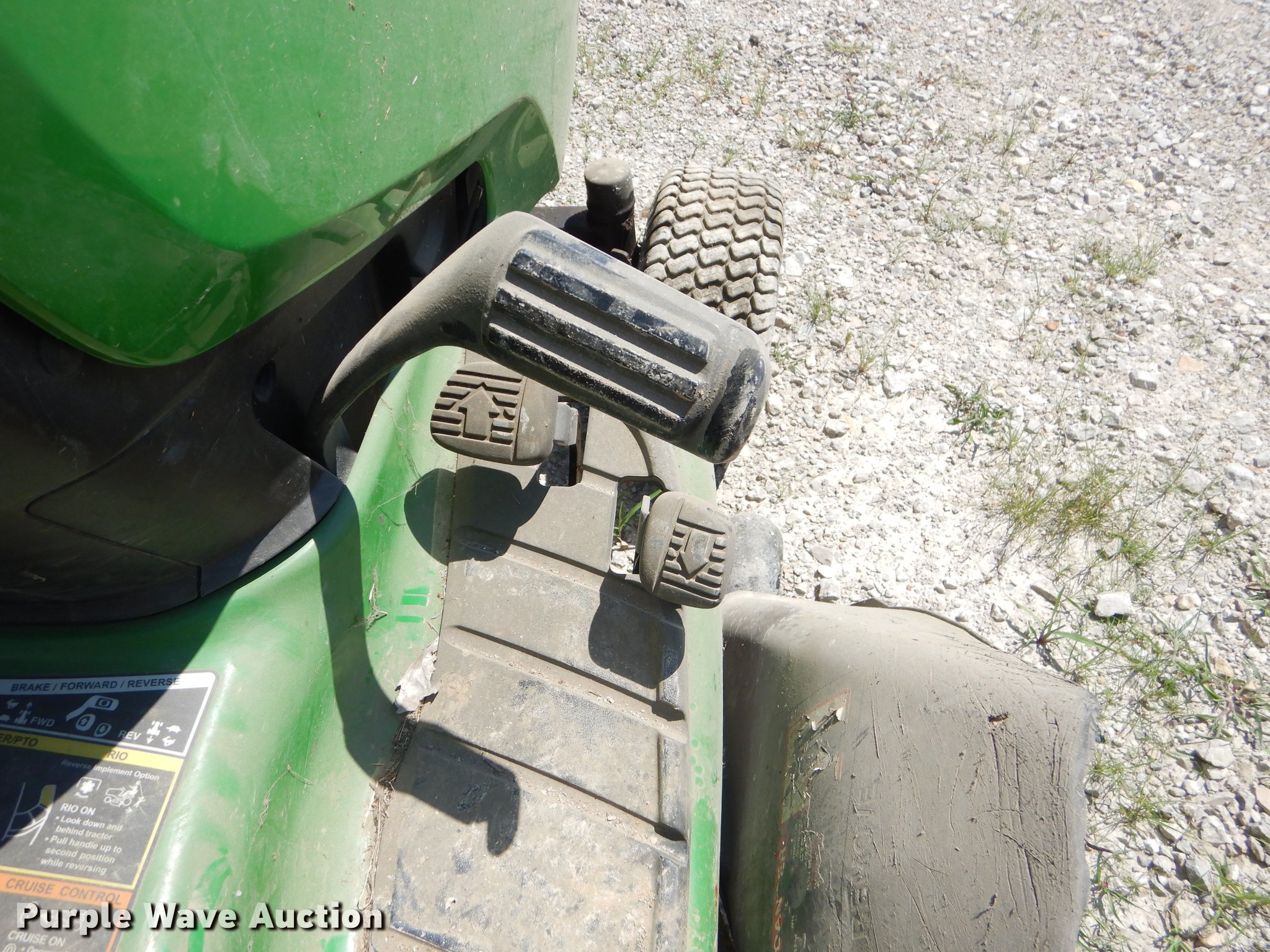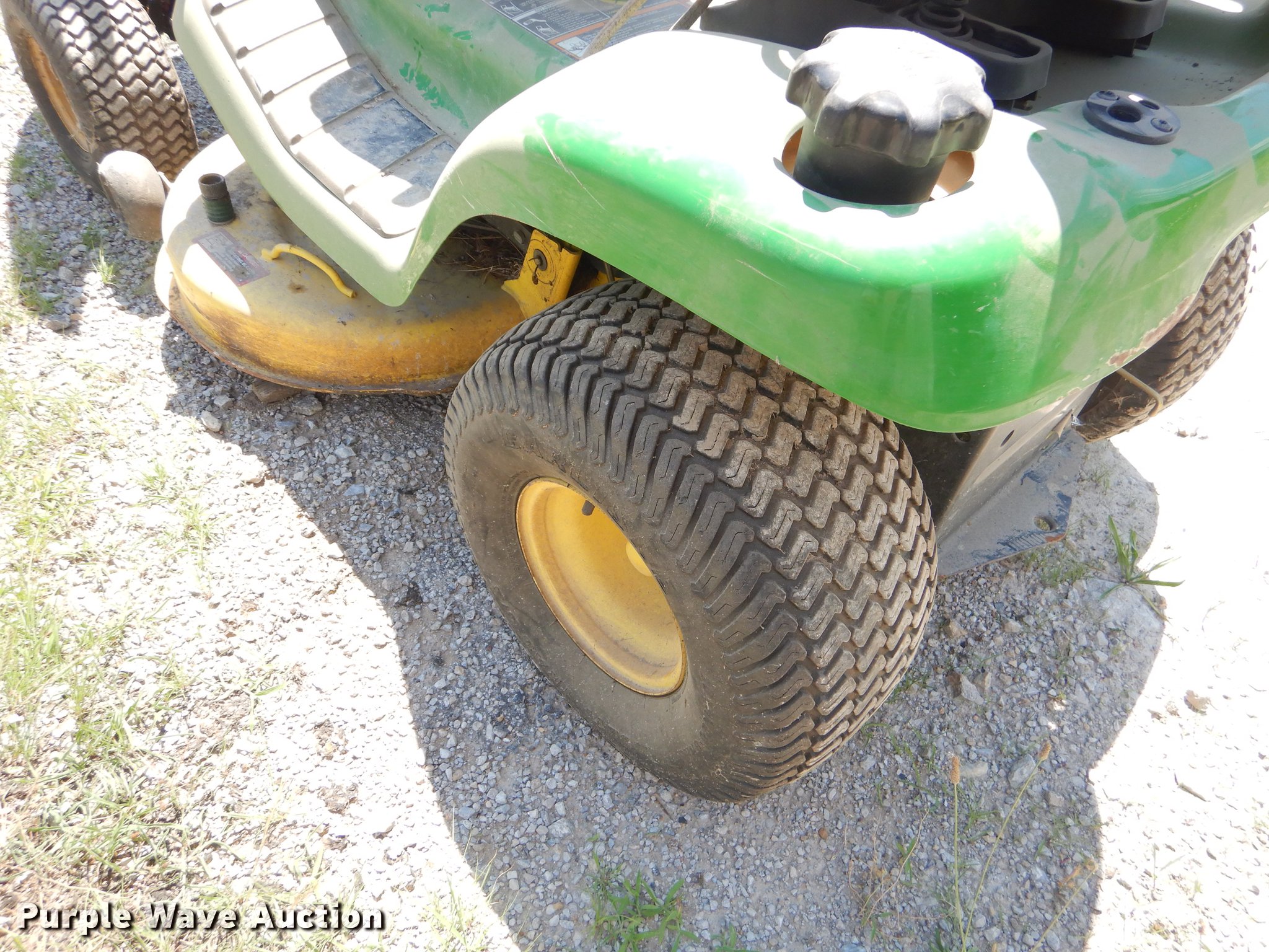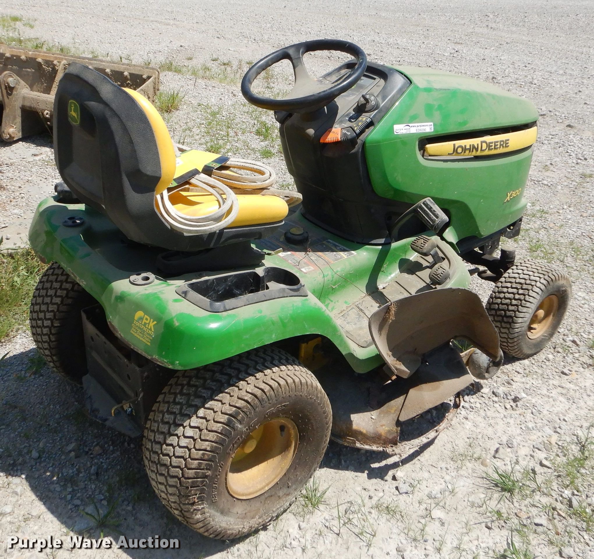 Purple Wave is selling a used Lawn Mower in Oklahoma. This item is a John Deere X300 lawn mower with the following: 300 hours on meter, 42" cut, Kawasaki gas engine, Hydrostatic transmission, Pin hitch, 15x6.00-6 front tires, 20x8.00-8 rear tires, Additional belts, Dead battery, Serial M0X300C153638, Unit# 3340105