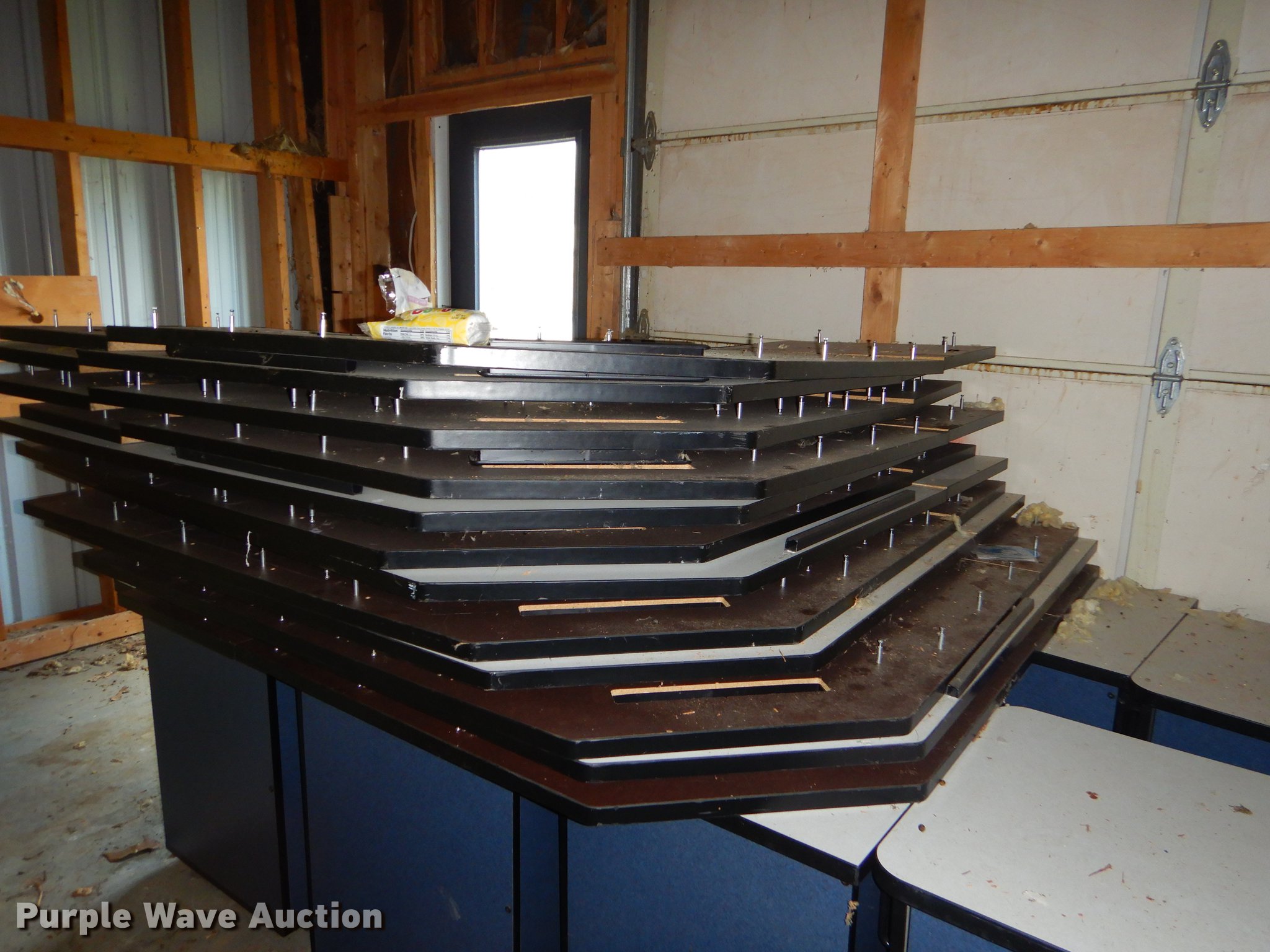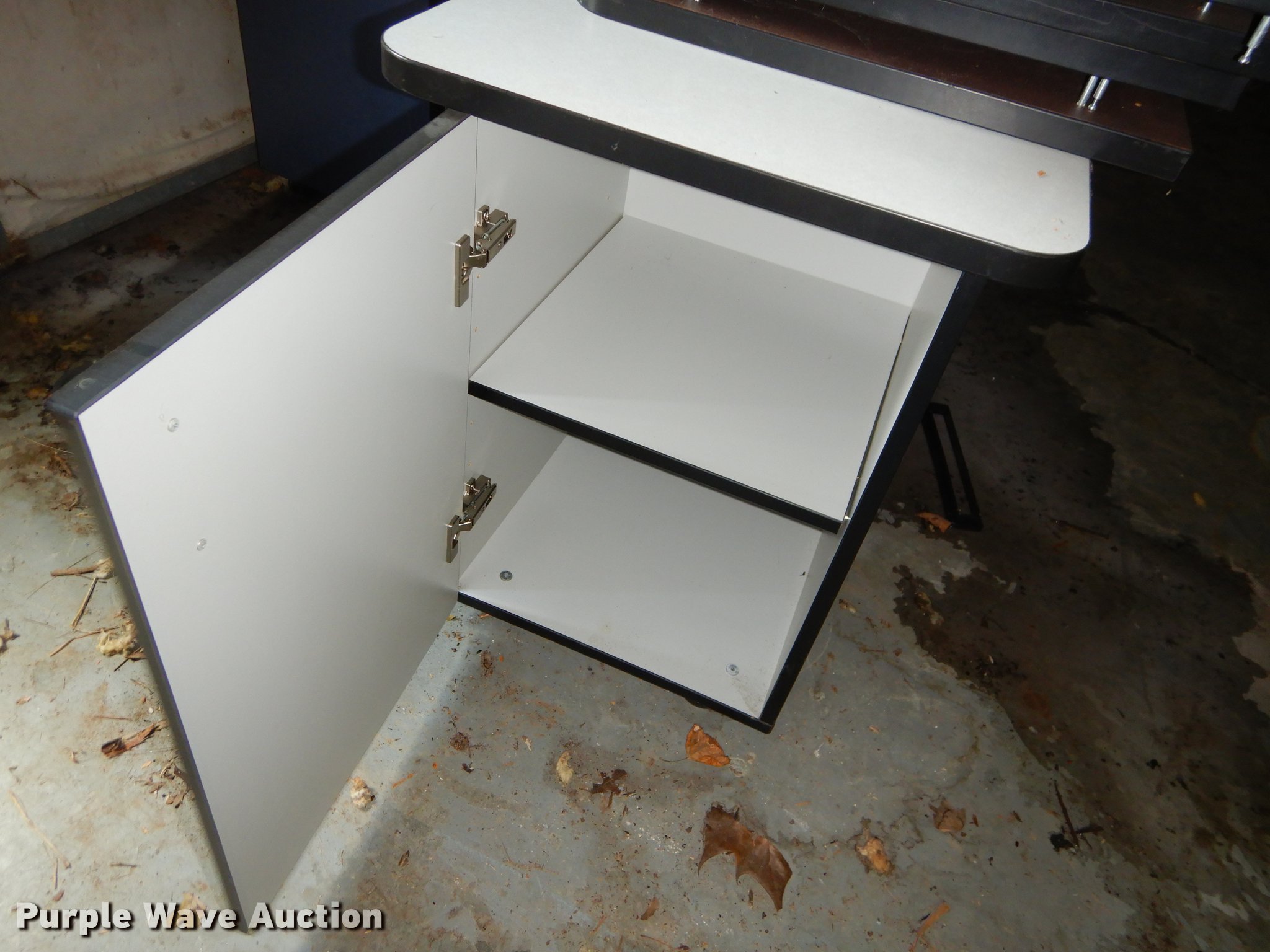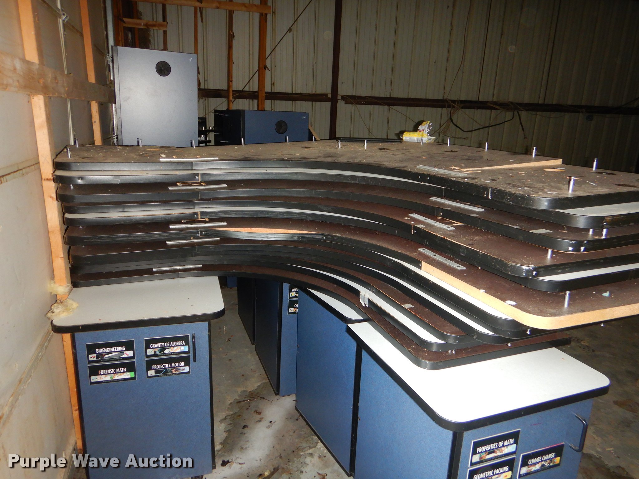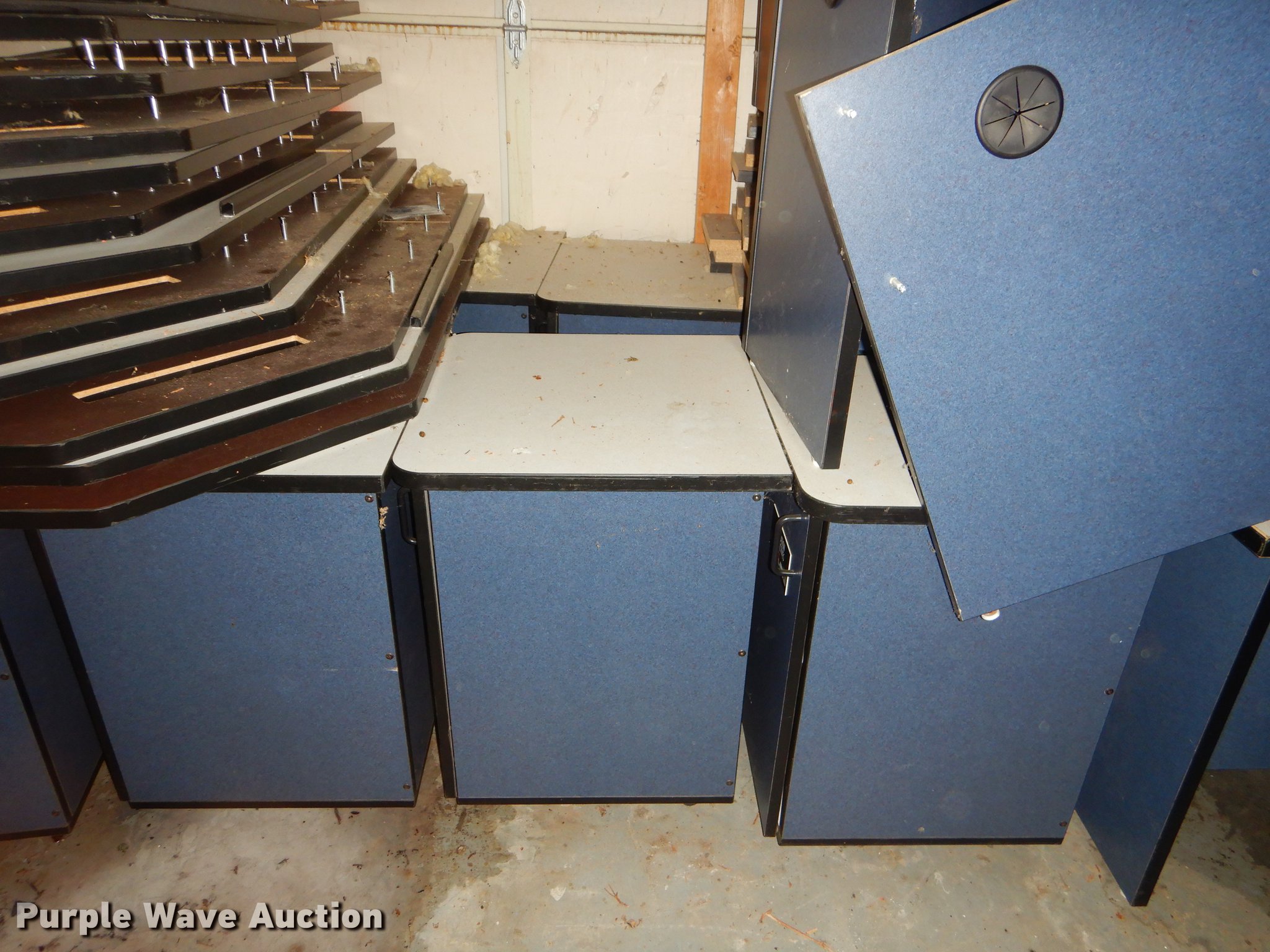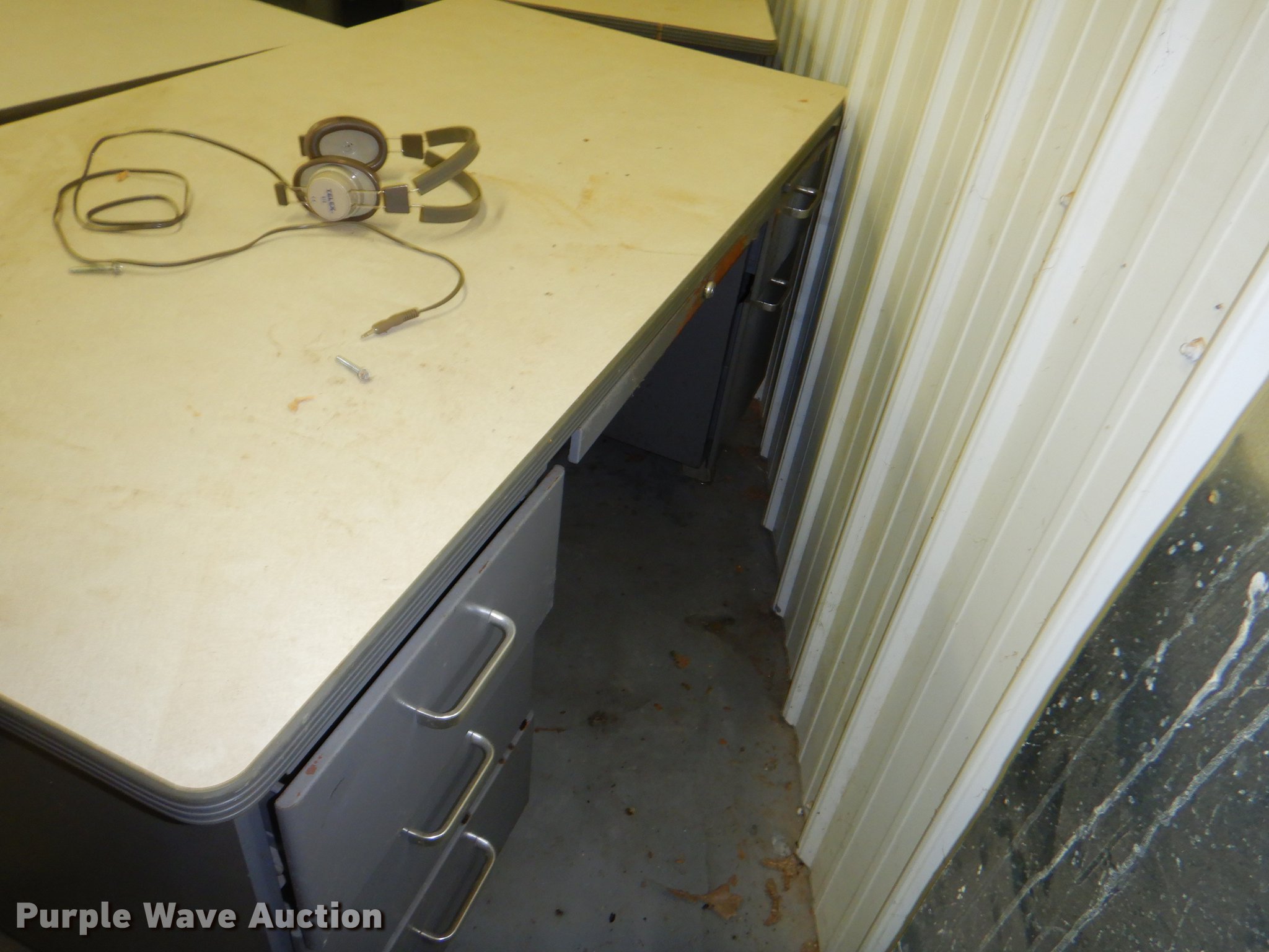 Purple Wave is selling a used Furniture in Kansas. This item is a Furniture with the following: (5) metal desks, (2) wood file cabinets, Piano, Modular desks, Approx. 15 storage stands, (12) Comer counter tops