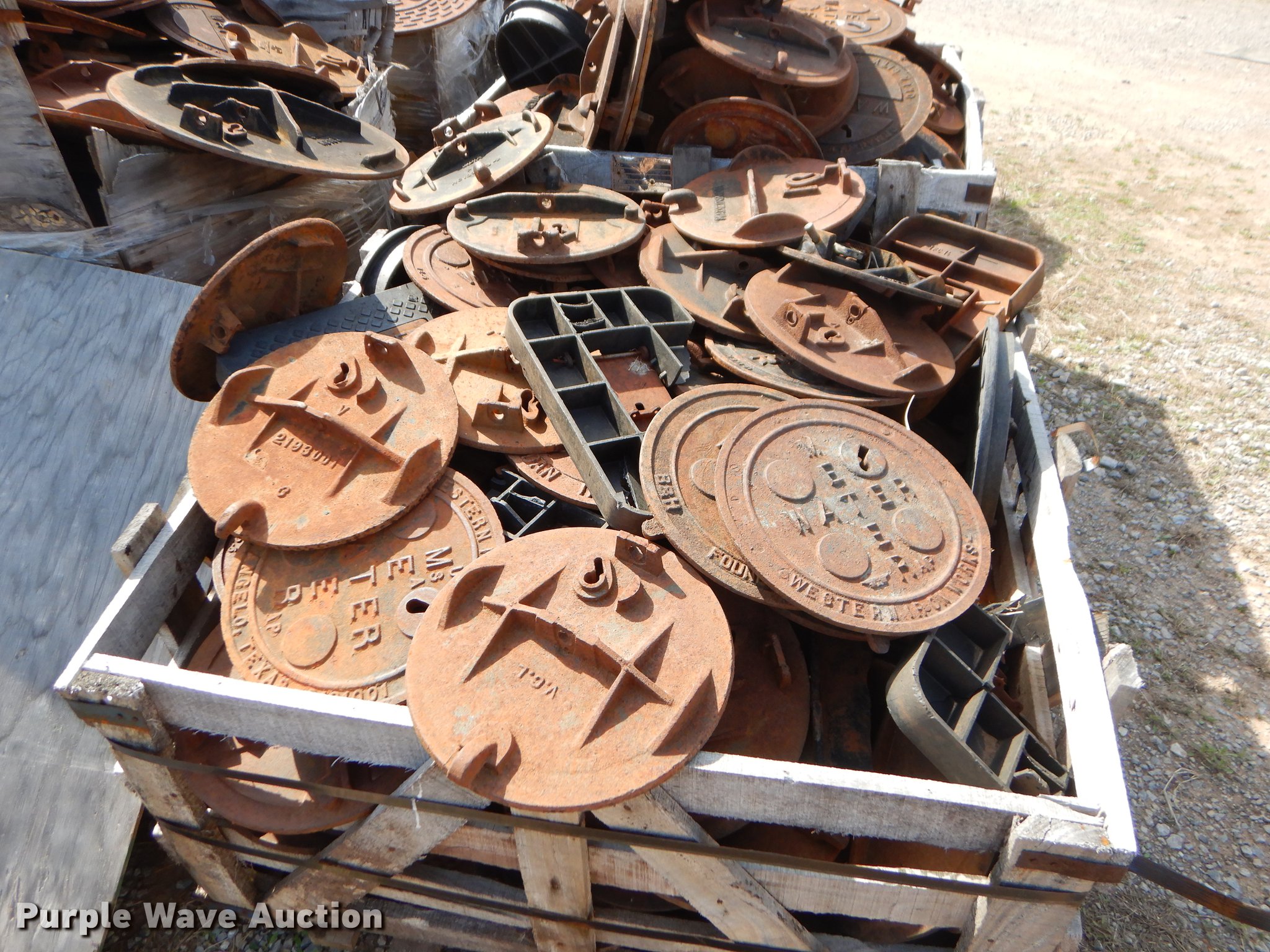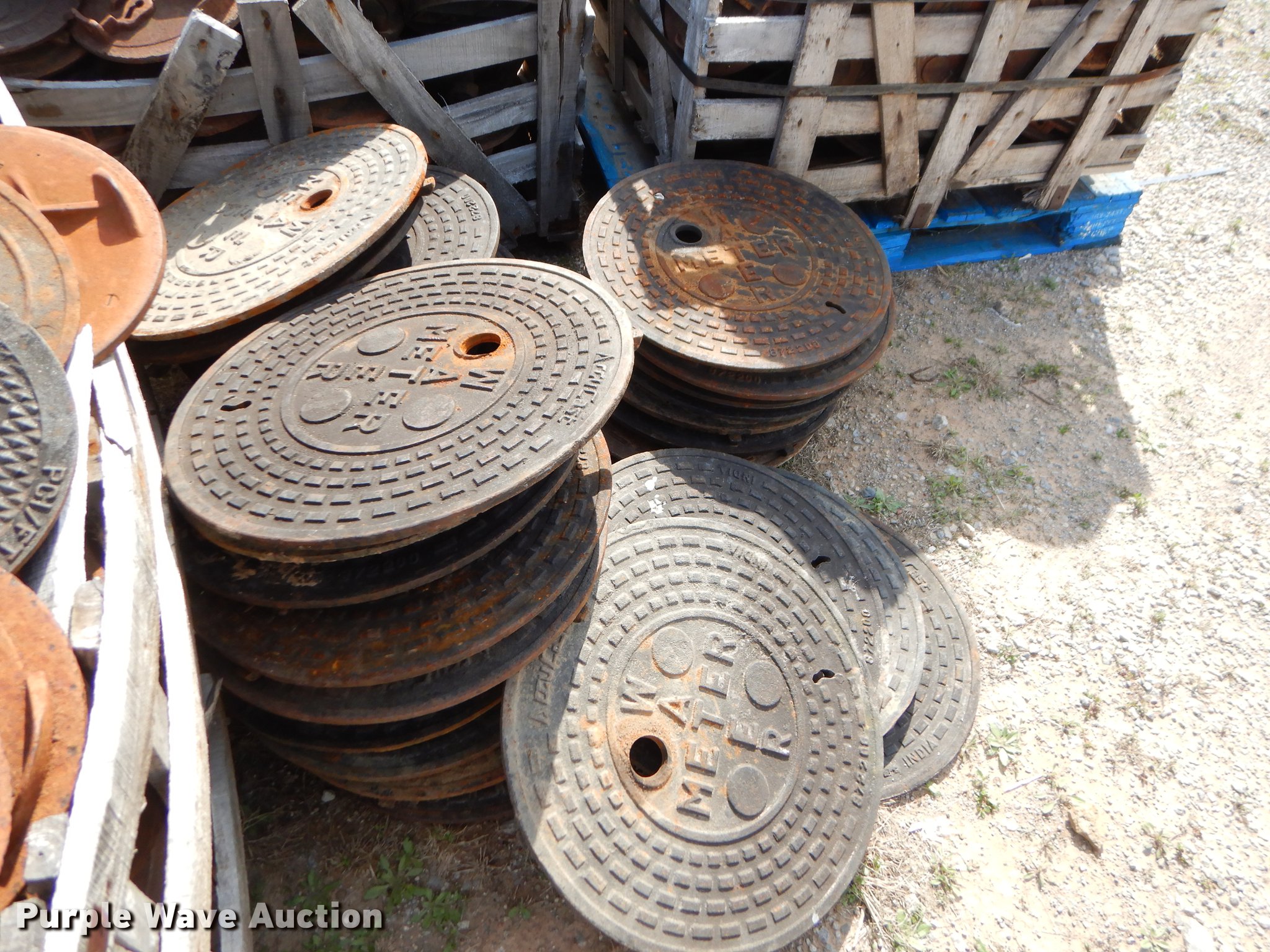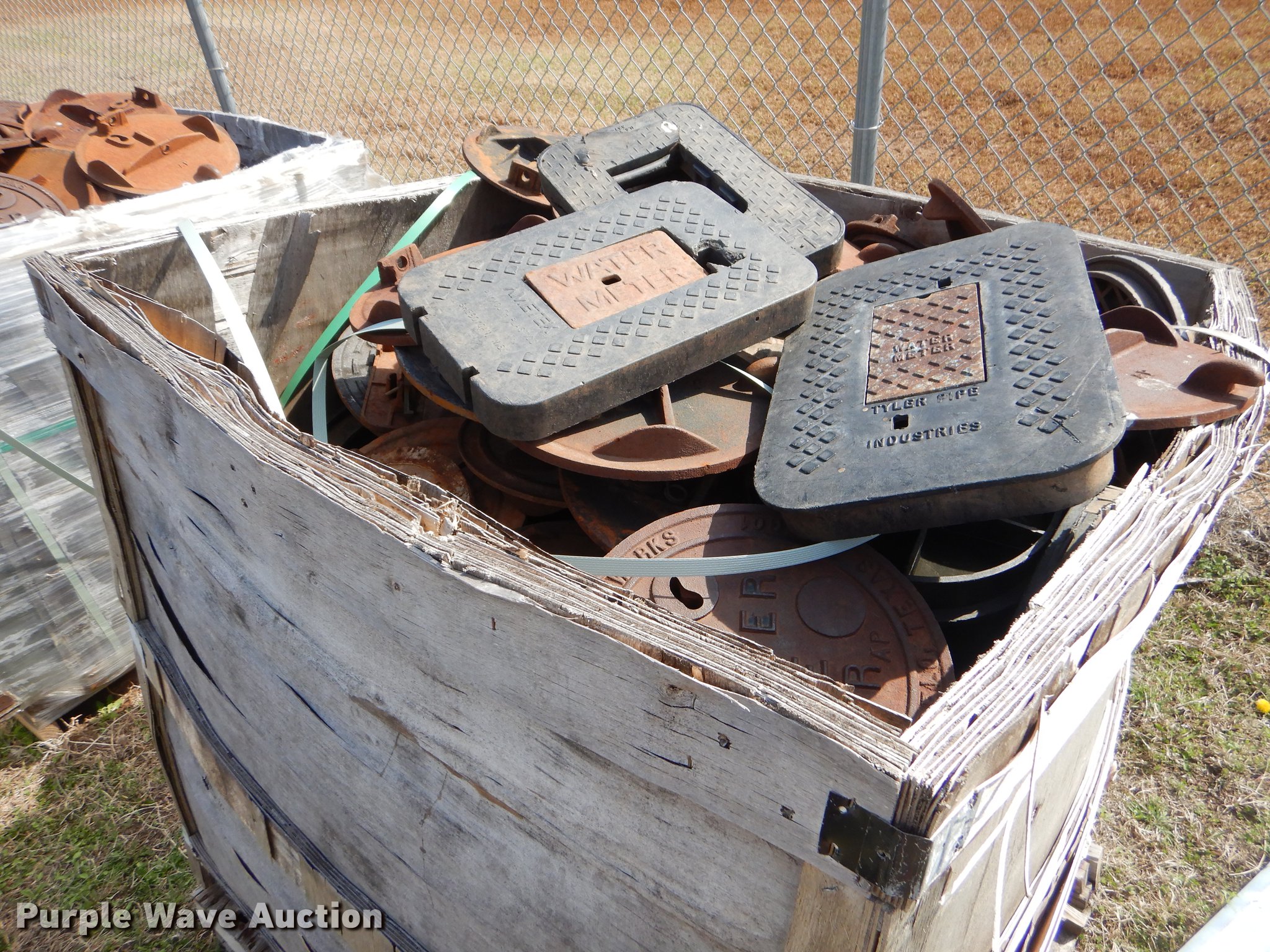 Purple Wave is selling a used Tools in Oklahoma. This item is a Water meter lids with the following: 12" to 21", Approx. 48 40" x 40" x 24" containers
