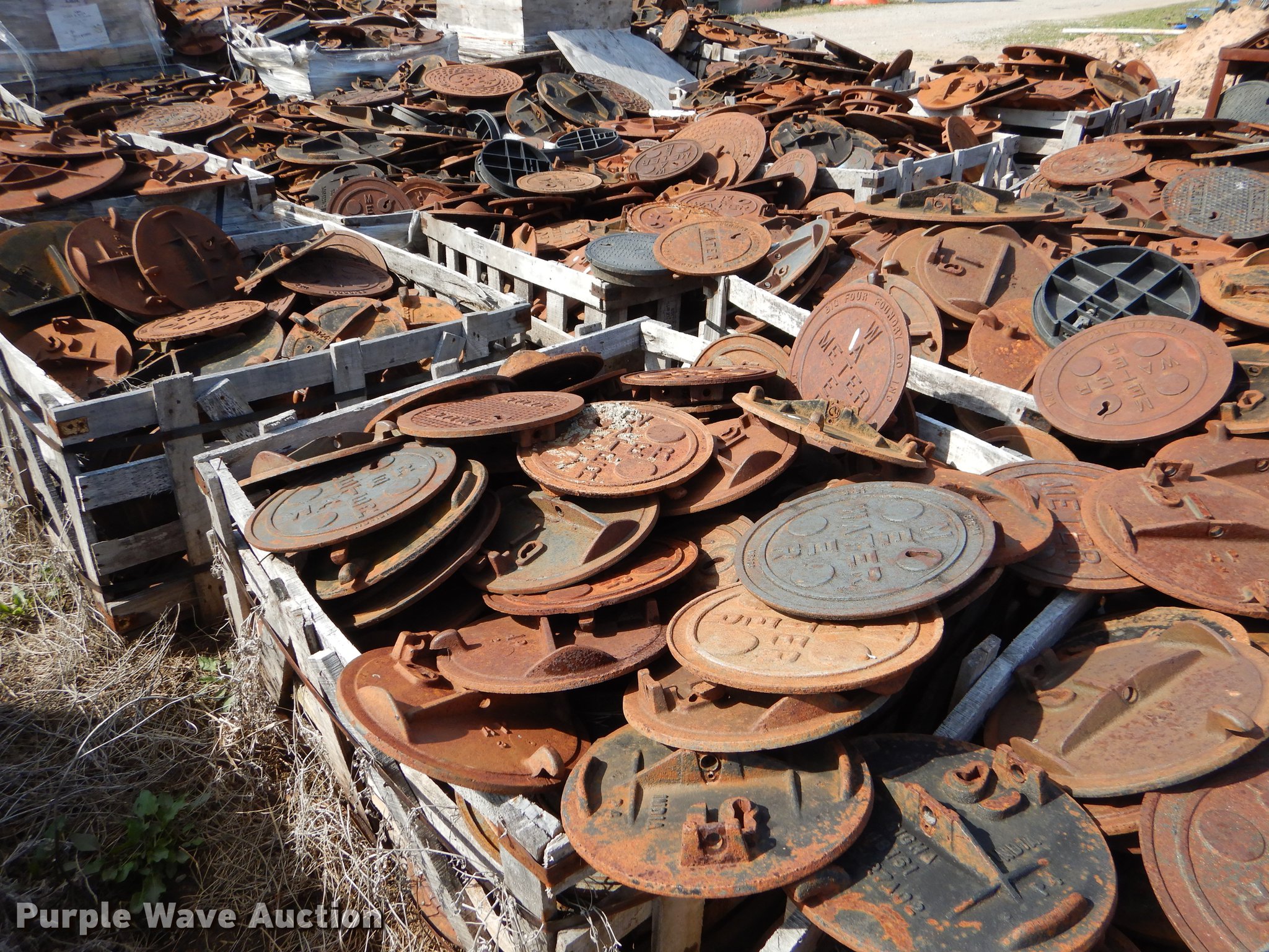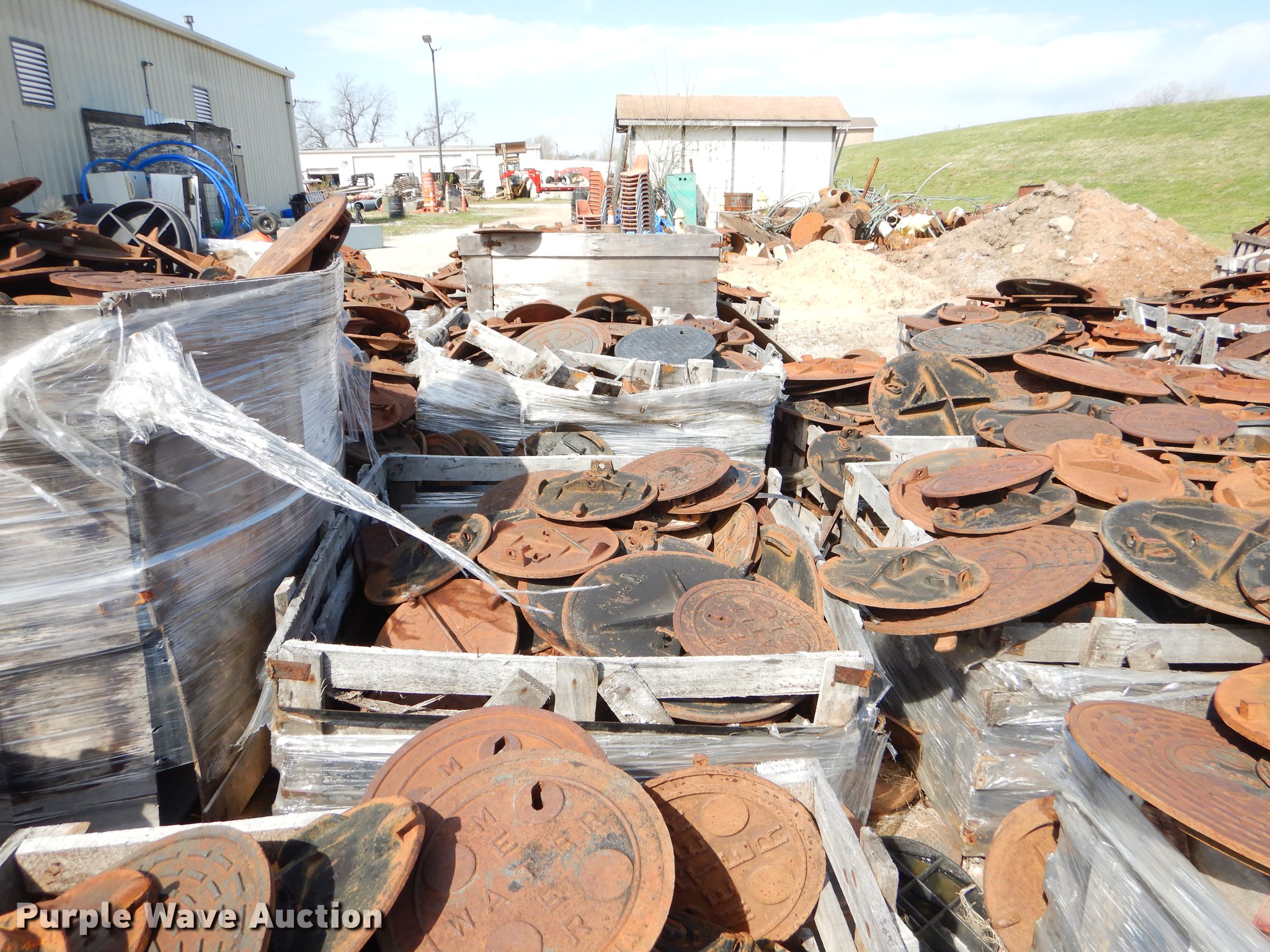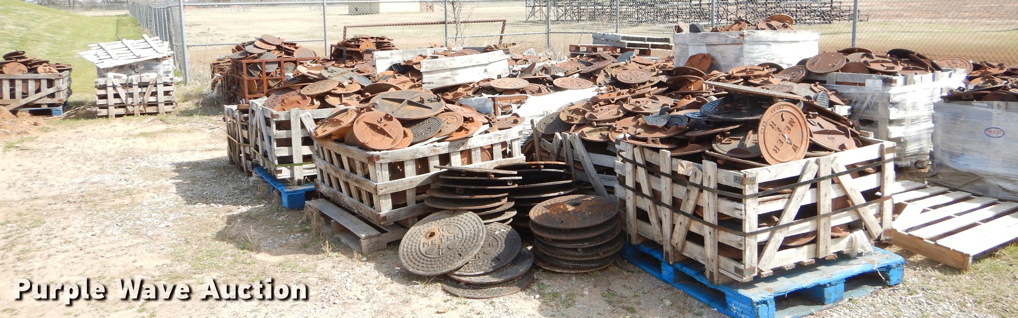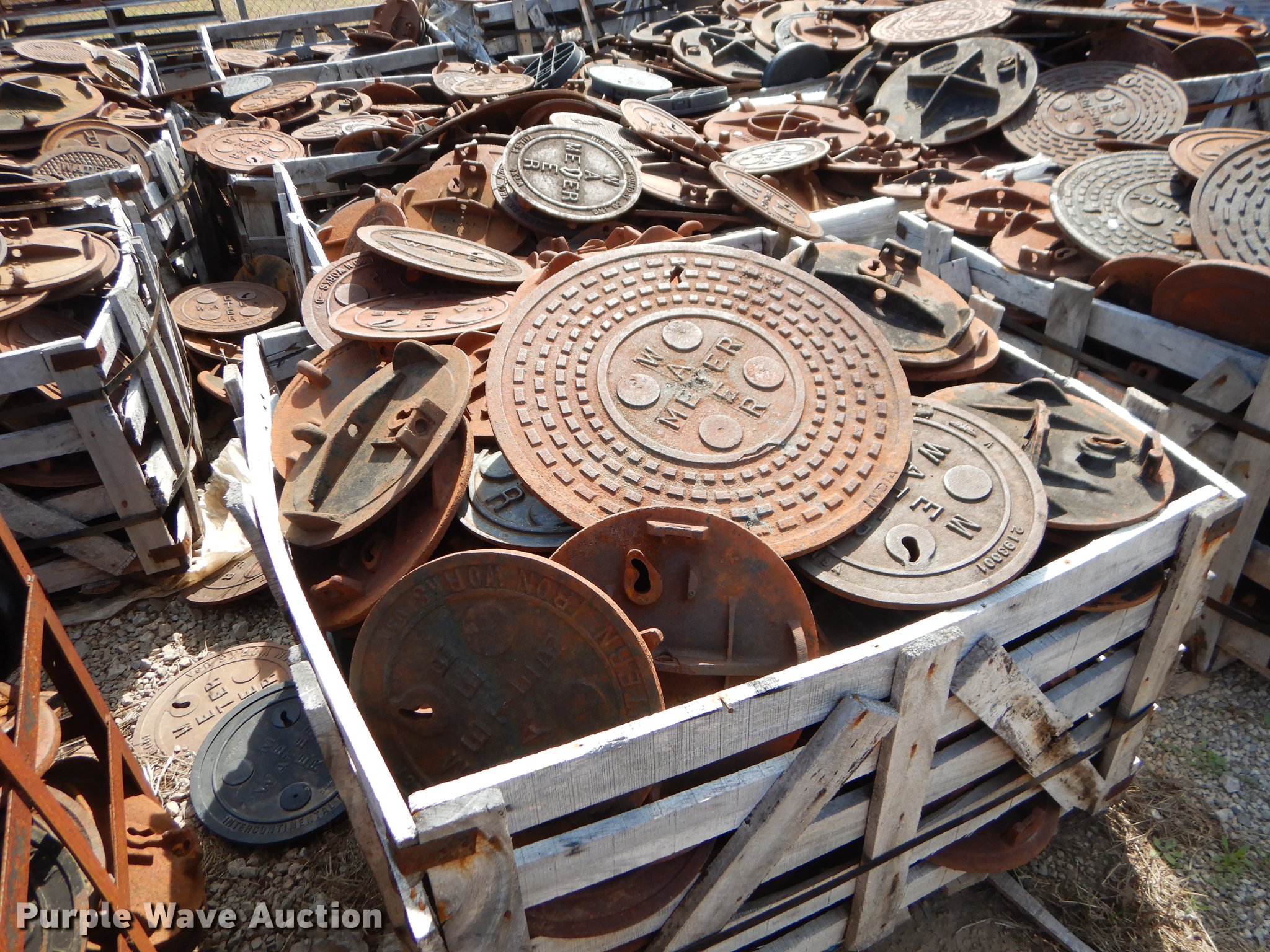 Purple Wave is selling a used Tools in Oklahoma. This item is a Water meter lids with the following: 12" to 21", Approx. 48 40" x 40" x 24" containers