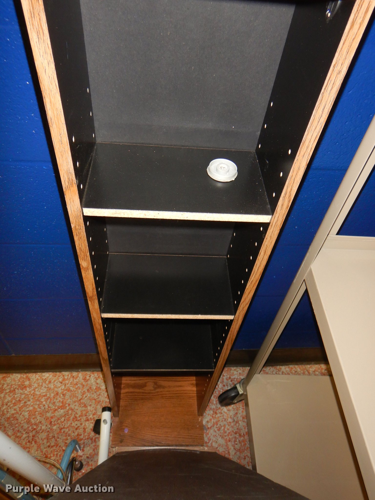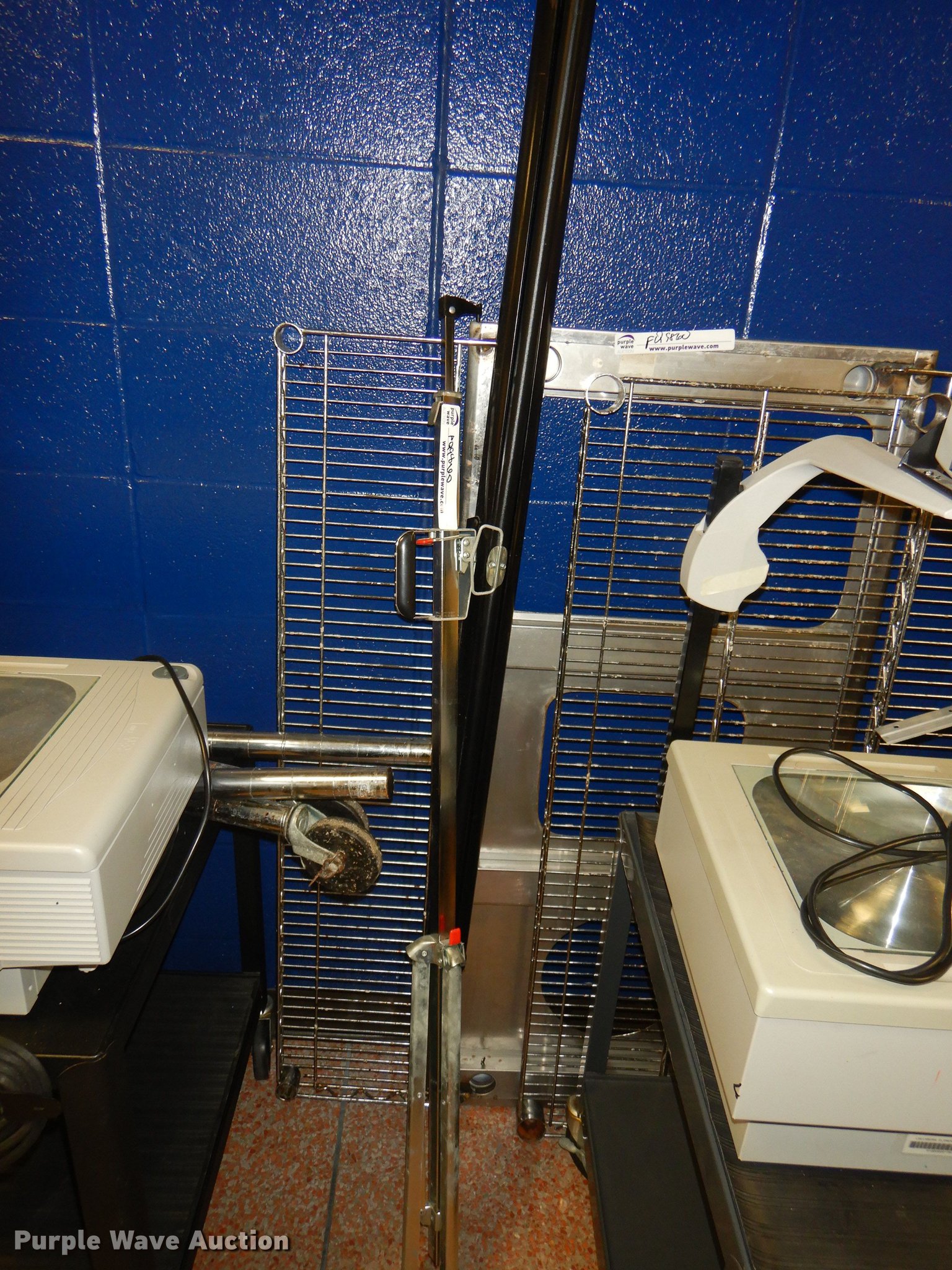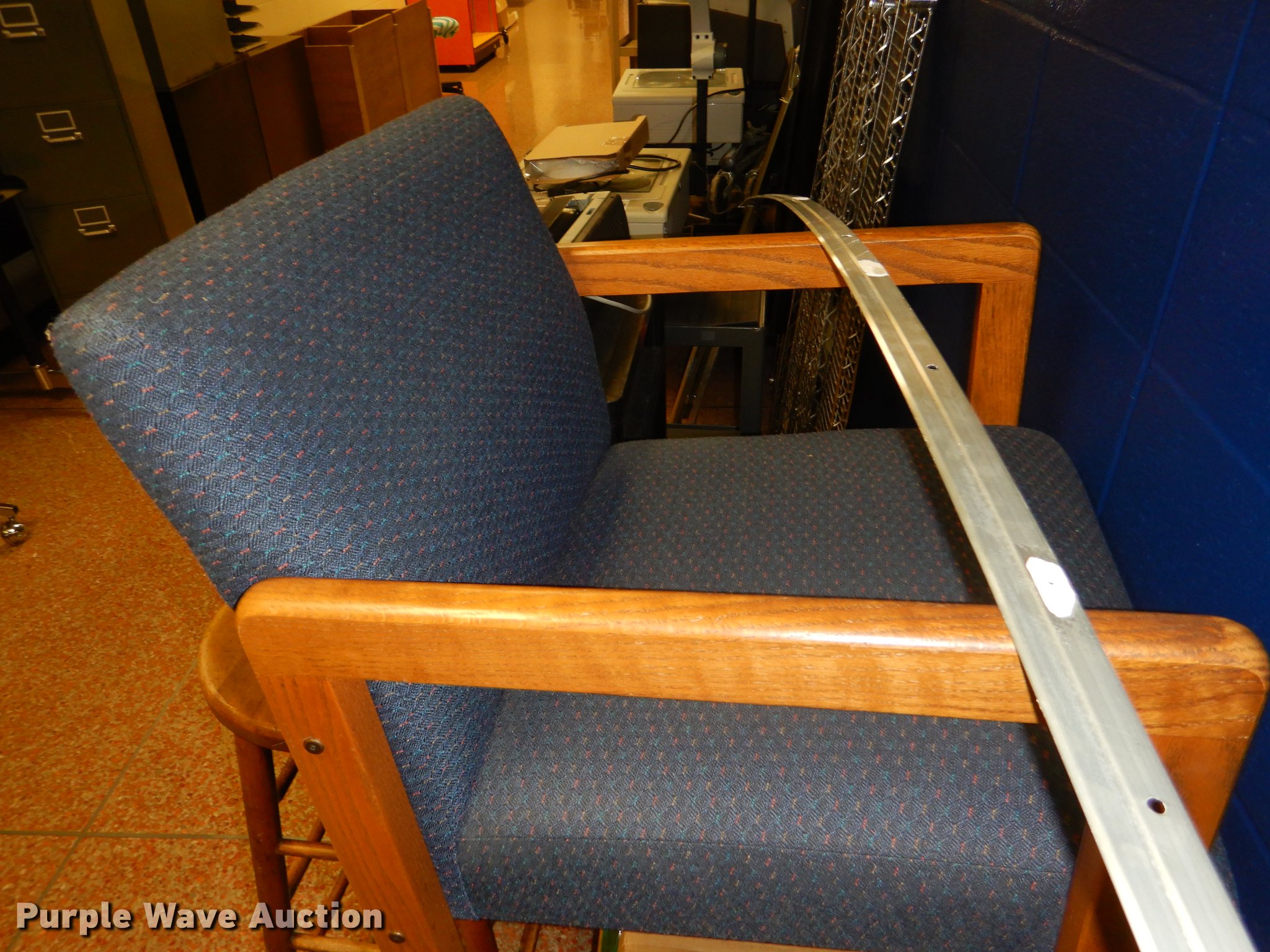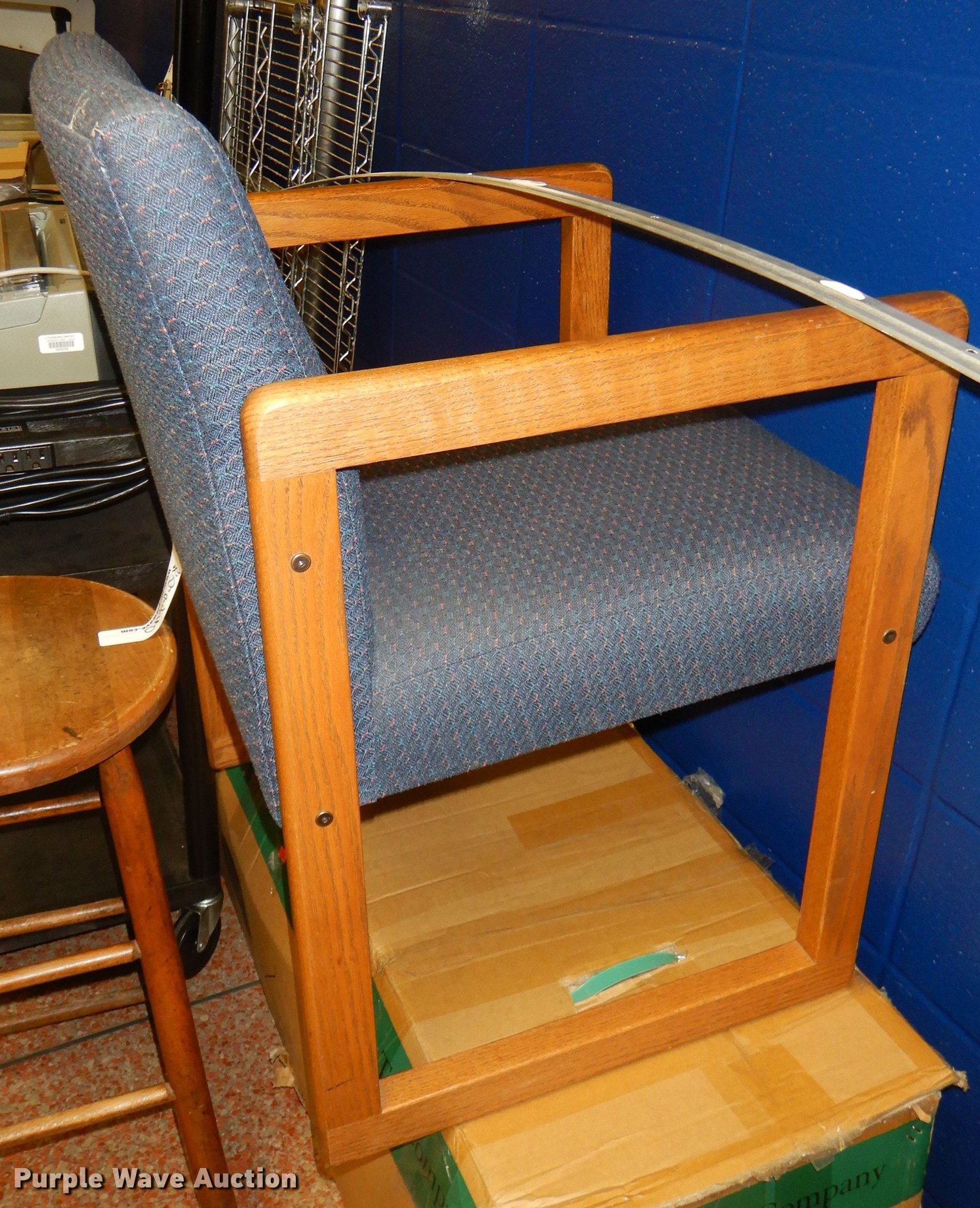 Purple Wave is selling a used Furniture in Kansas. This item is a Furniture with the following: (3) curtain dividers, (2) CD stands, One base damaged, (6) carts, (2) chairs, One damaged, (3) projectors, Typewriter, Stainless steel rack, Disassembled, Wood stool